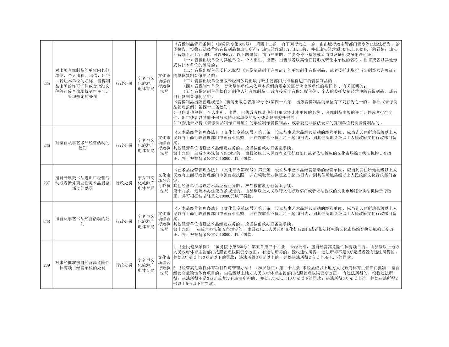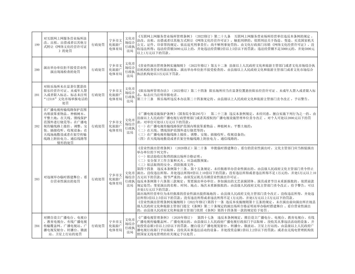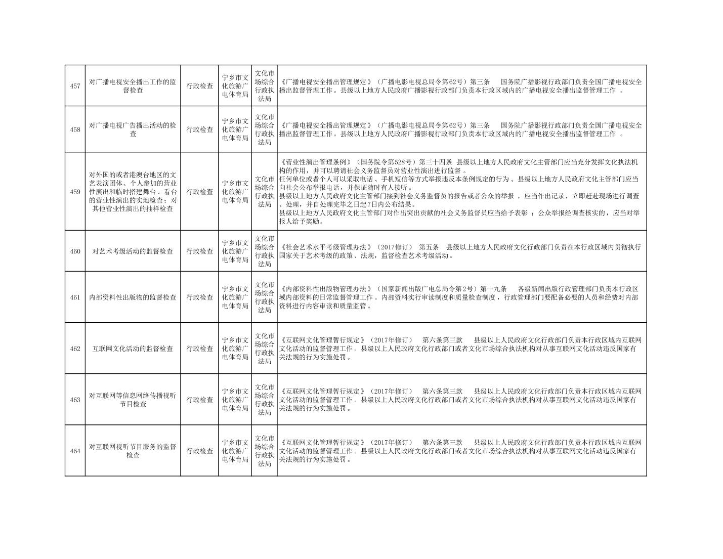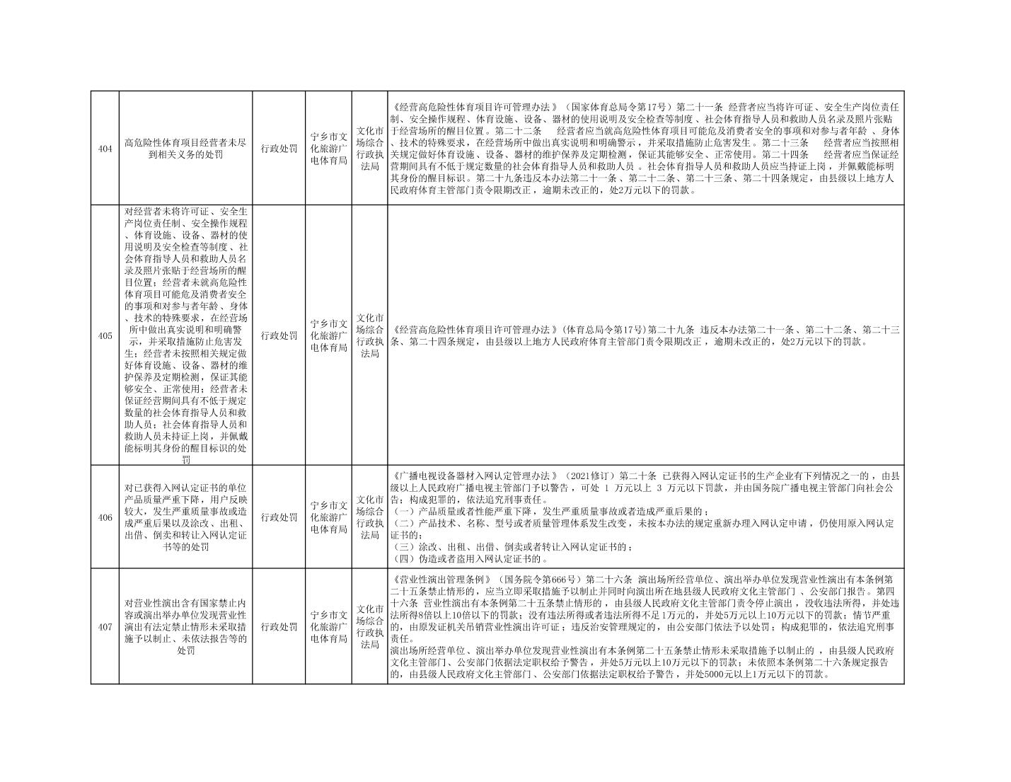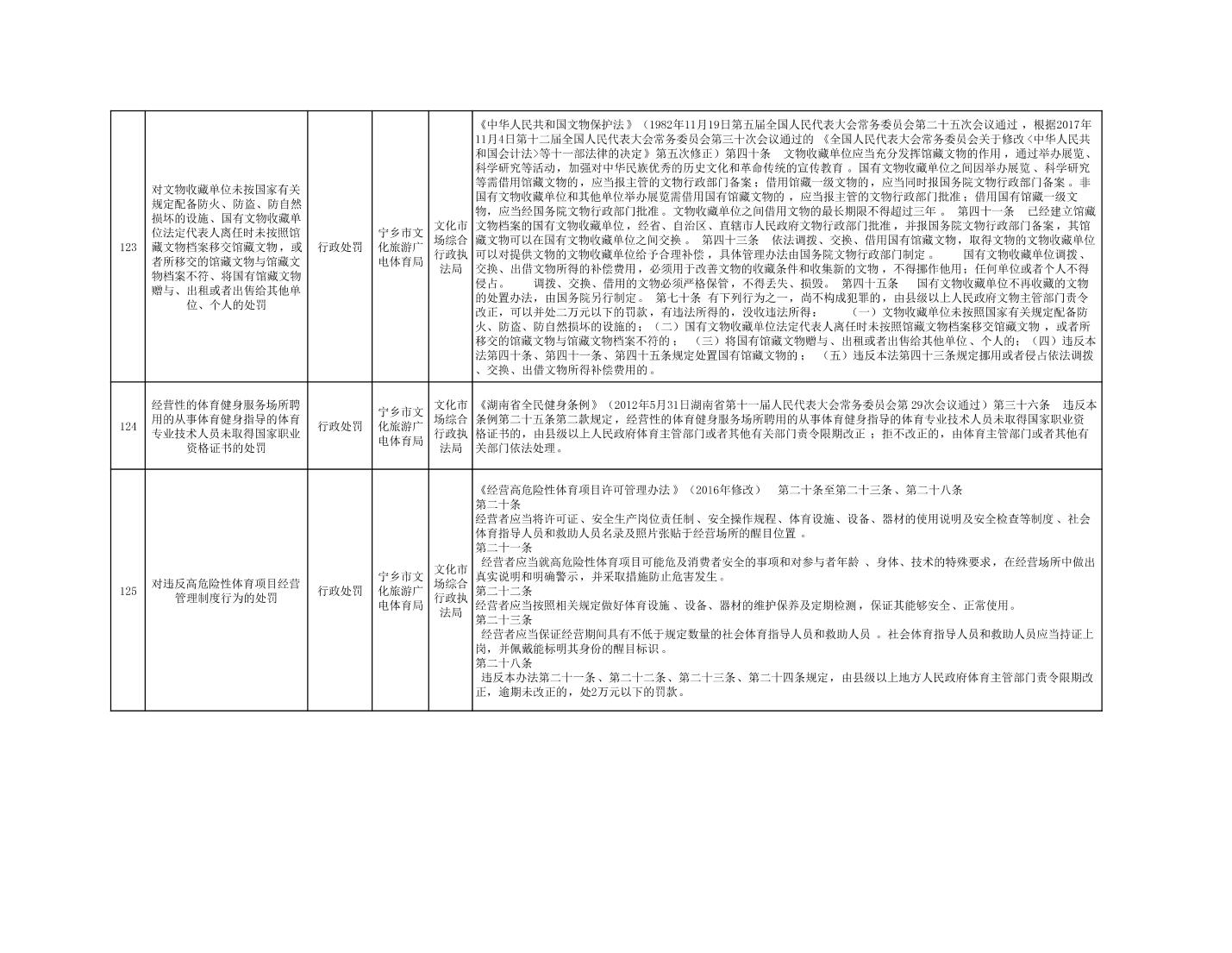 寧鄉市文化旅游廣電體育局行政執法事項目錄