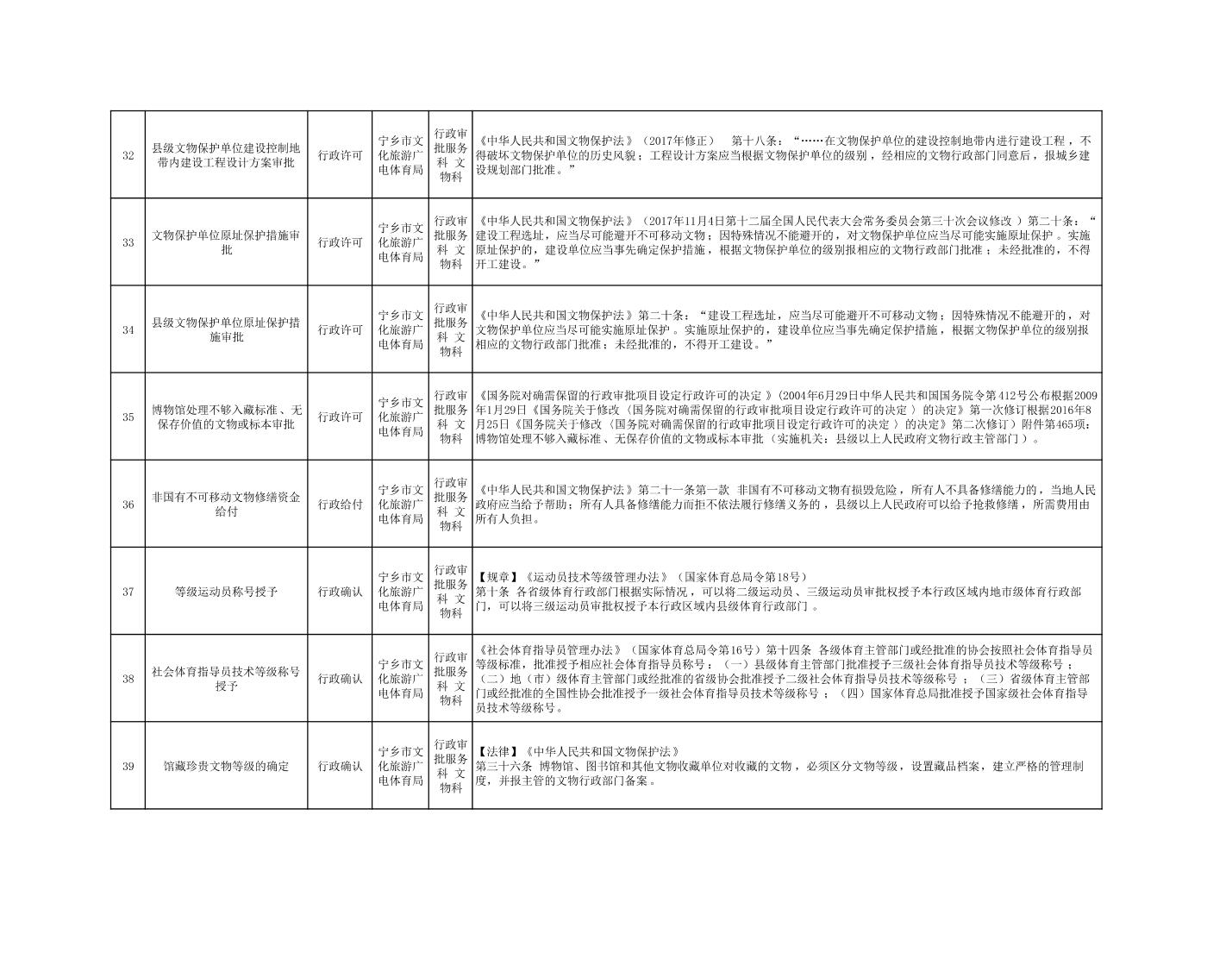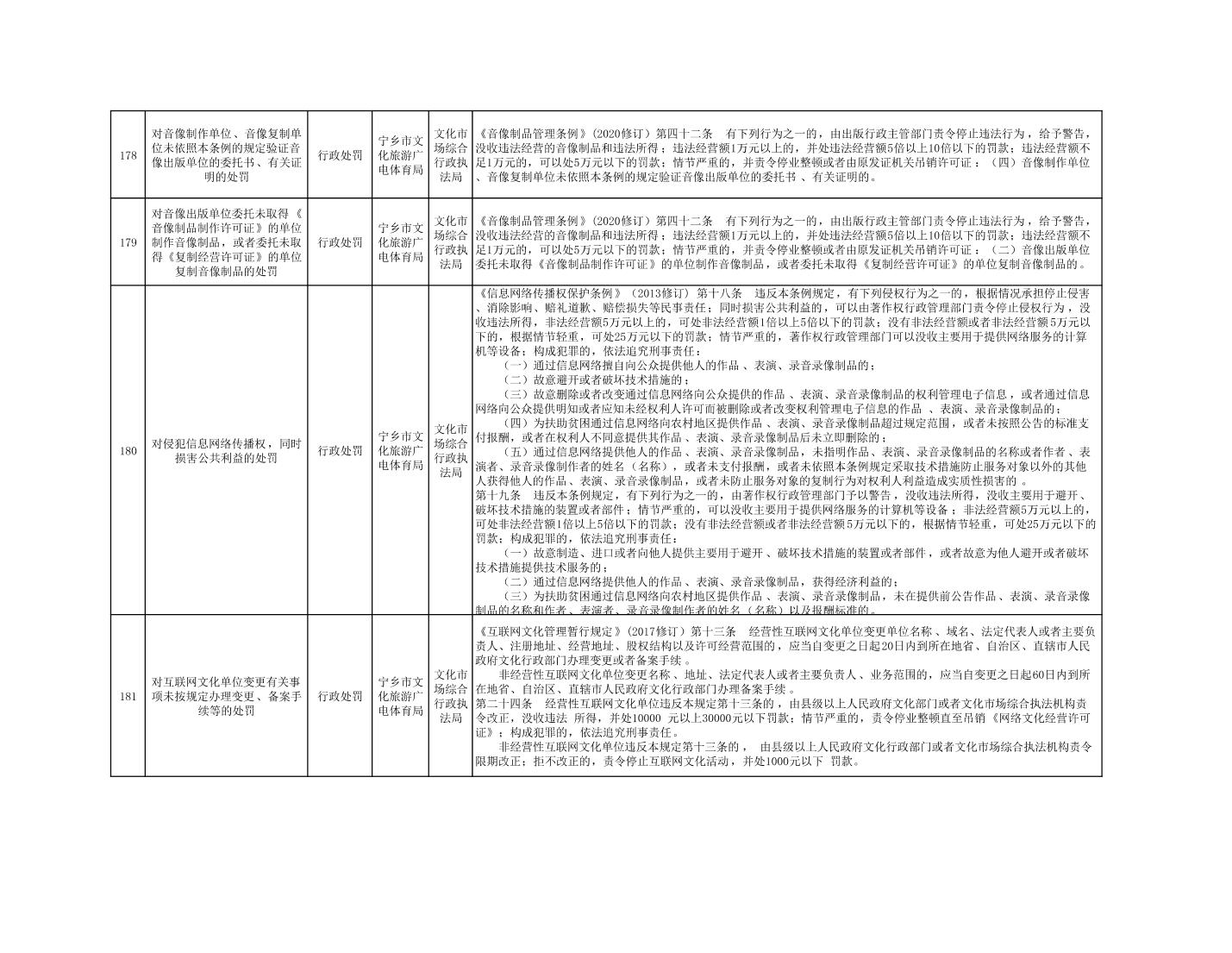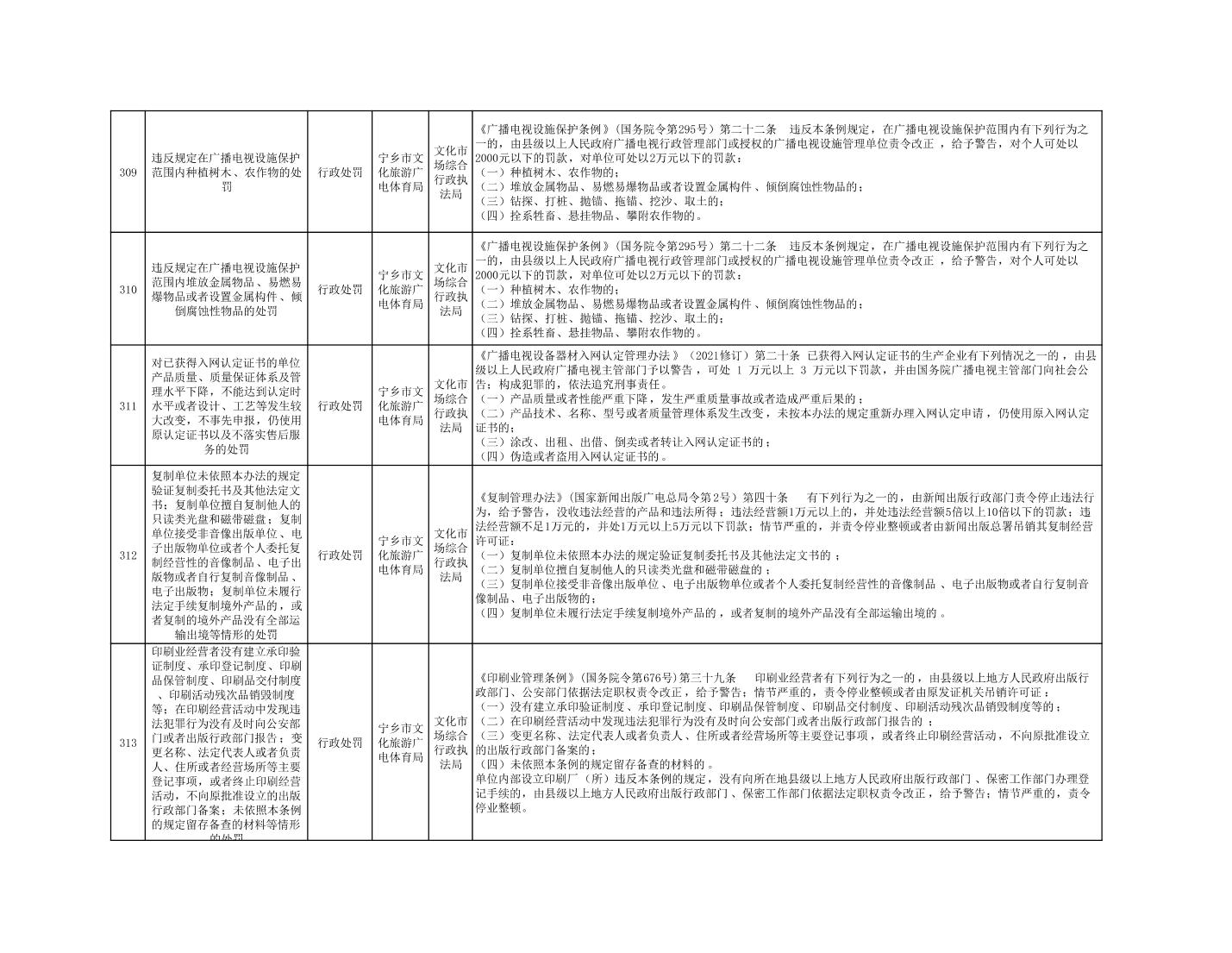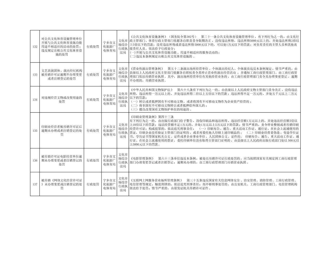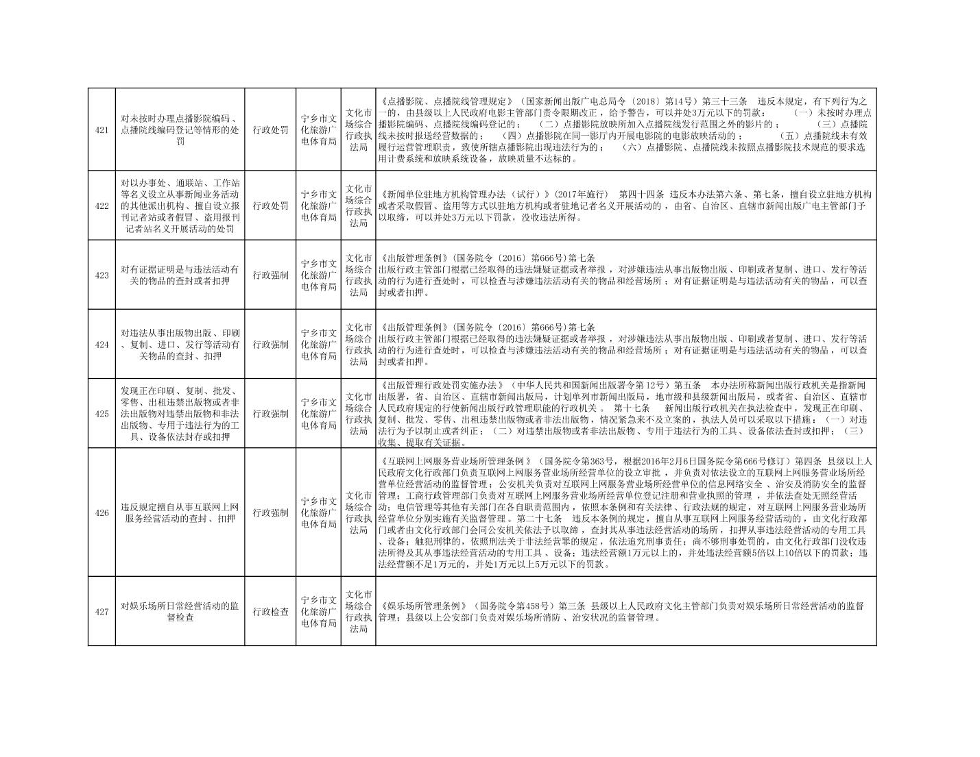 寧鄉市文化旅游廣電體育局行政執法事項目錄