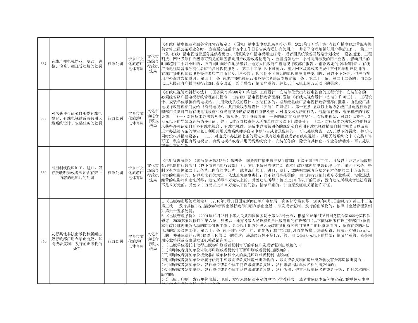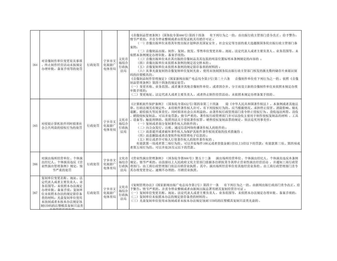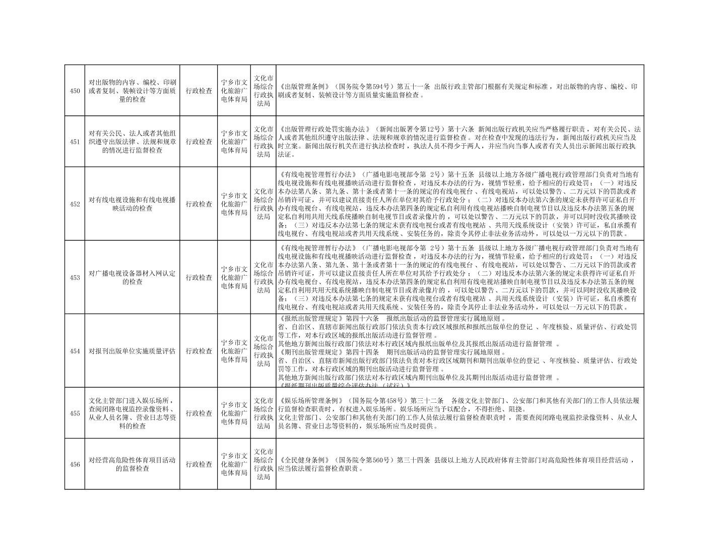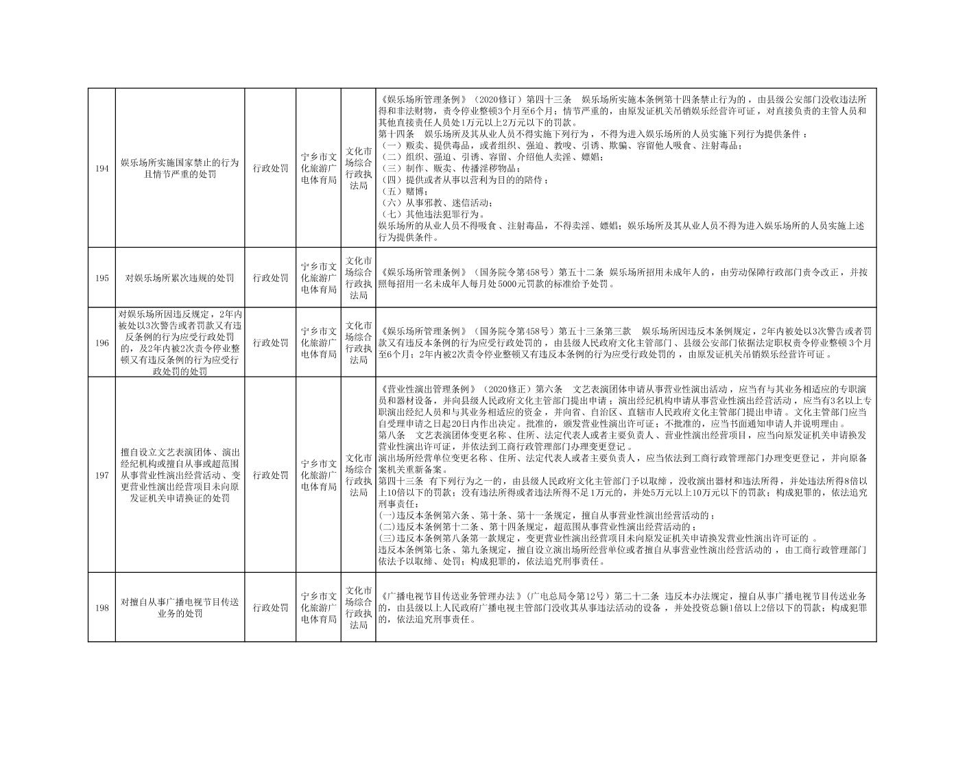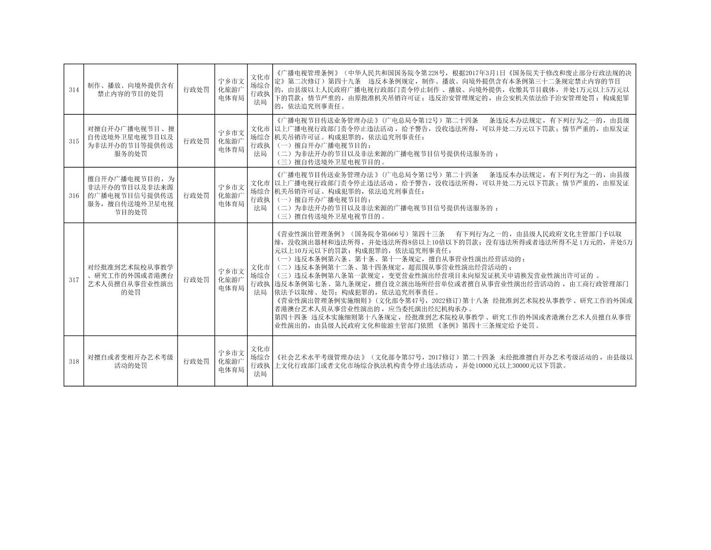寧鄉市文化旅游廣電體育局行政執法事項目錄