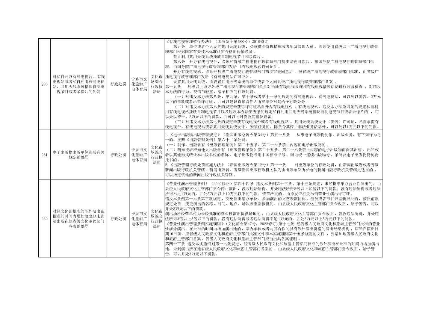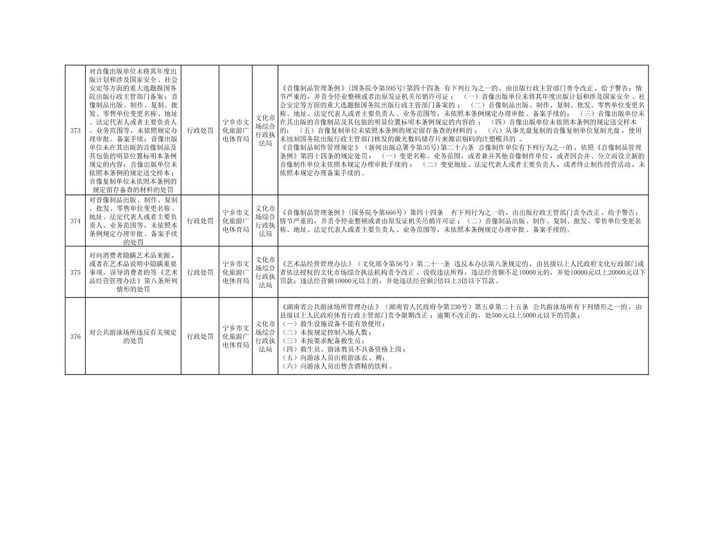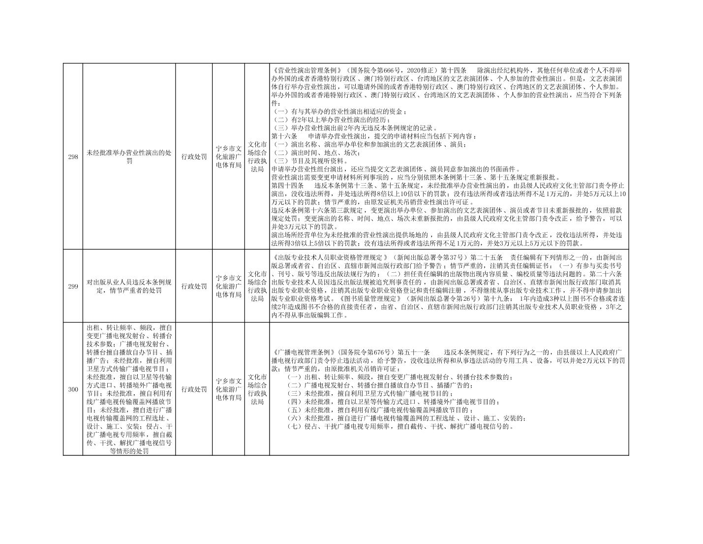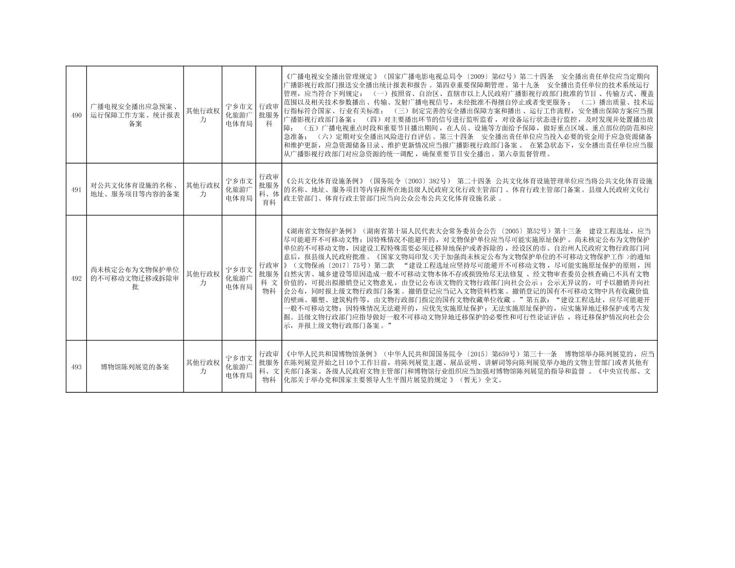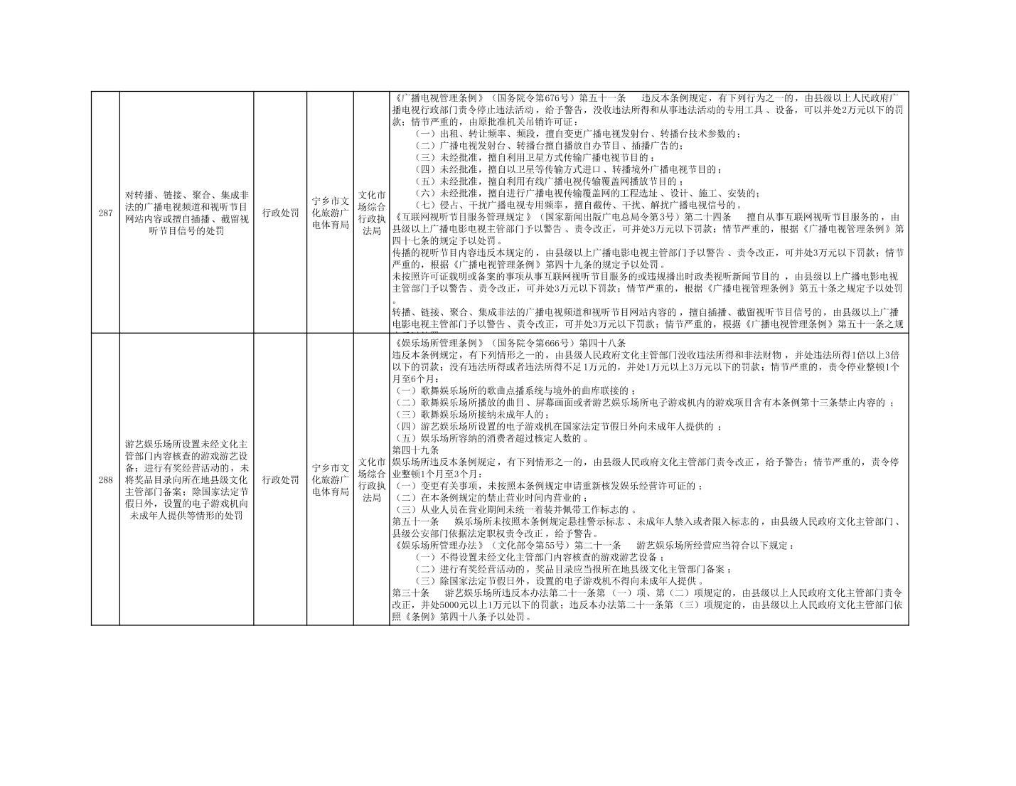 寧鄉市文化旅游廣電體育局行政執法事項目錄