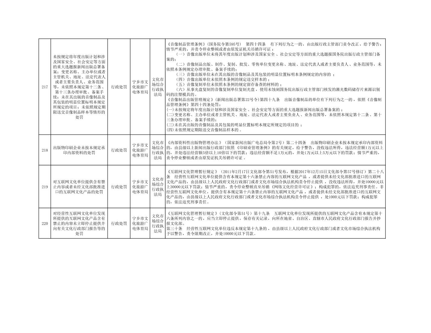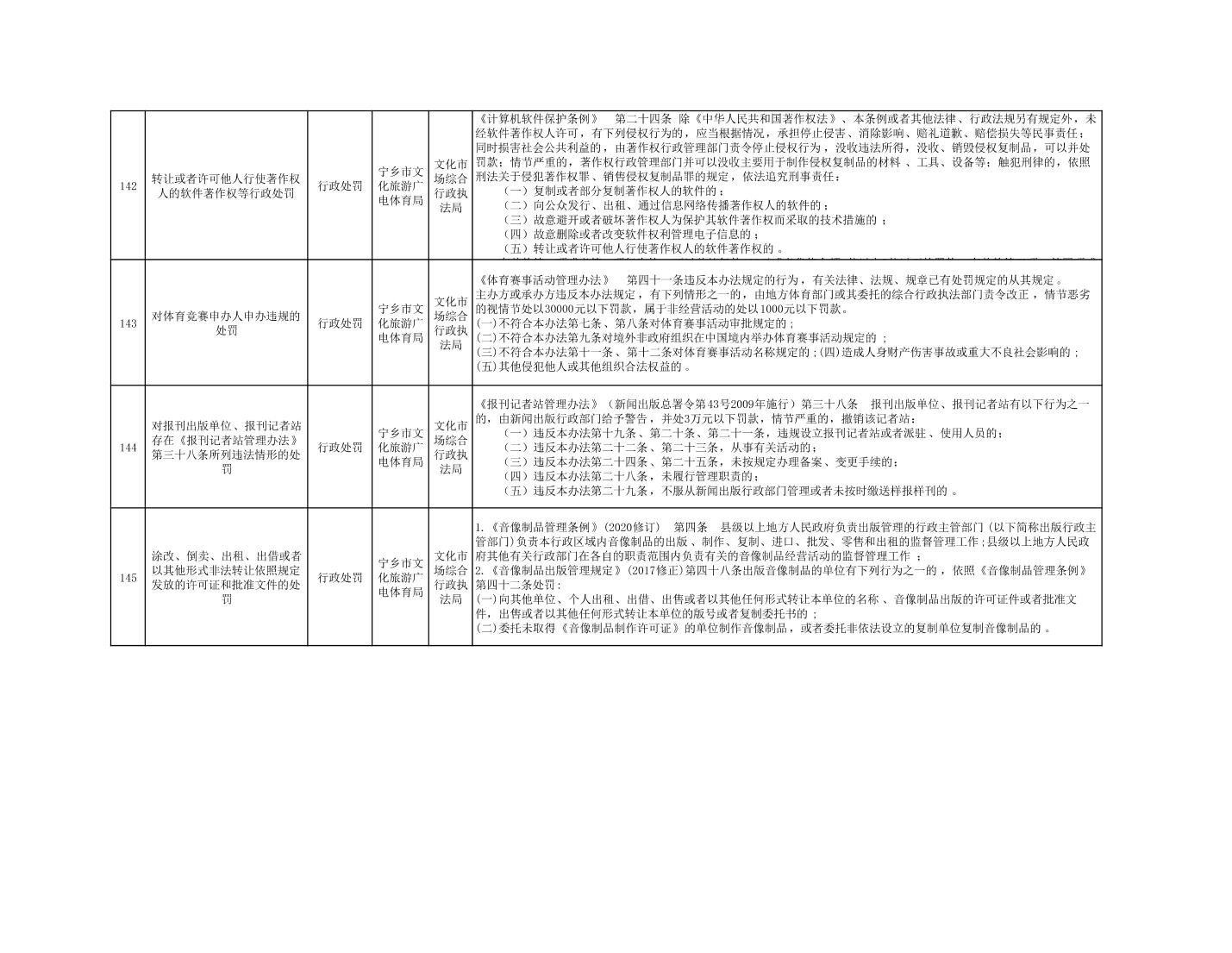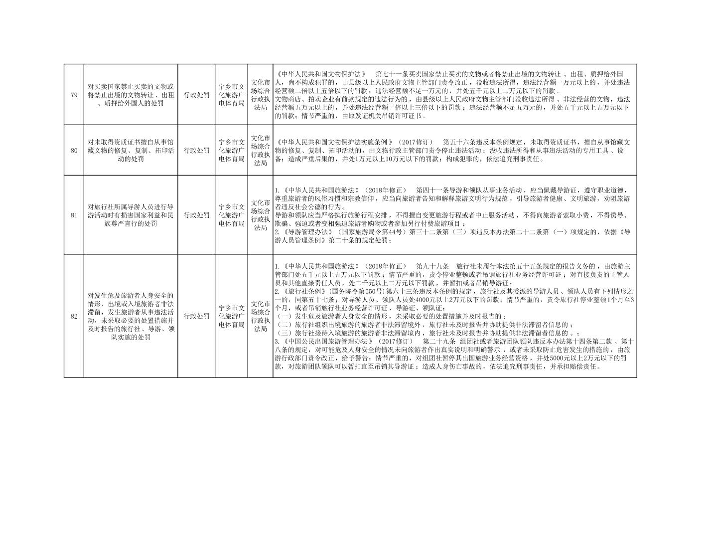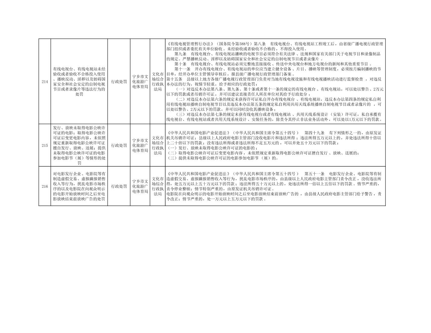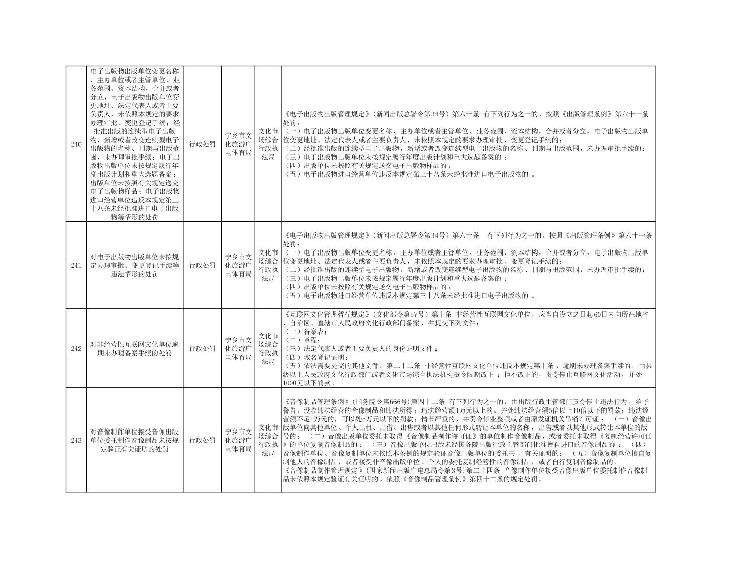 寧鄉市文化旅游廣電體育局行政執法事項目錄