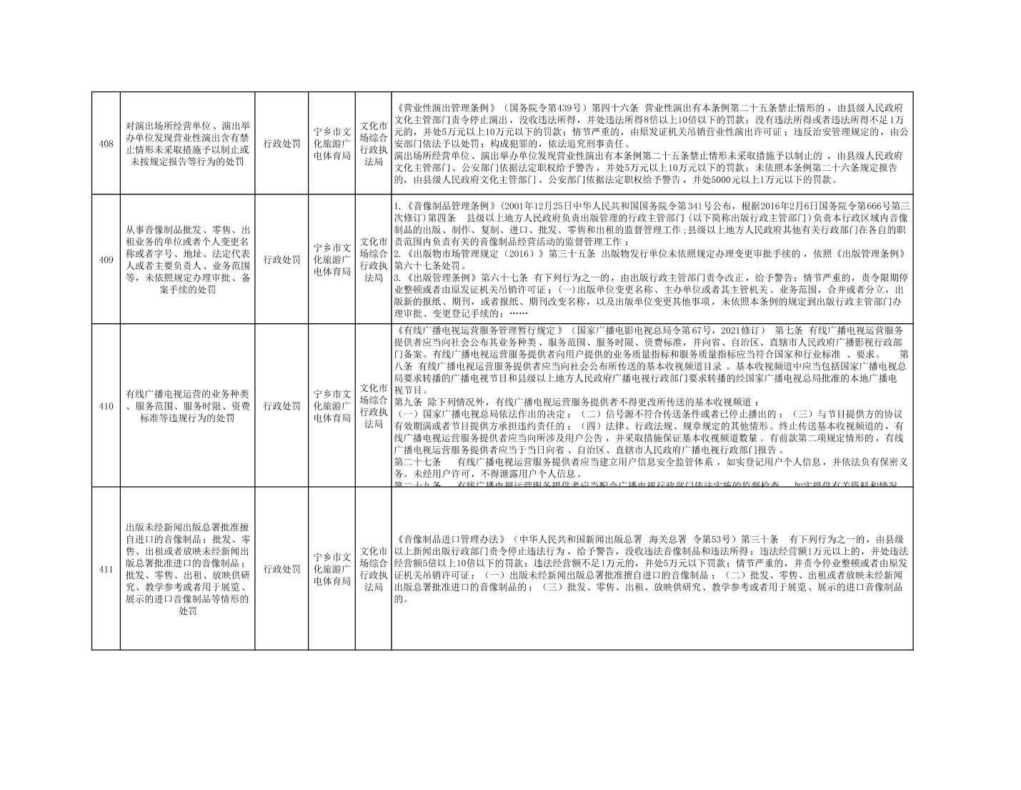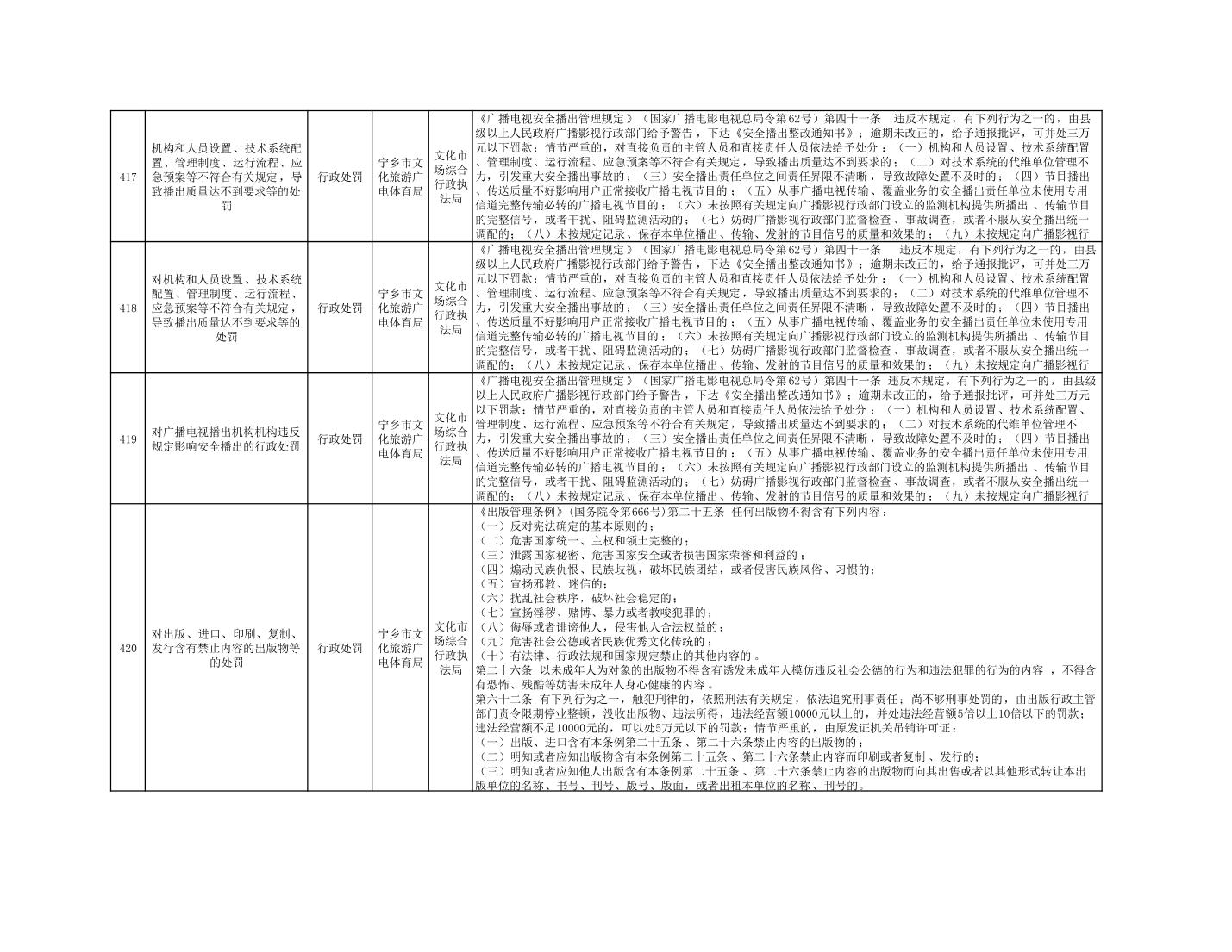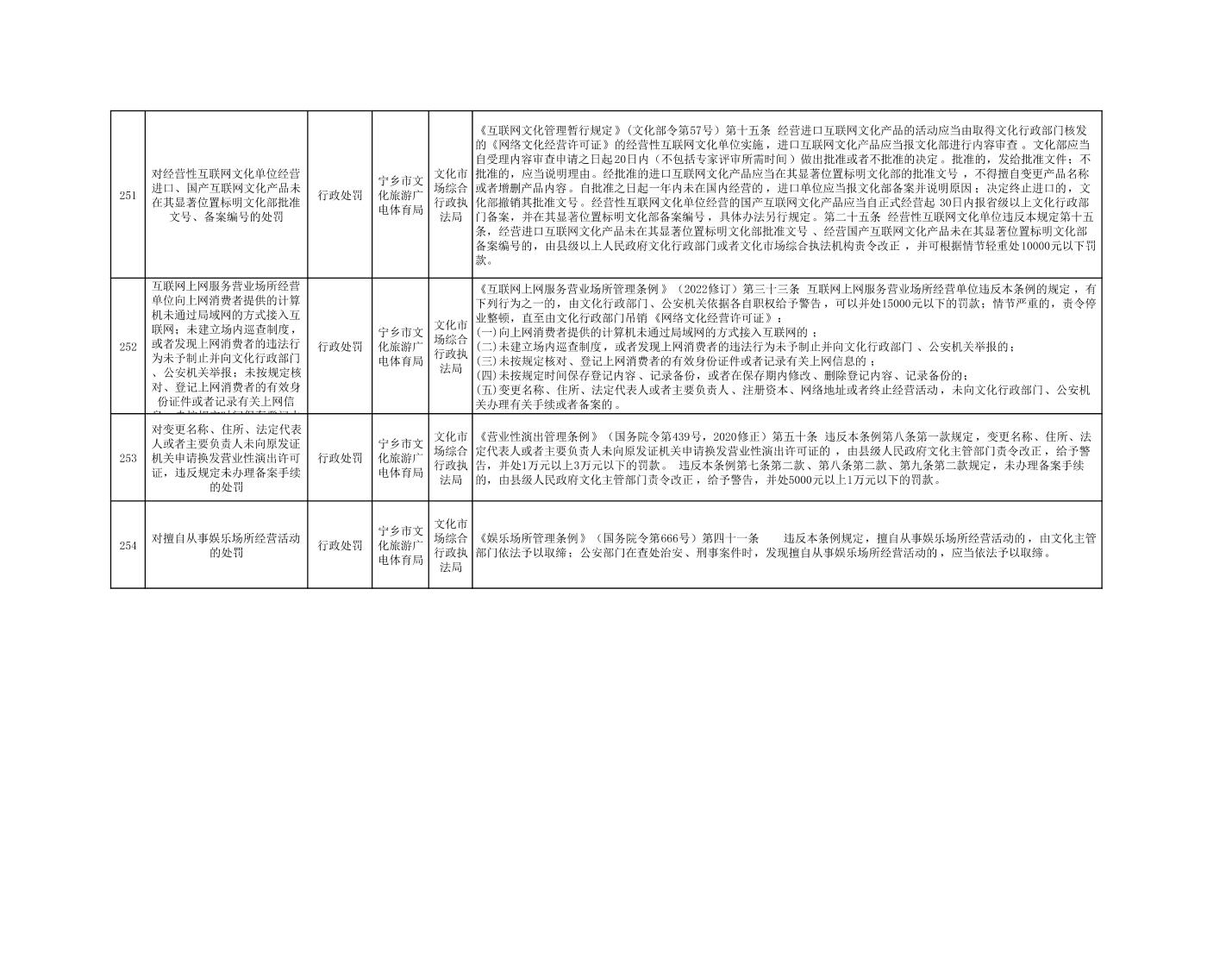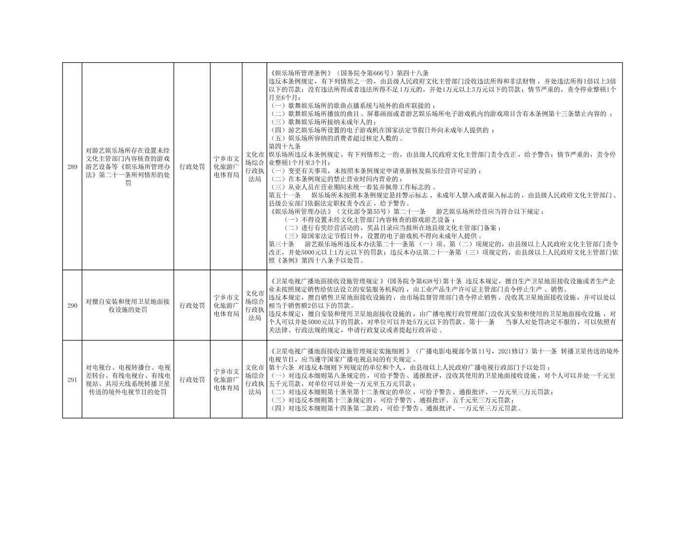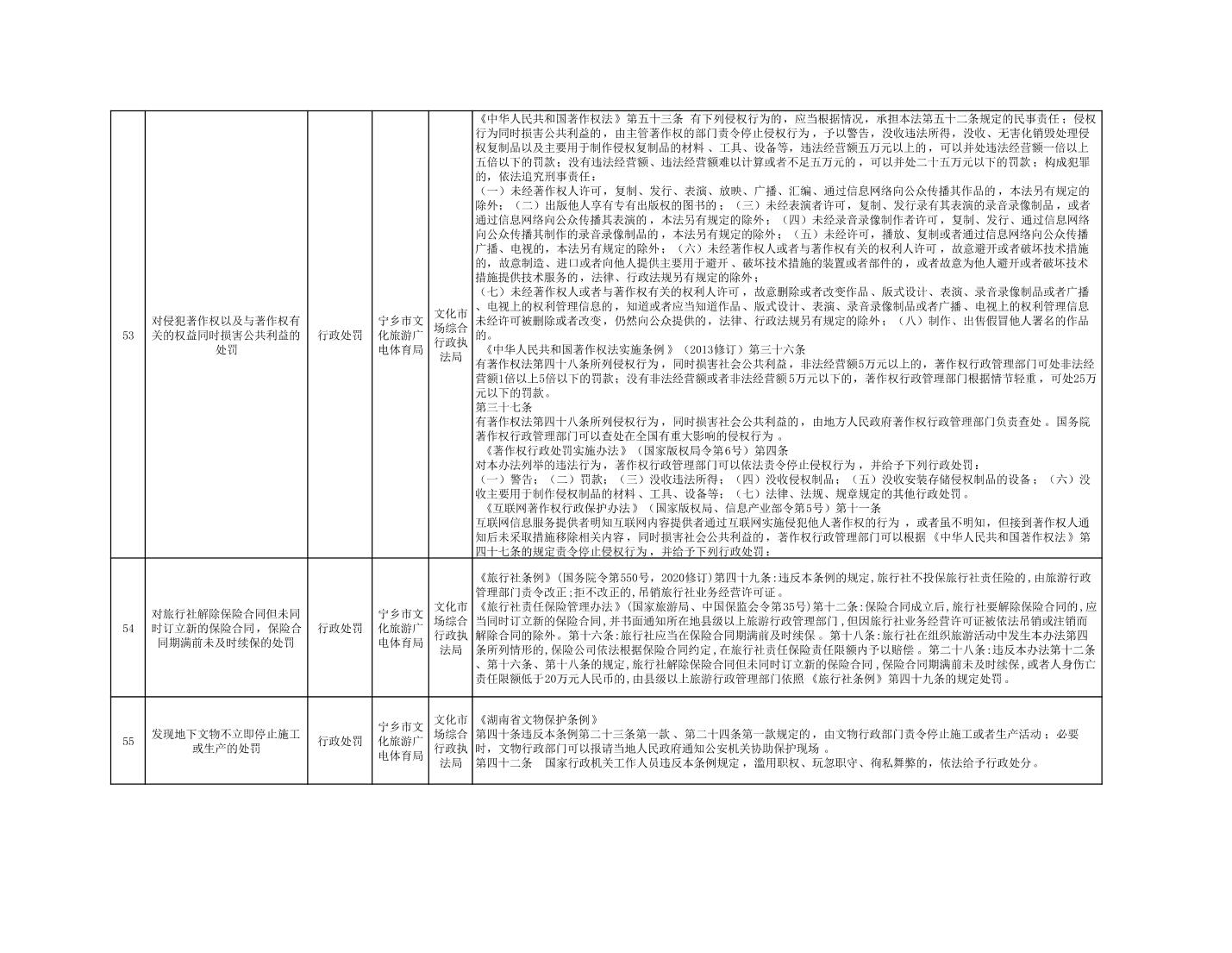 寧鄉市文化旅游廣電體育局行政執法事項目錄