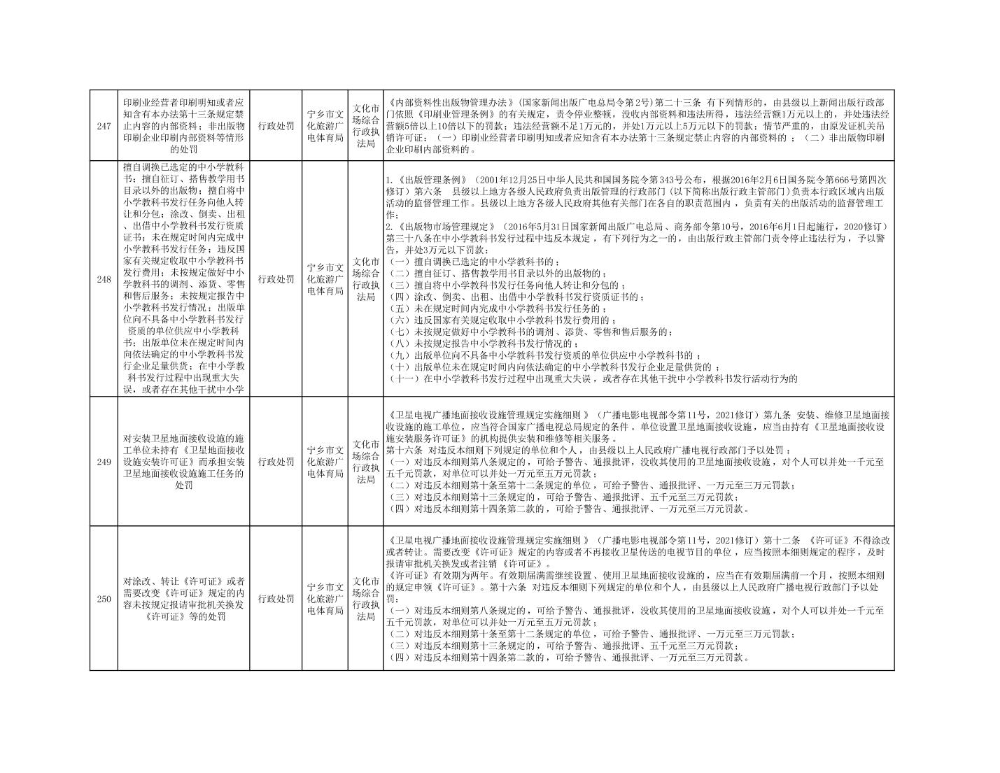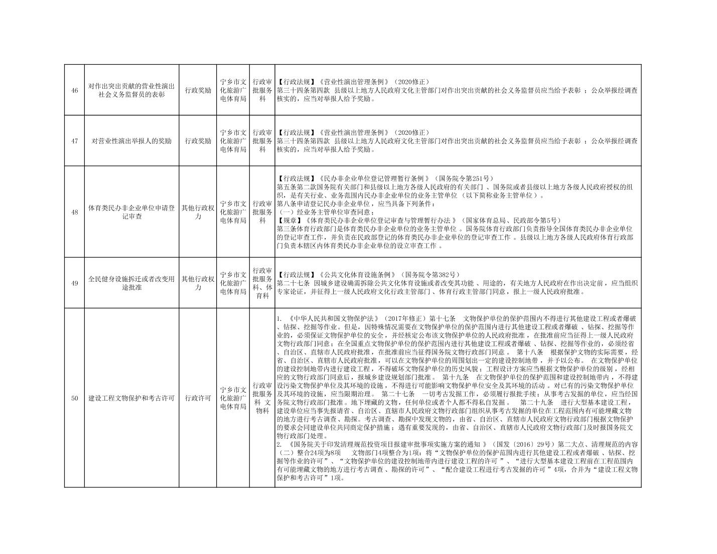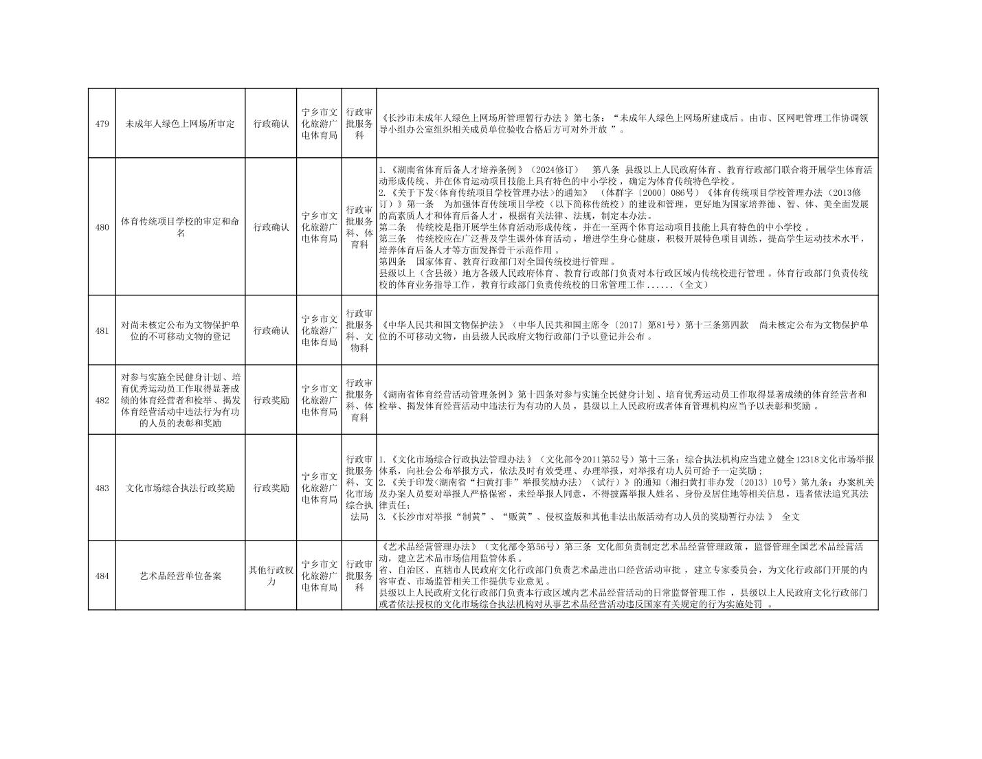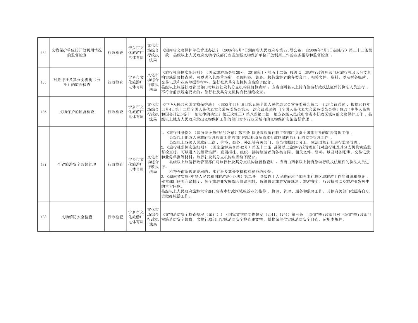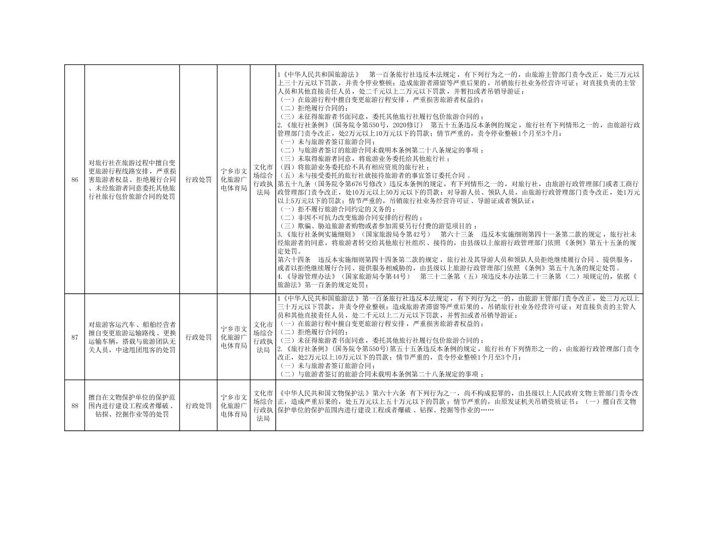 寧鄉市文化旅游廣電體育局行政執法事項目錄