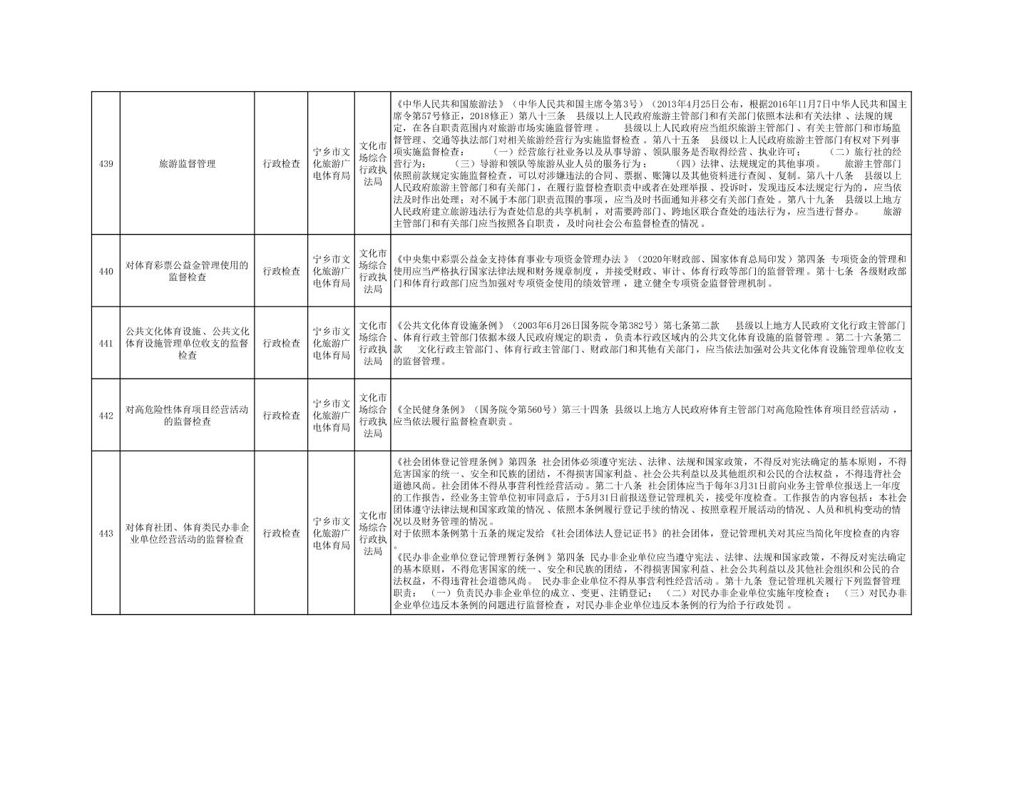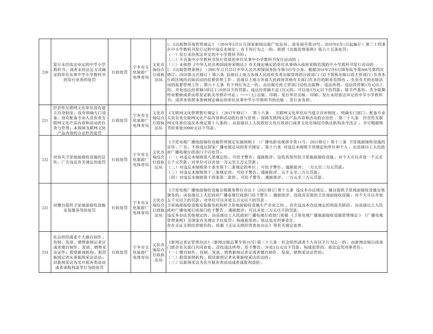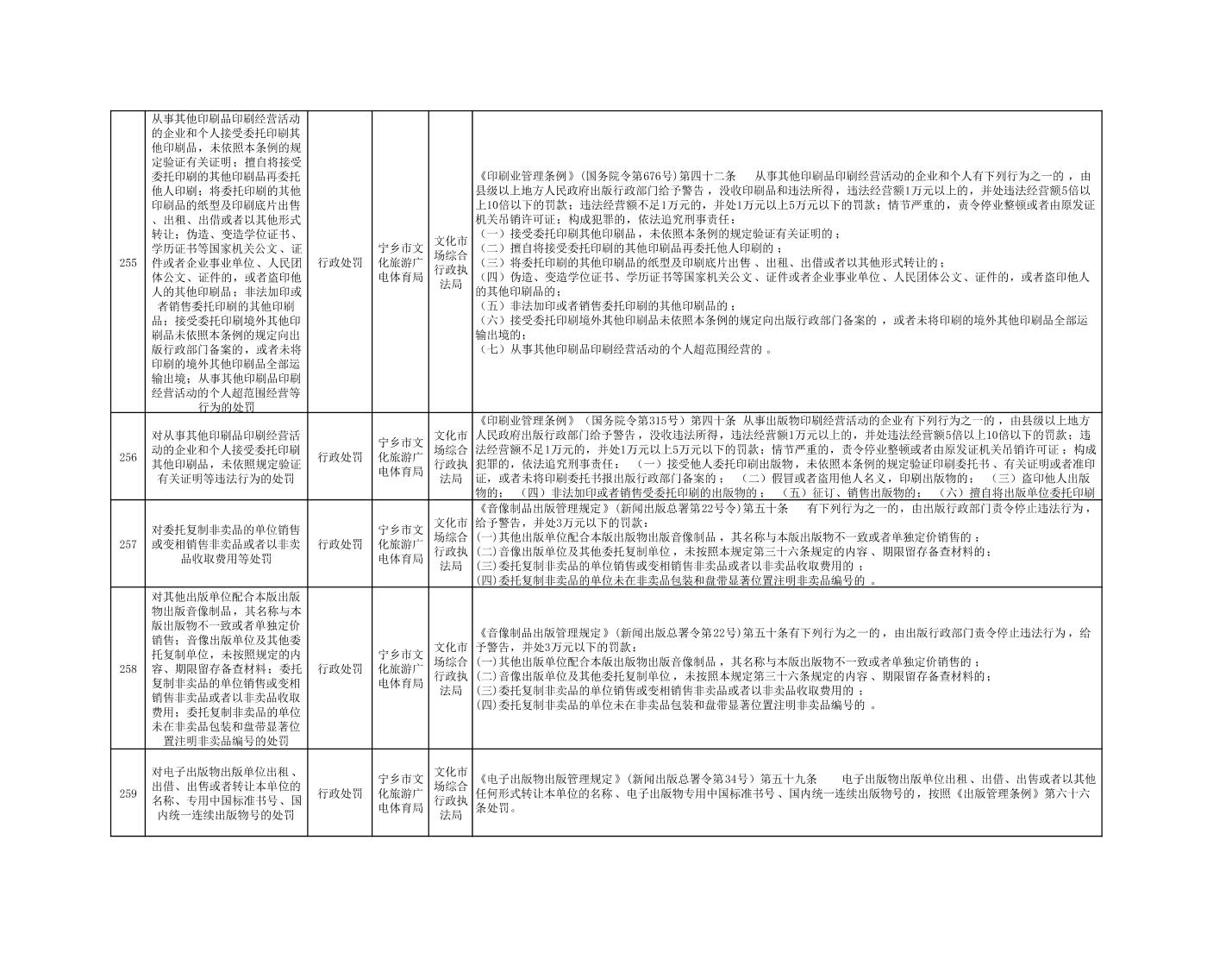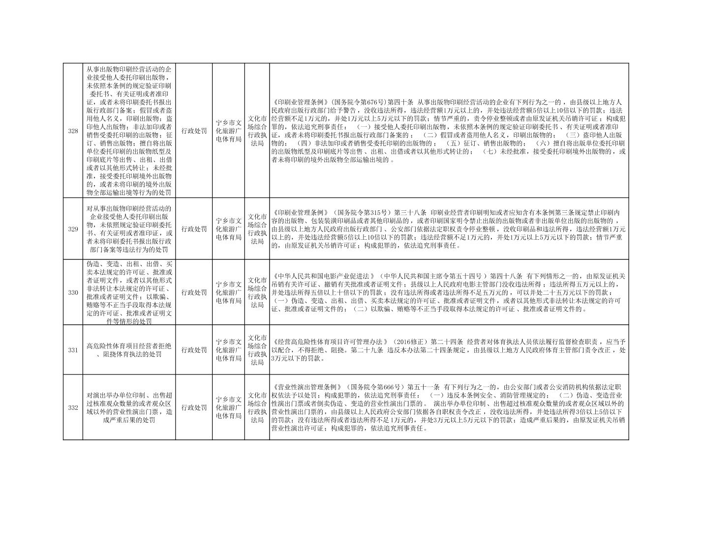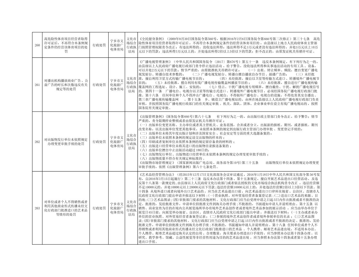 寧鄉市文化旅游廣電體育局行政執法事項目錄