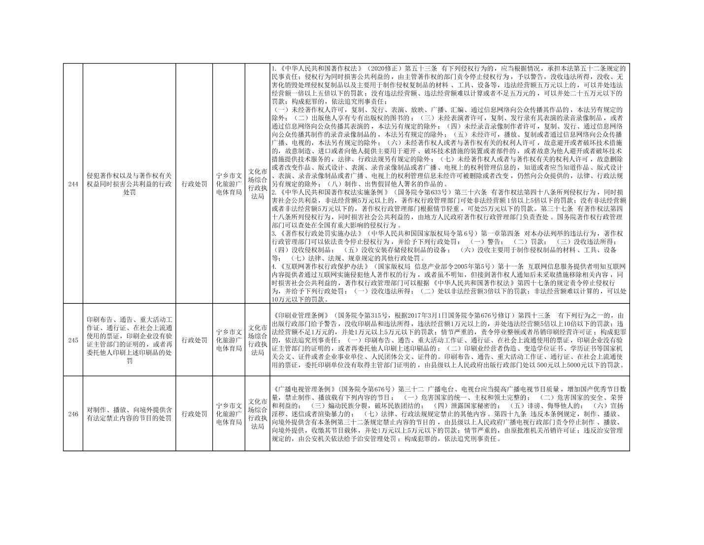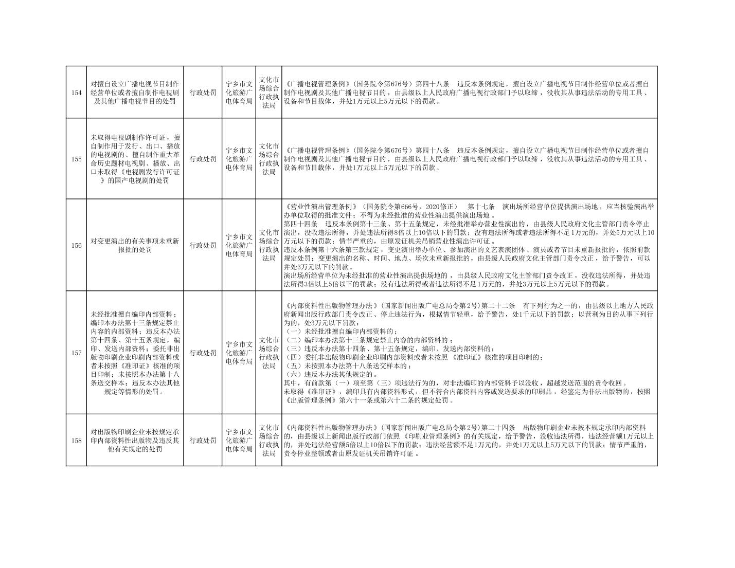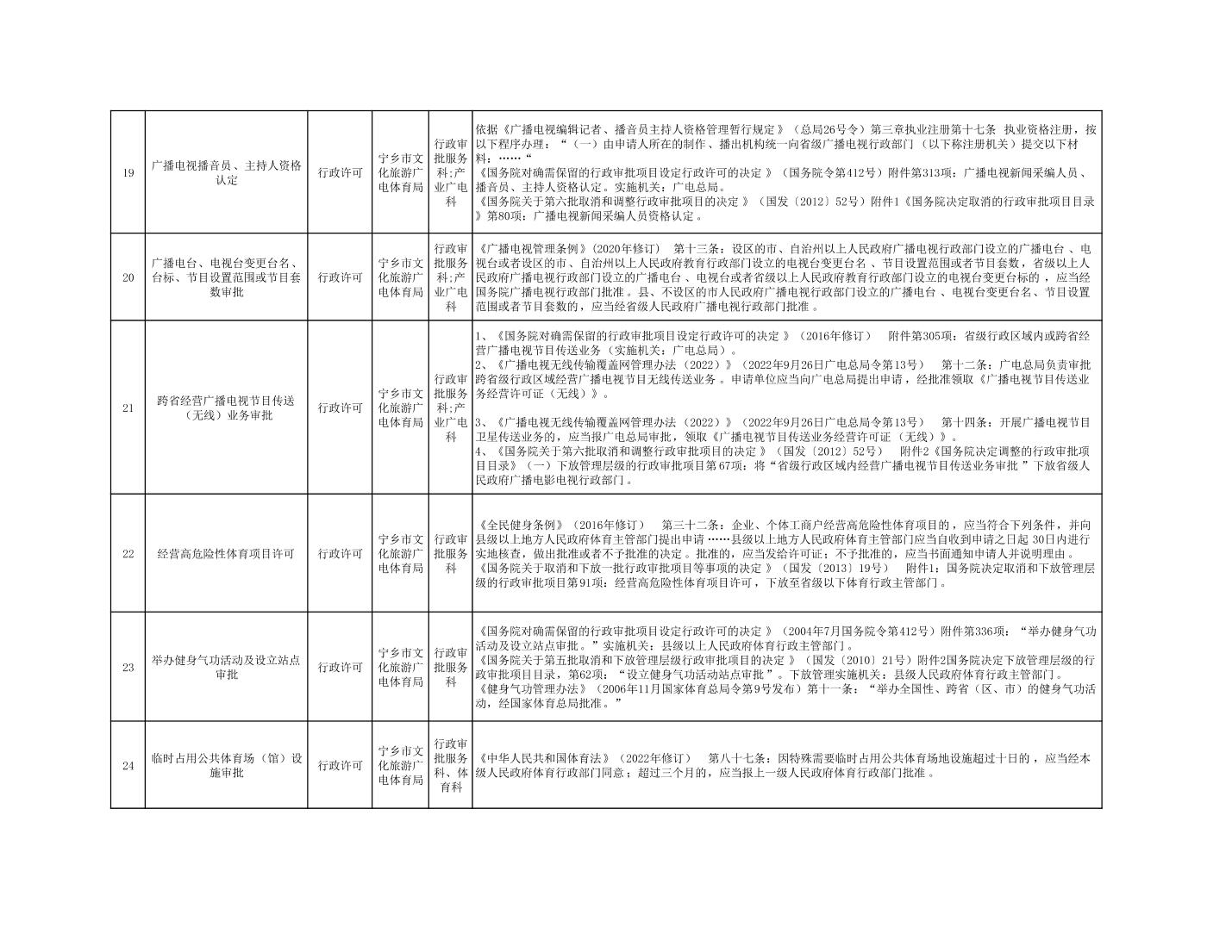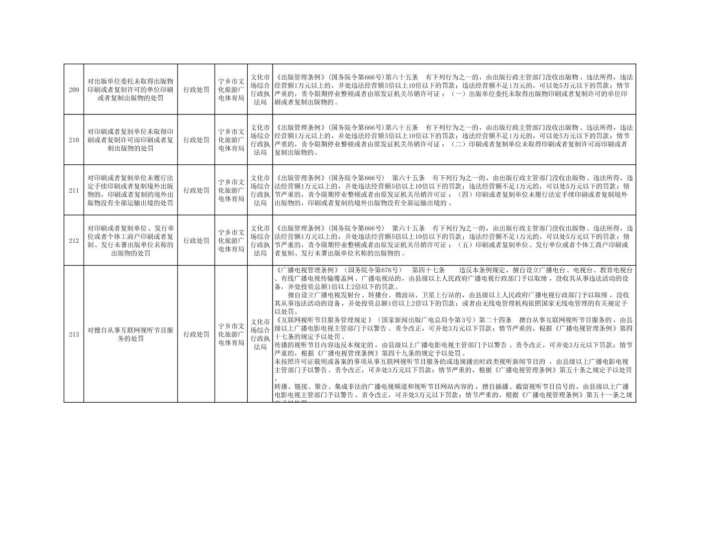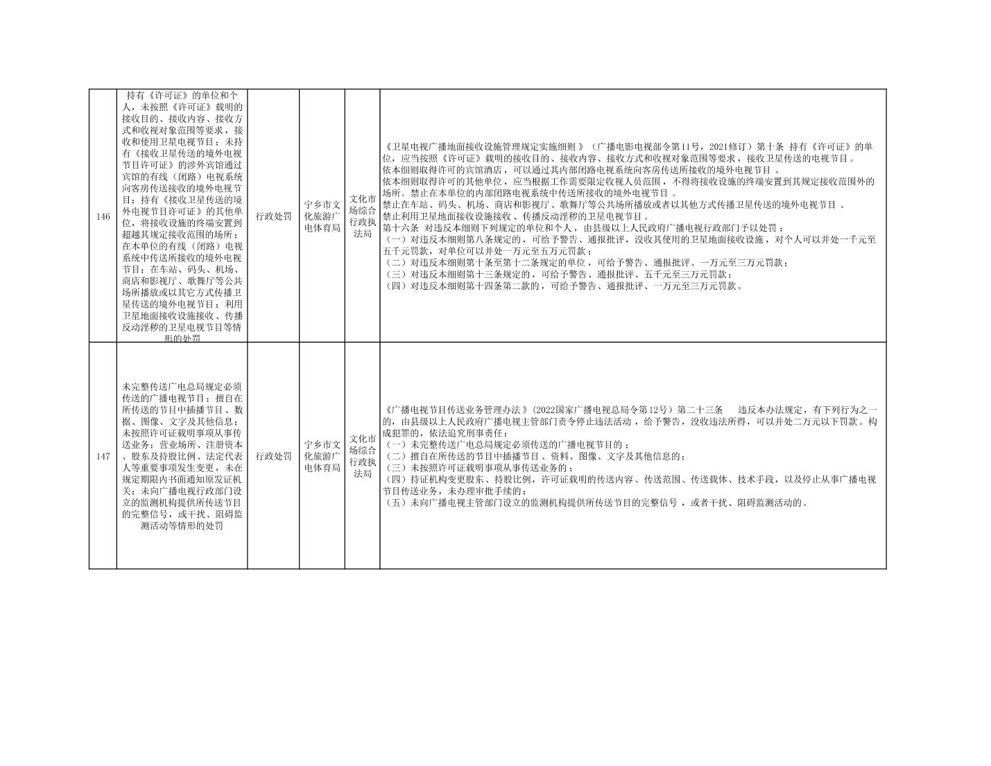 寧鄉市文化旅游廣電體育局行政執法事項目錄
