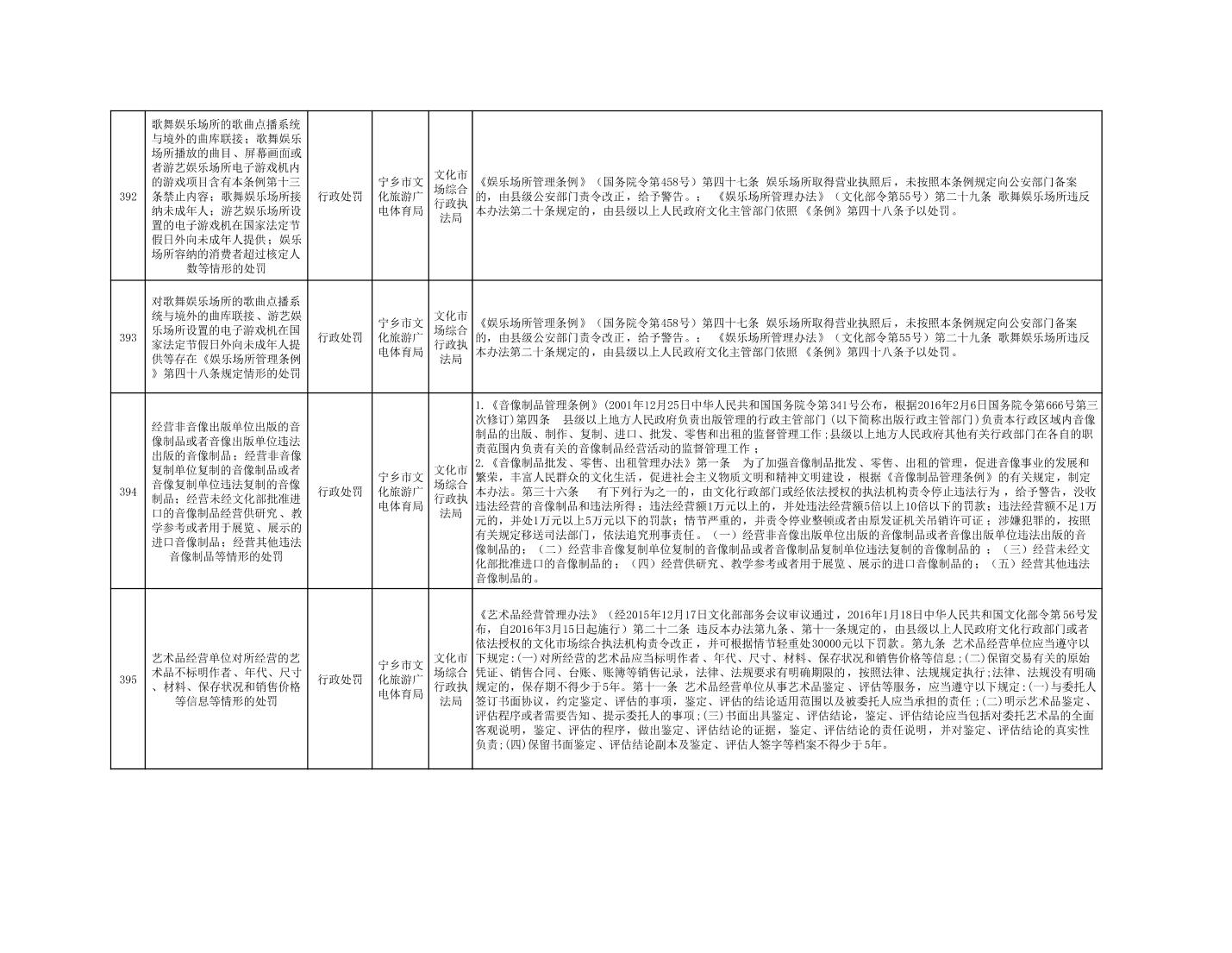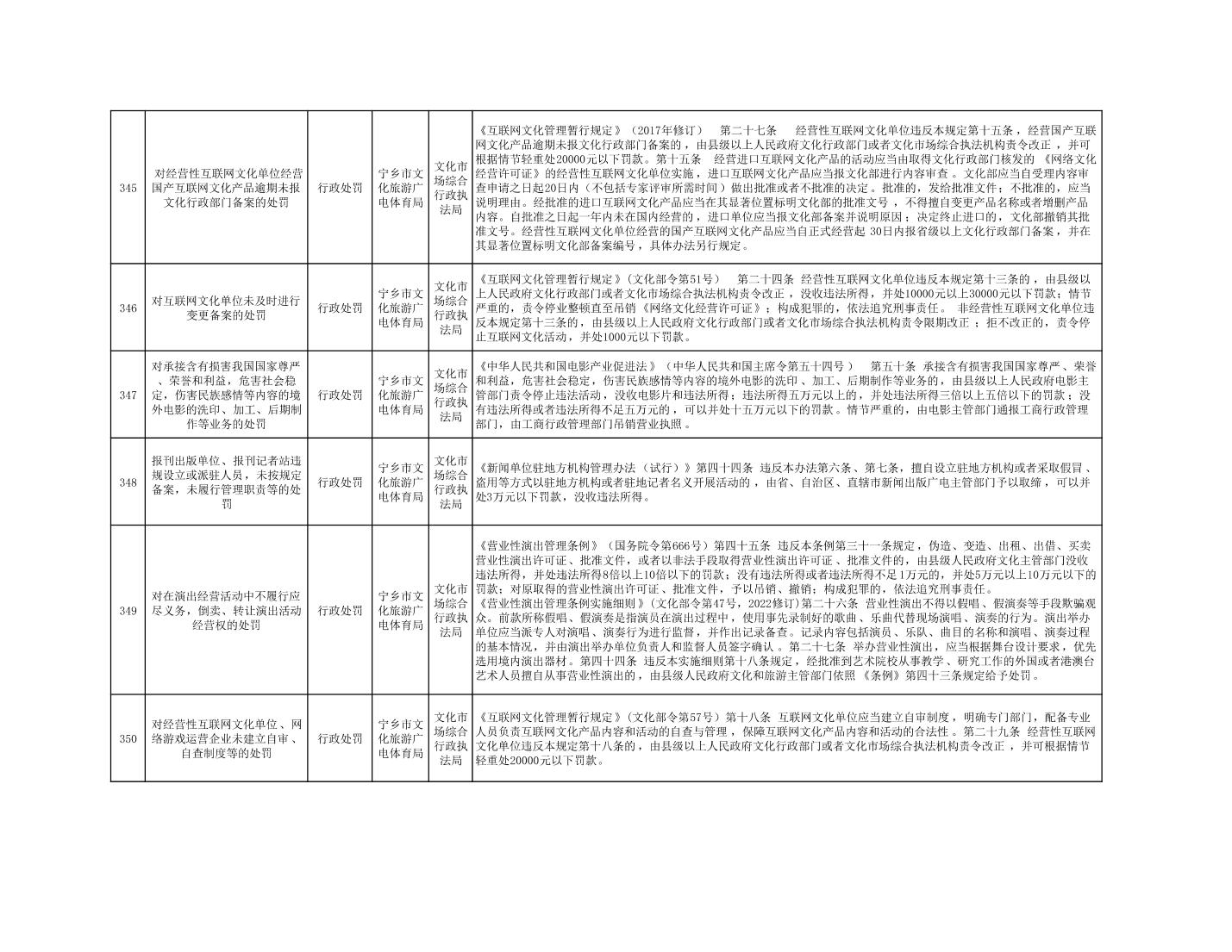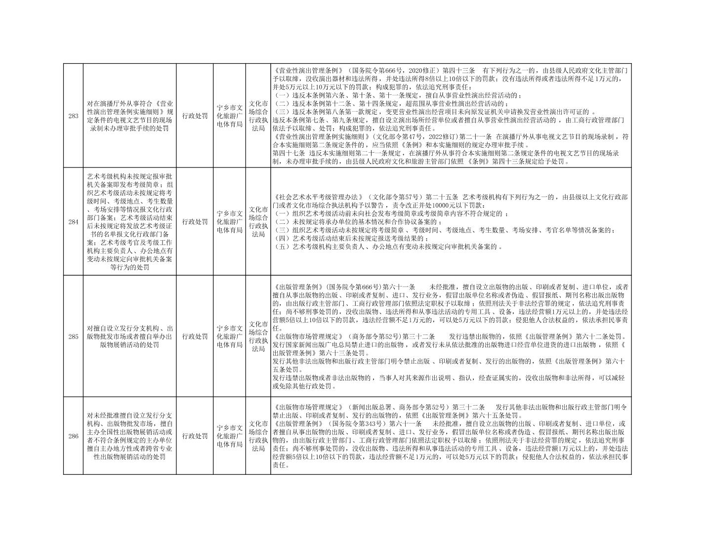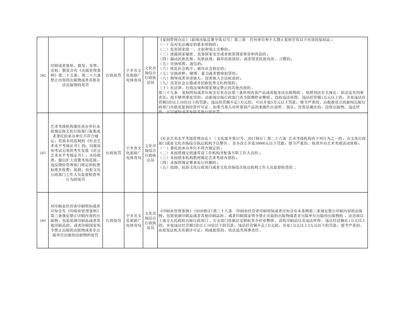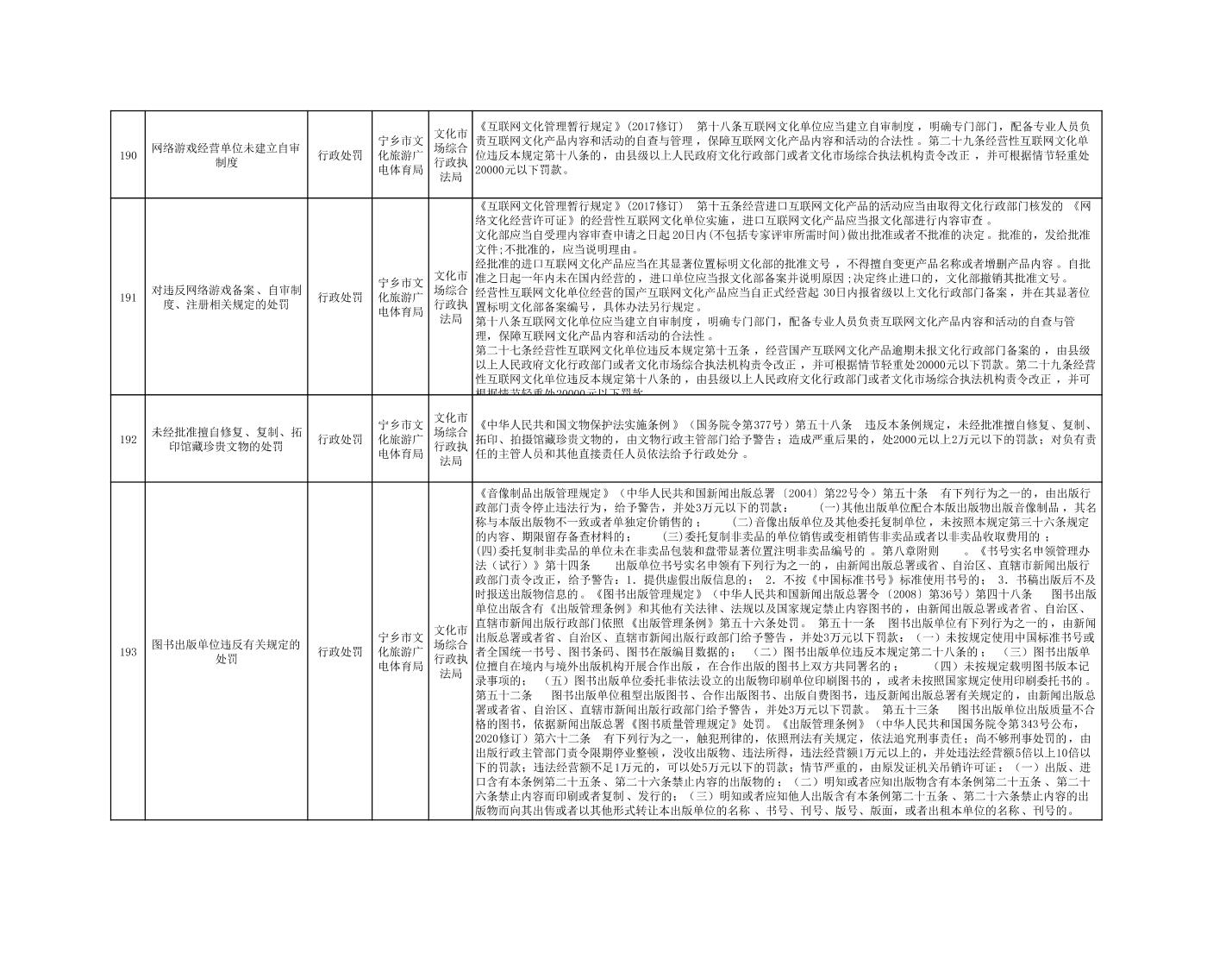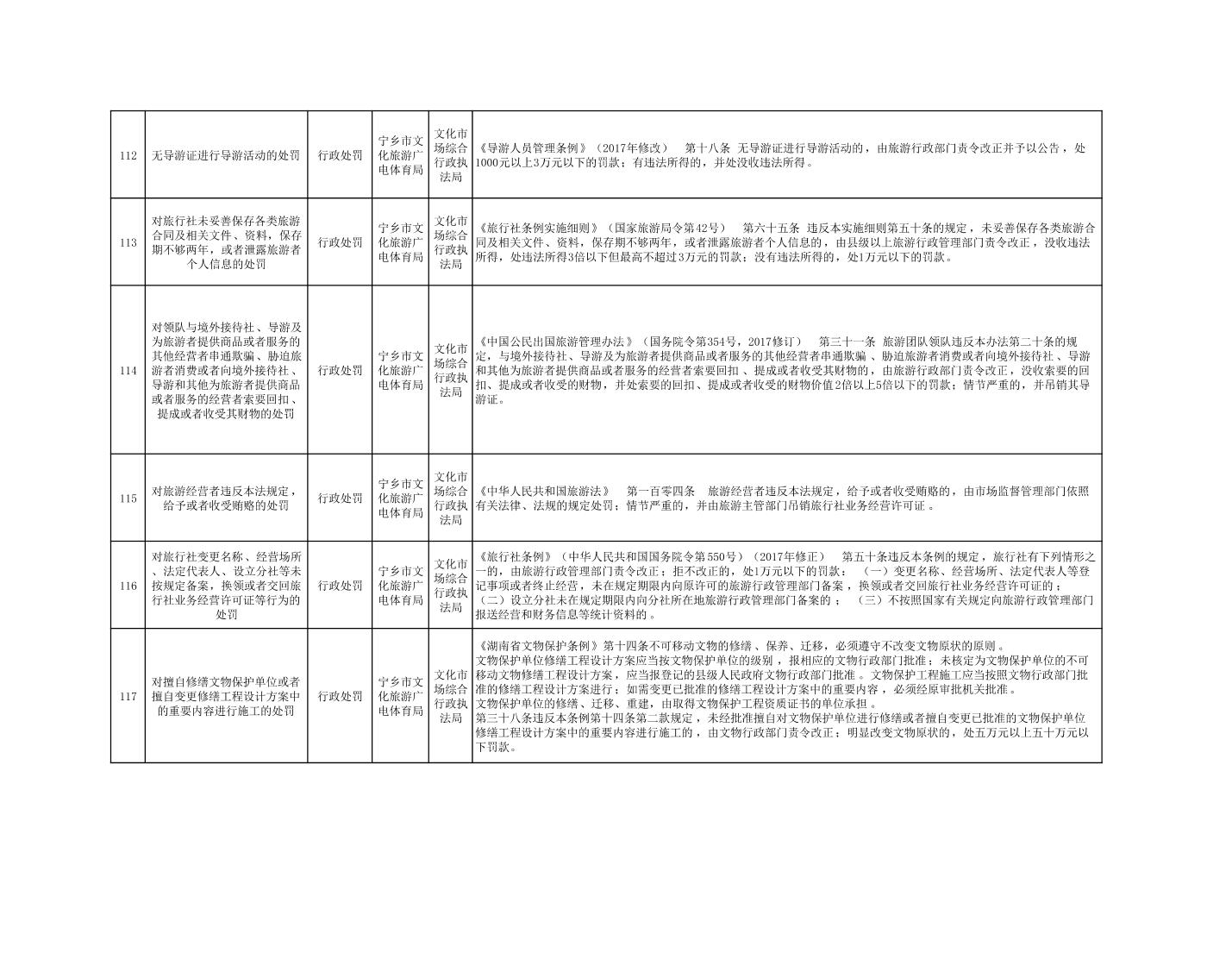 寧鄉市文化旅游廣電體育局行政執法事項目錄