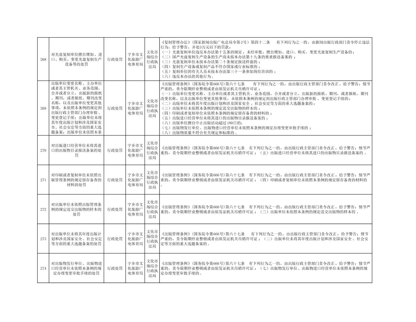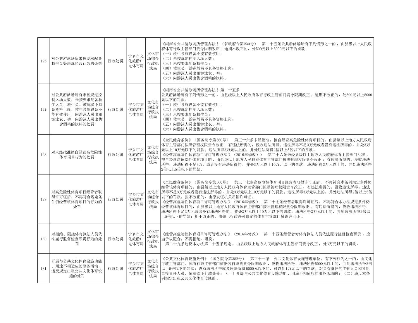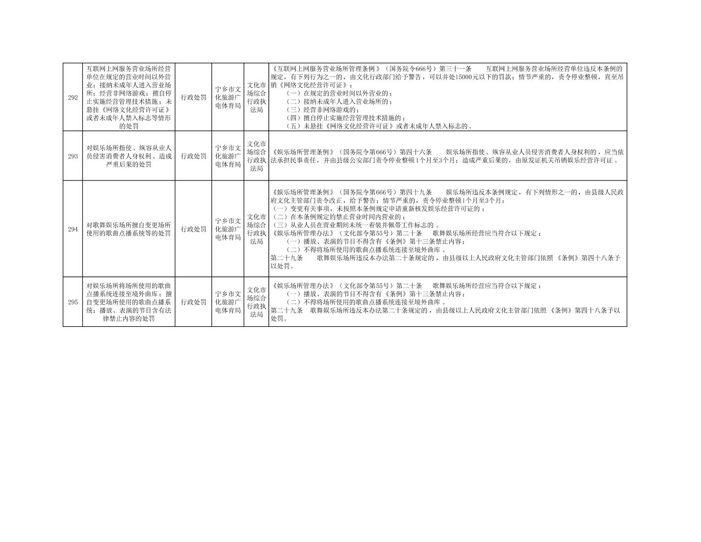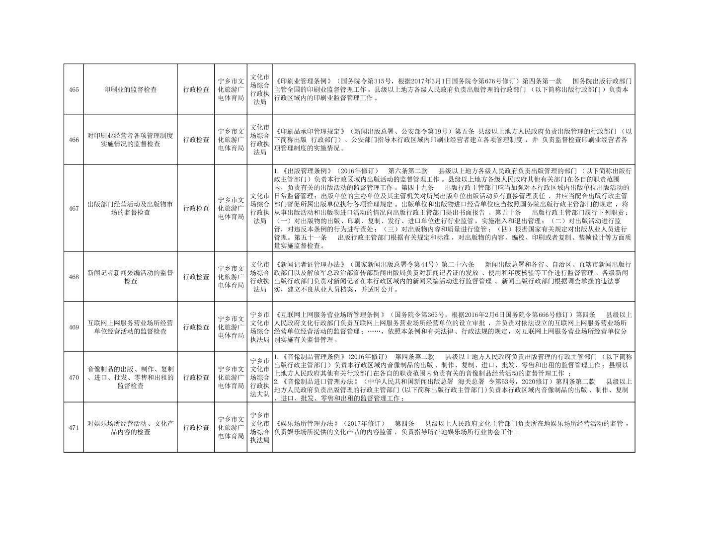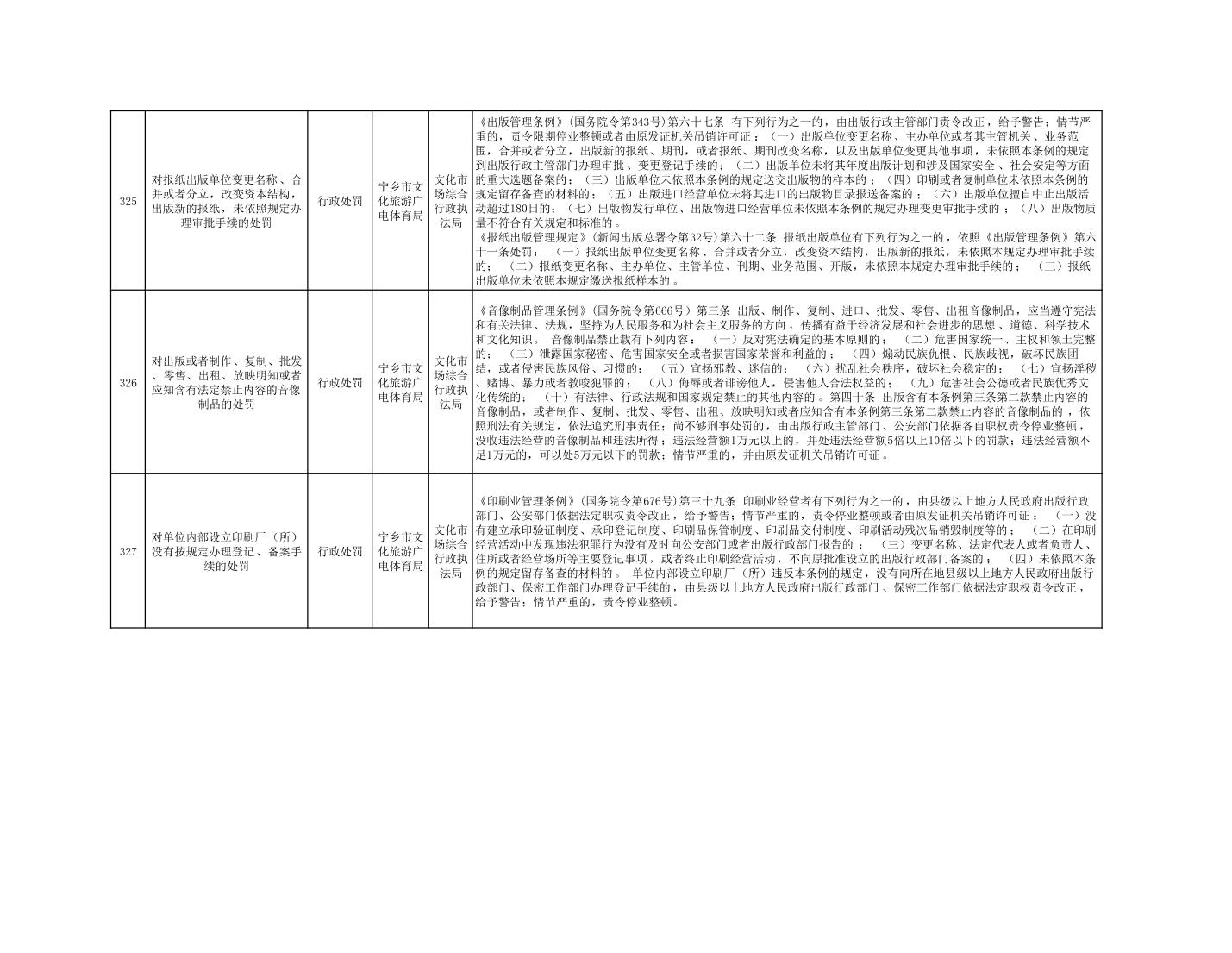 寧鄉市文化旅游廣電體育局行政執法事項目錄
