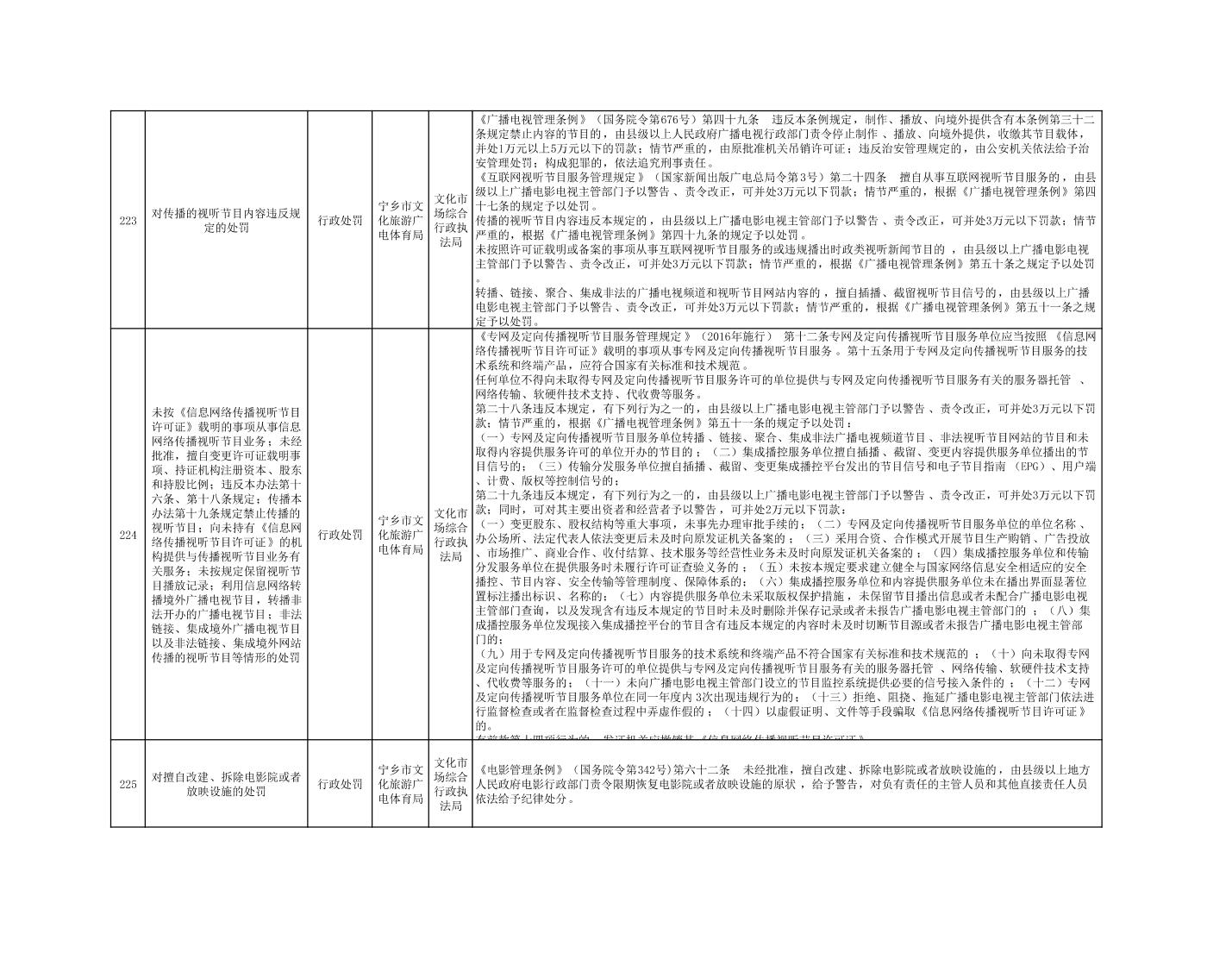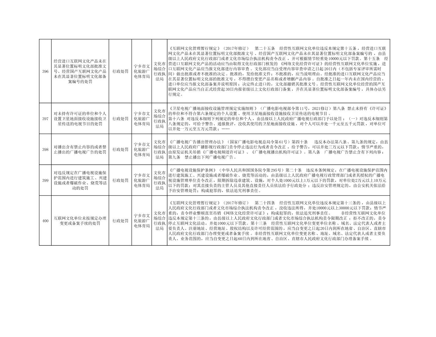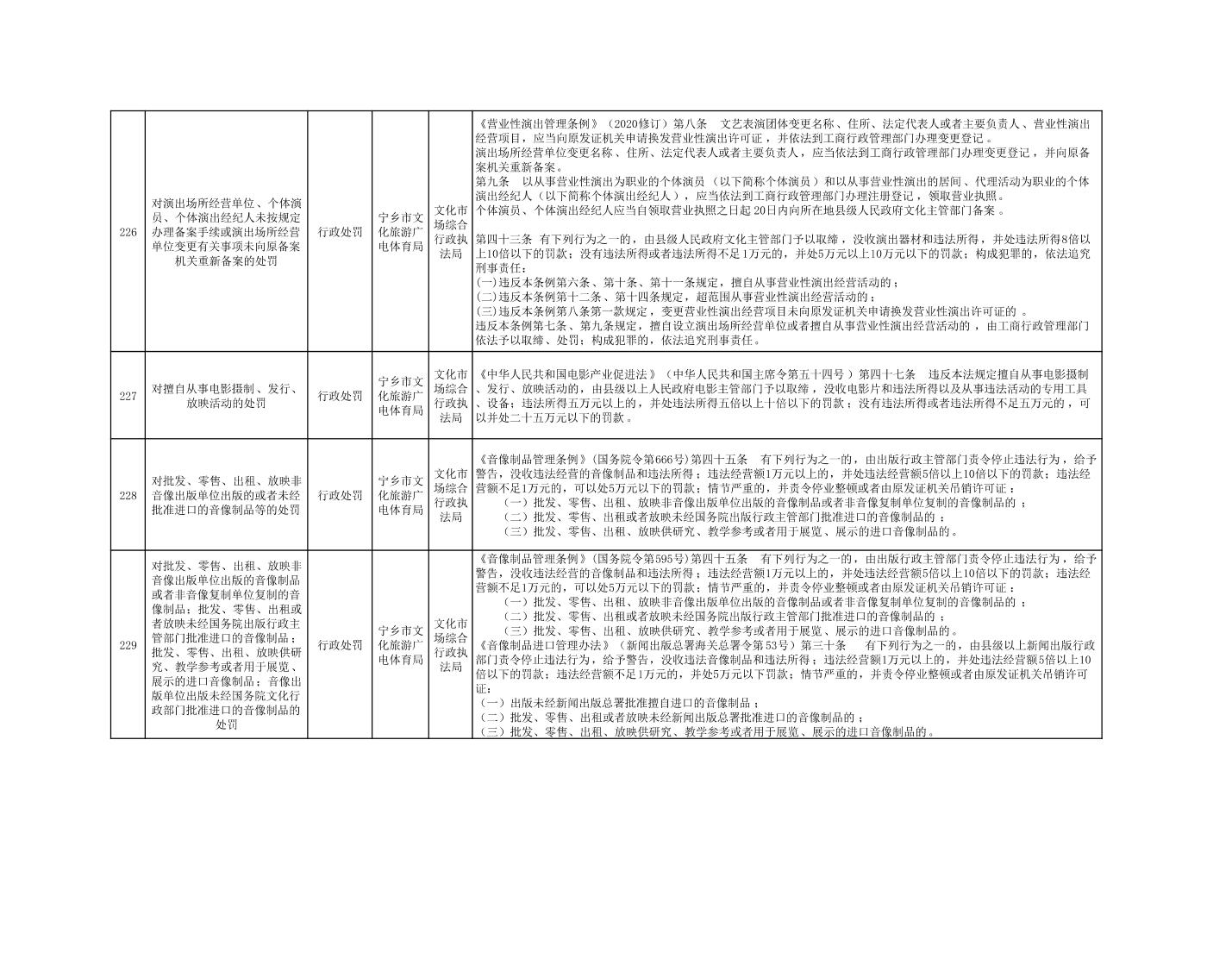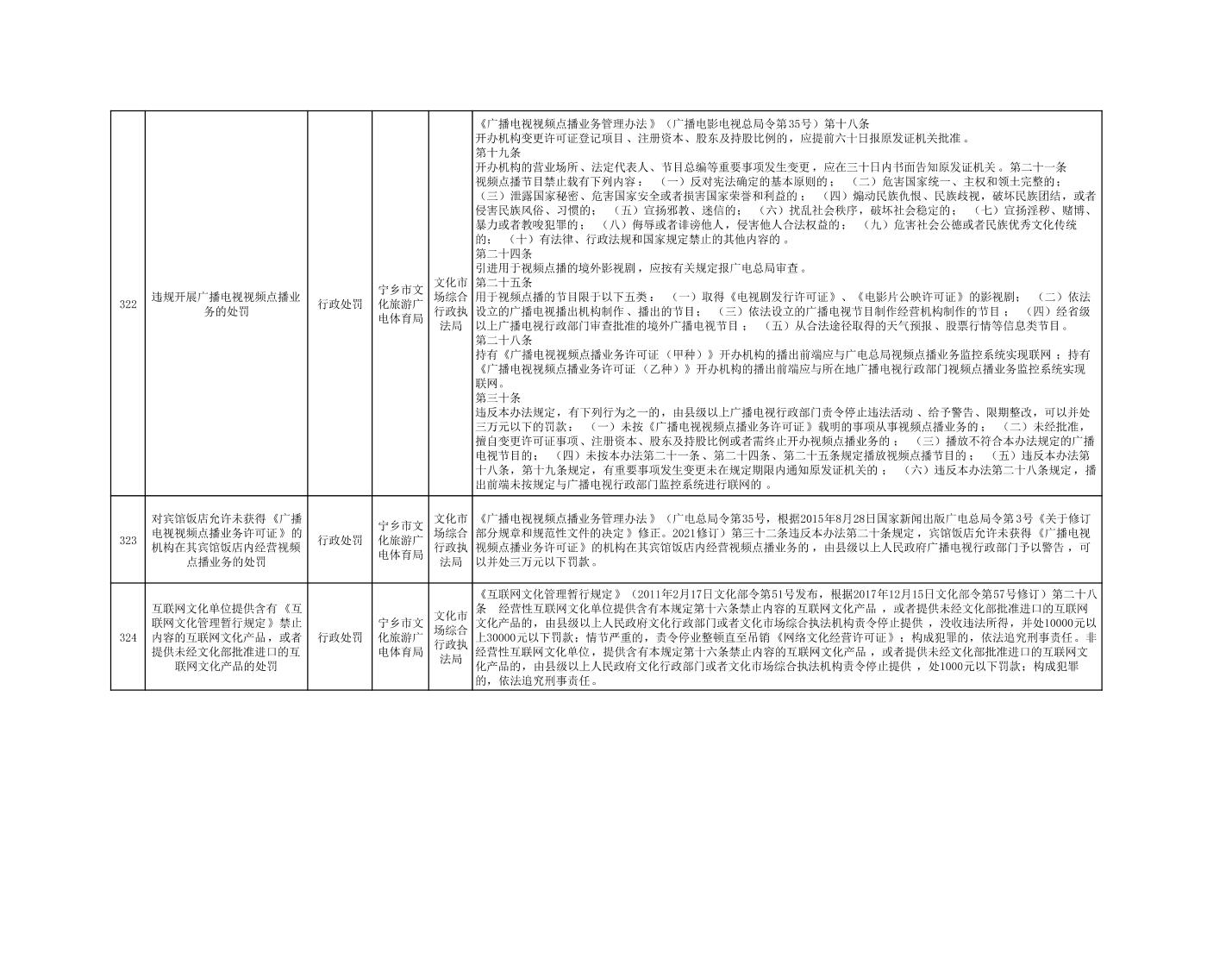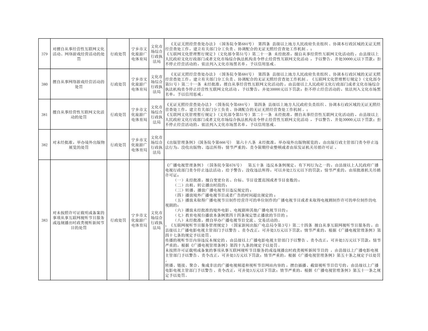 寧鄉市文化旅游廣電體育局行政執法事項目錄