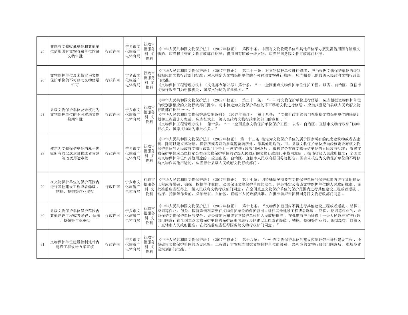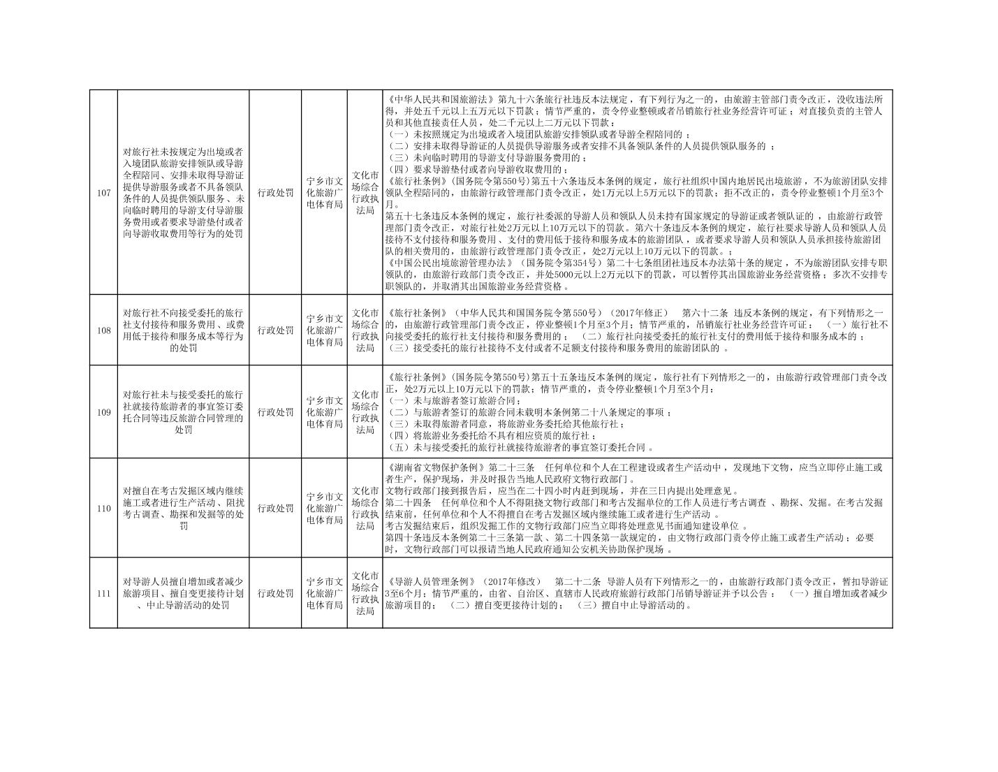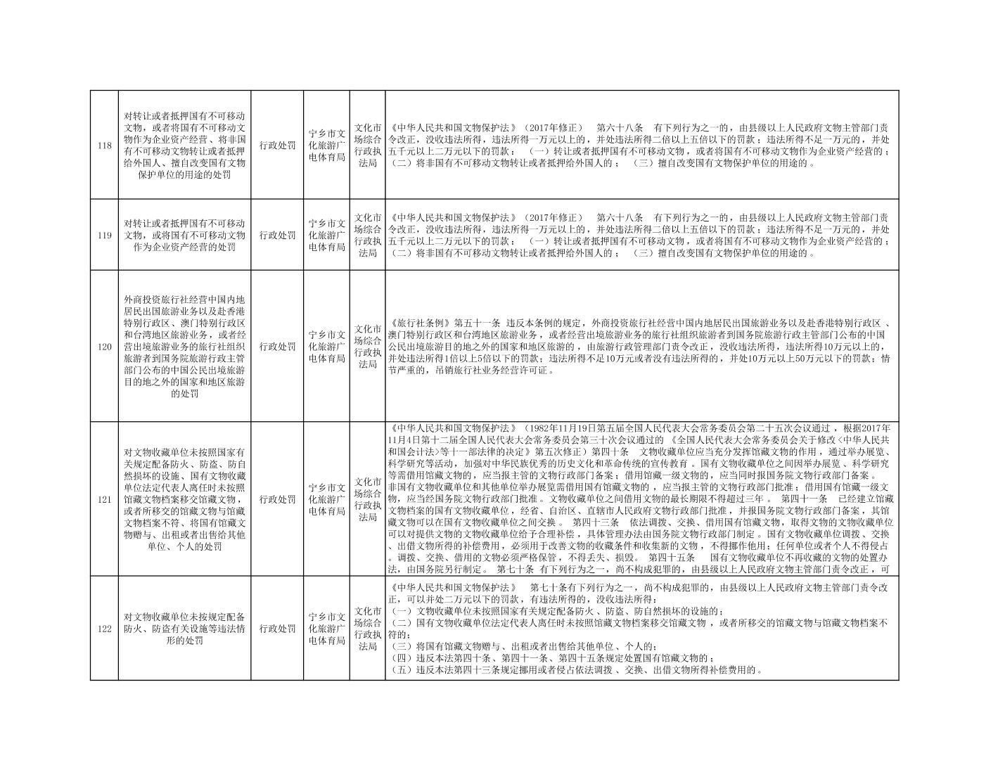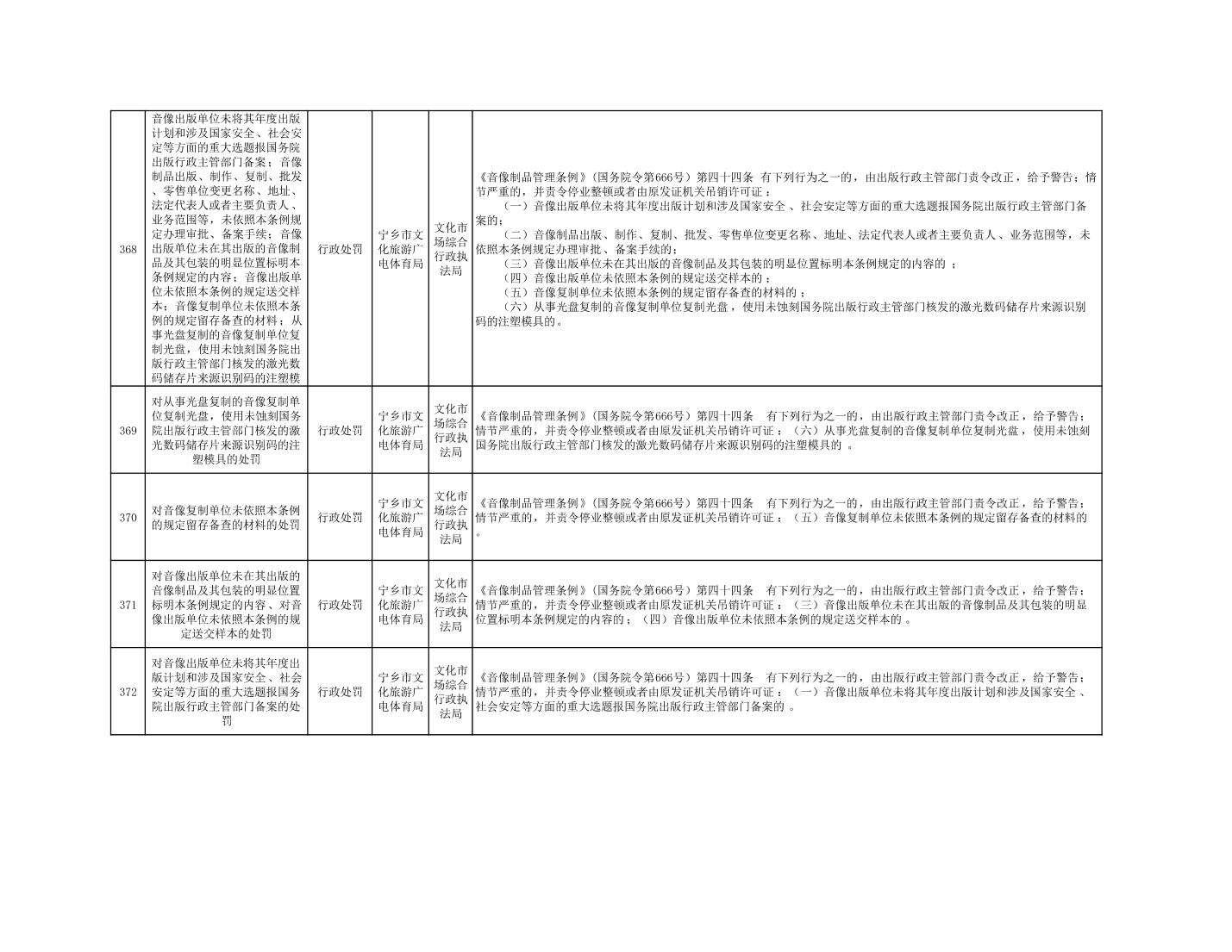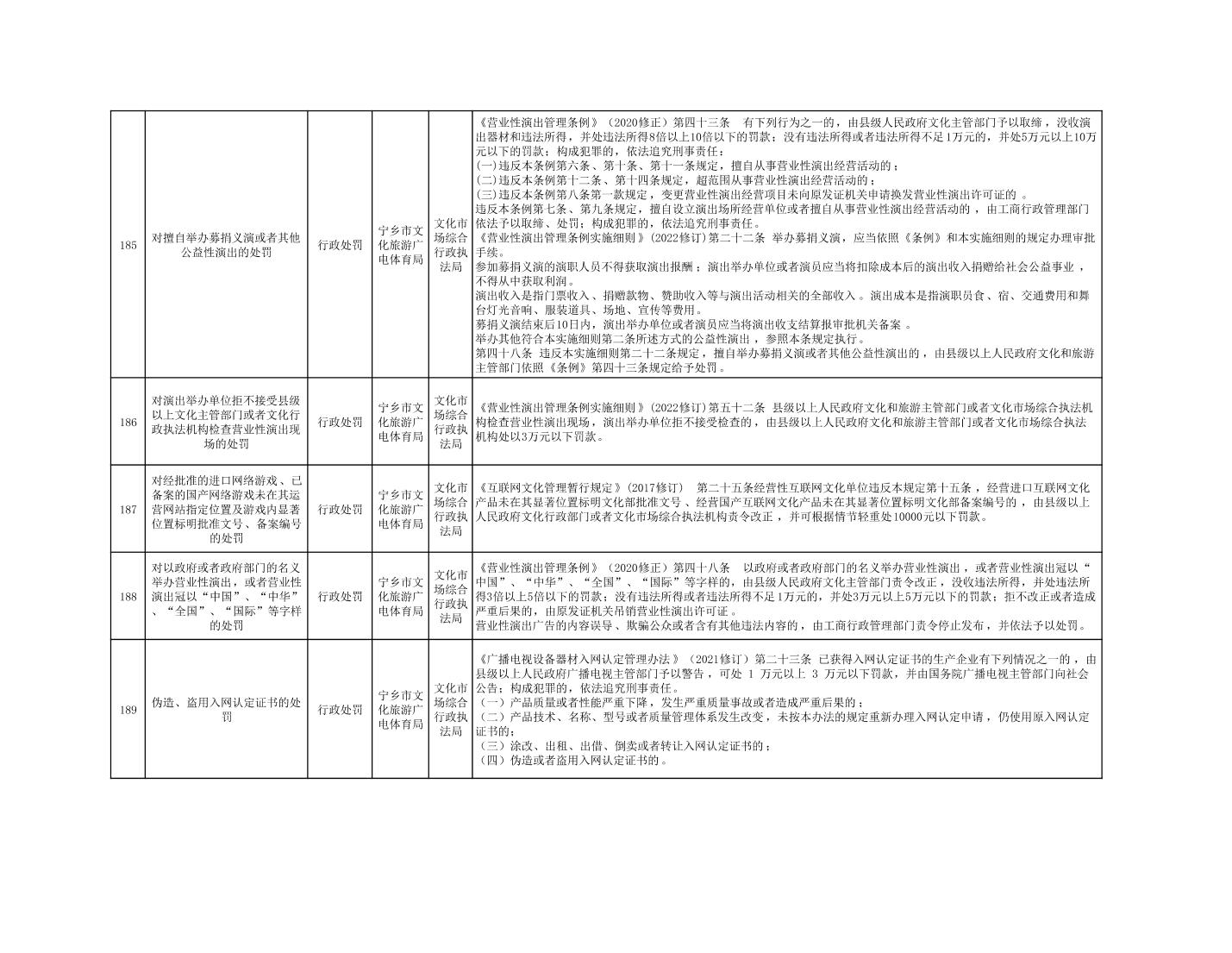 寧鄉市文化旅游廣電體育局行政執法事項目錄