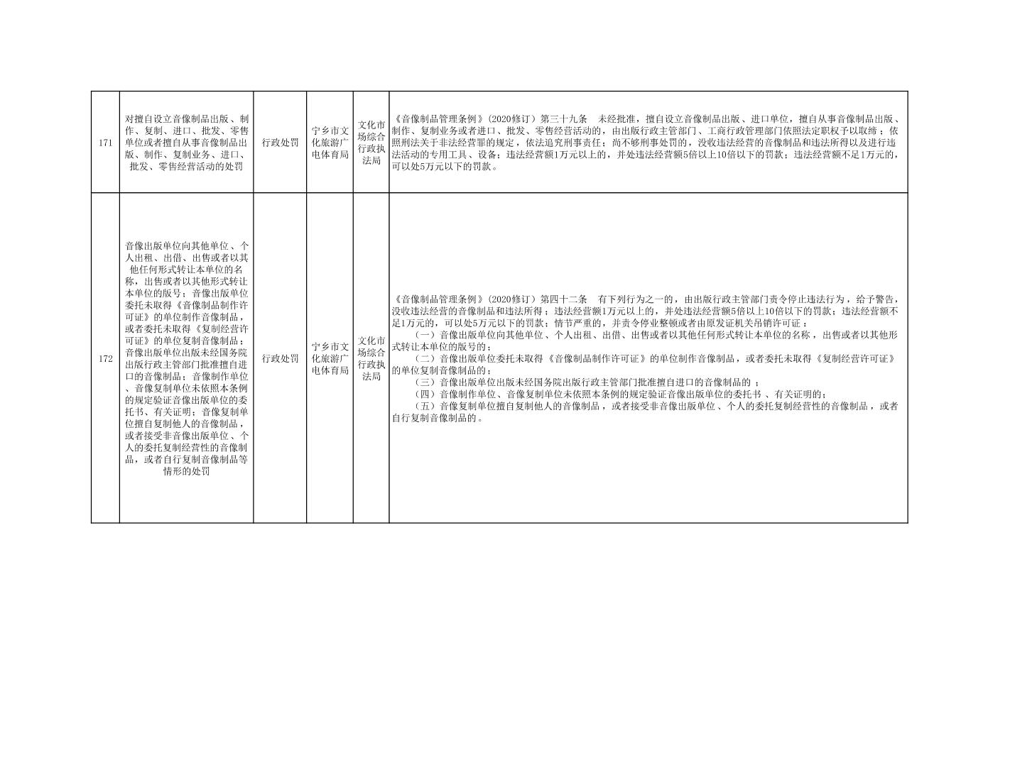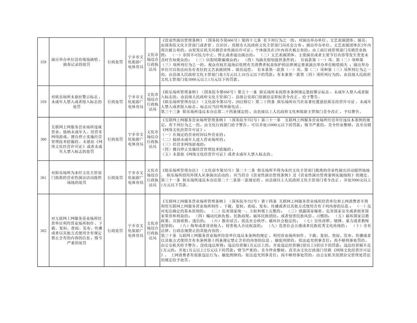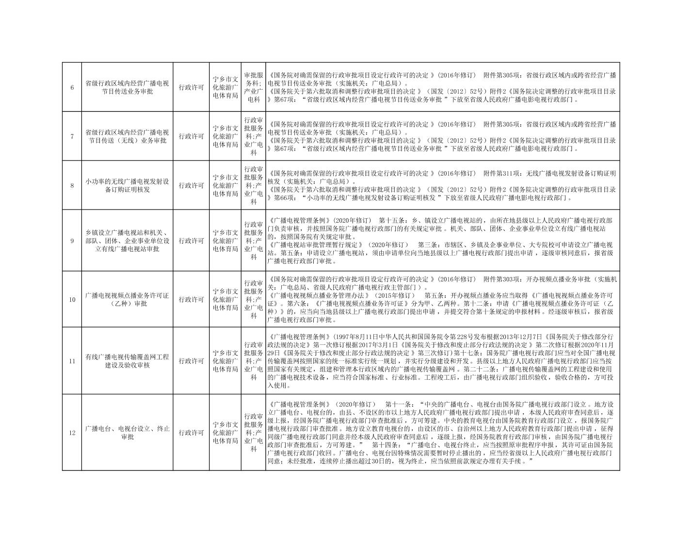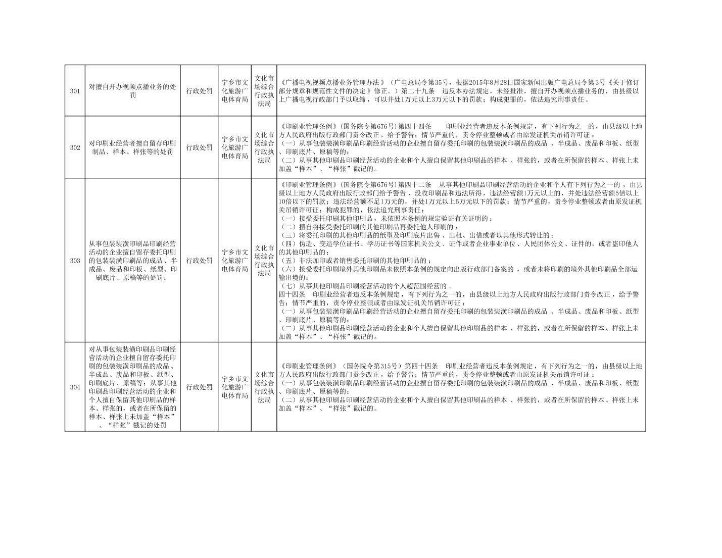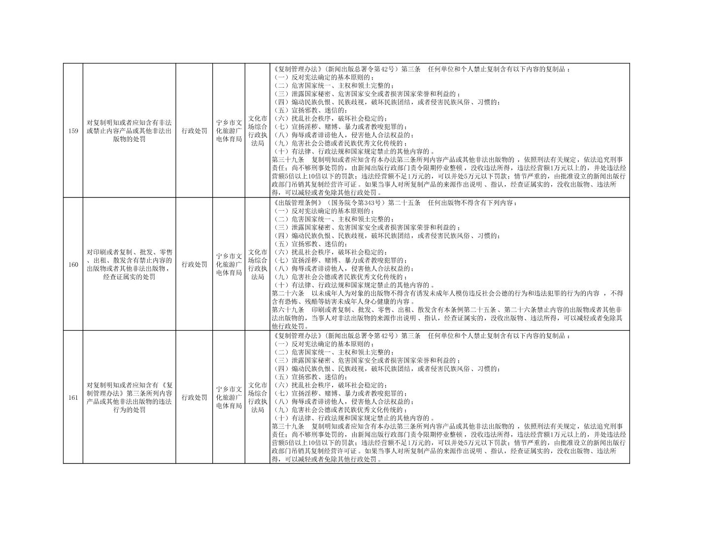 寧鄉市文化旅游廣電體育局行政執法事項目錄