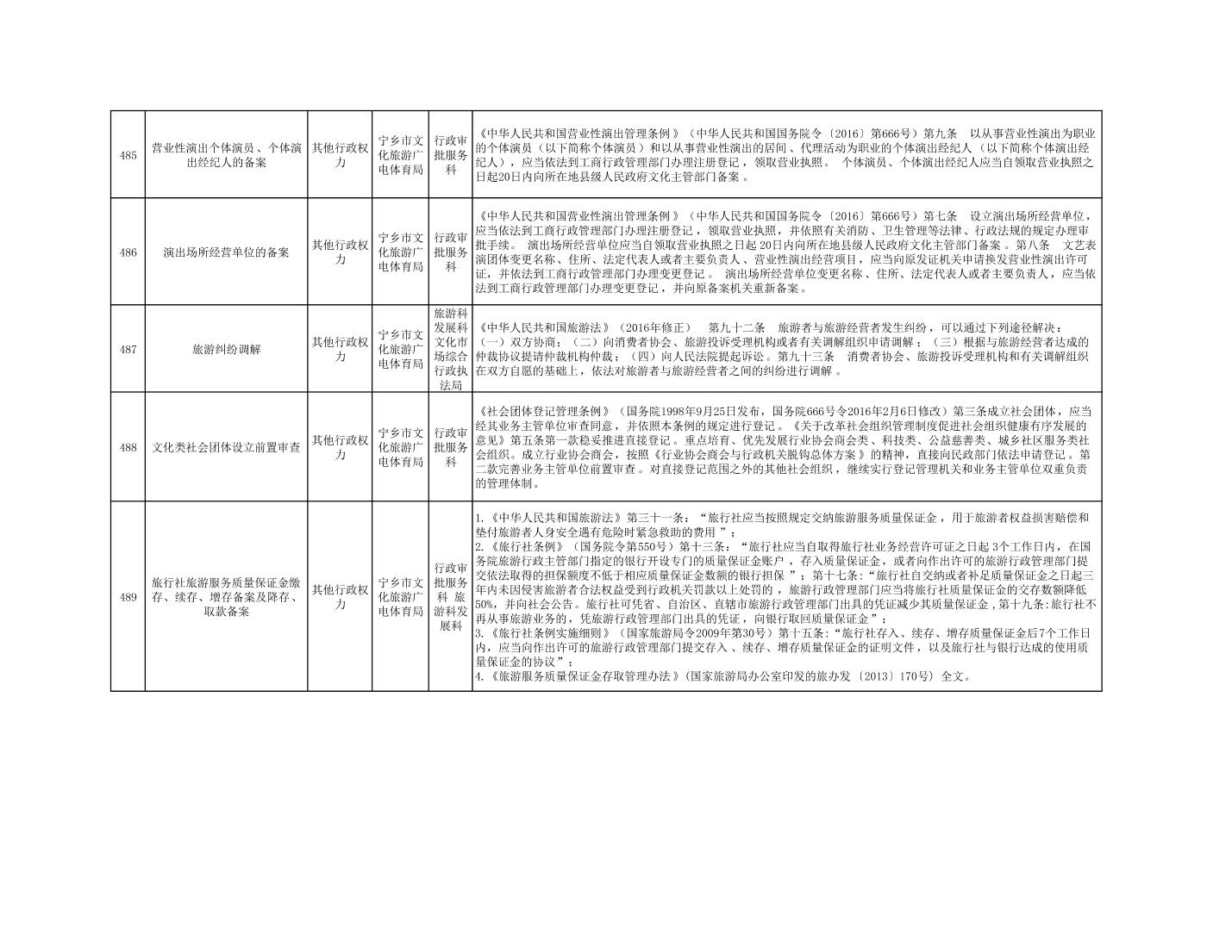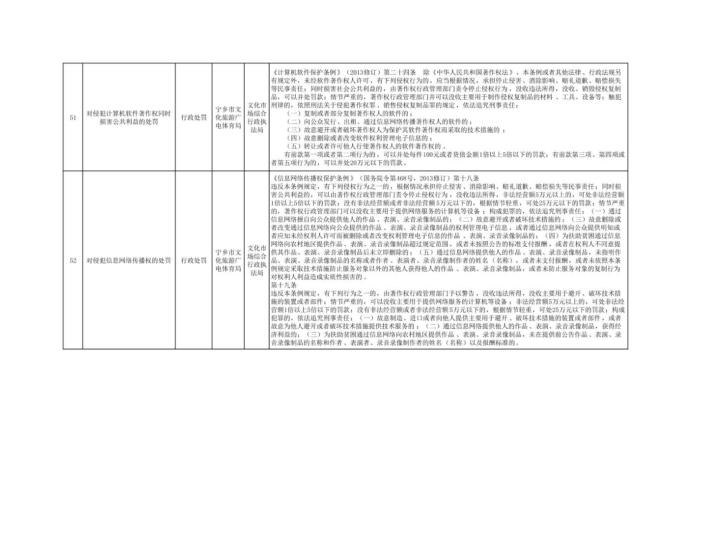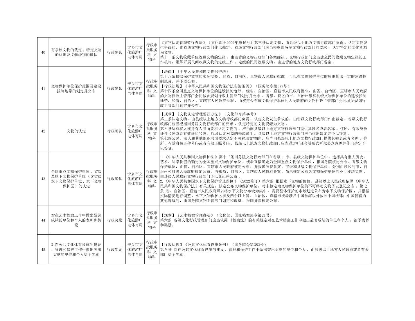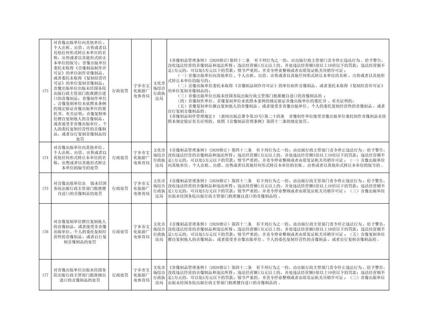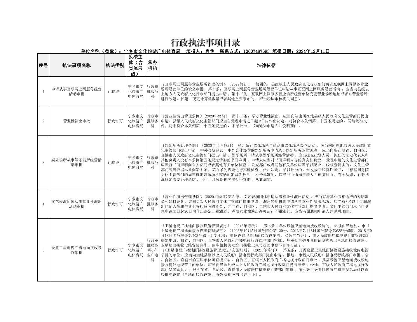 寧鄉市文化旅游廣電體育局行政執法事項目錄