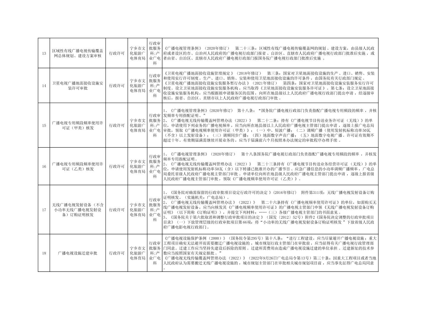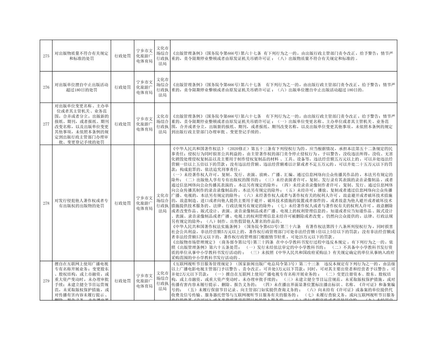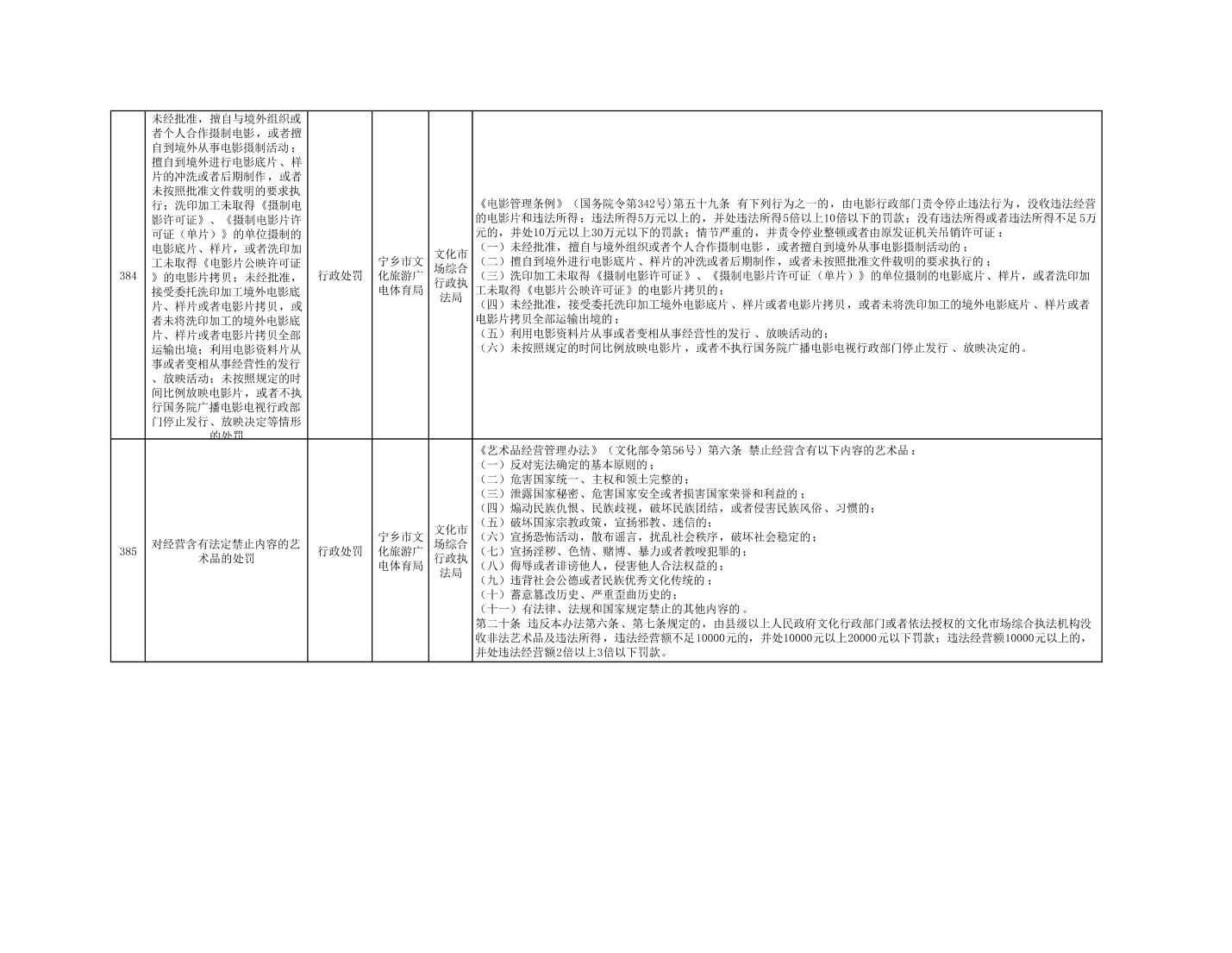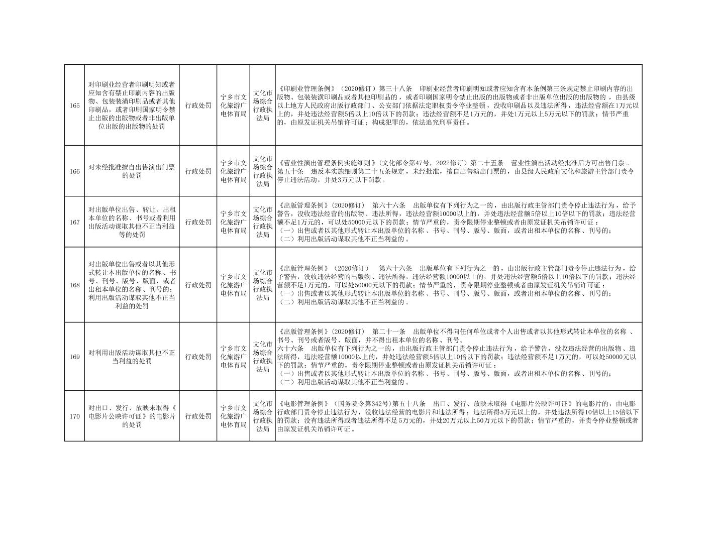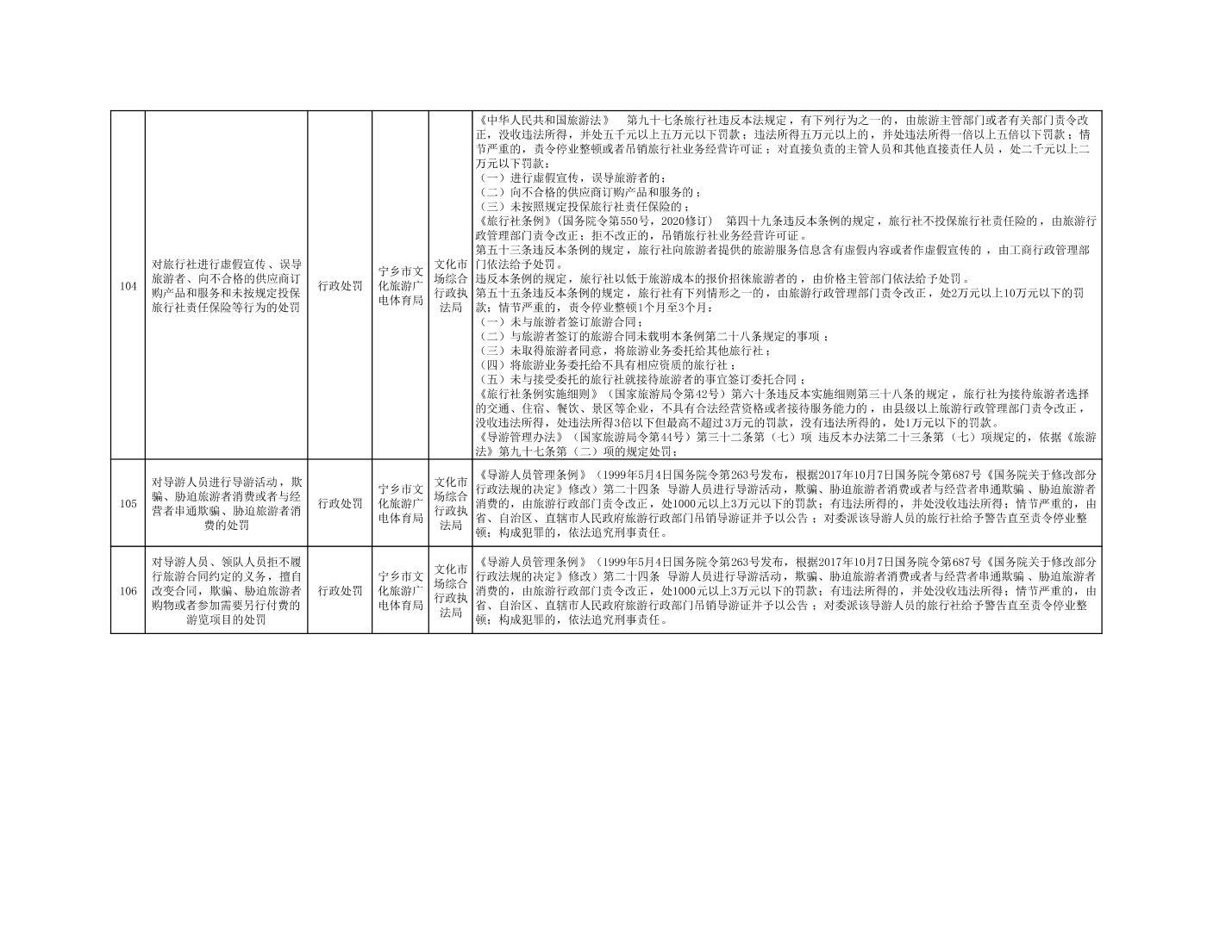 寧鄉市文化旅游廣電體育局行政執法事項目錄
