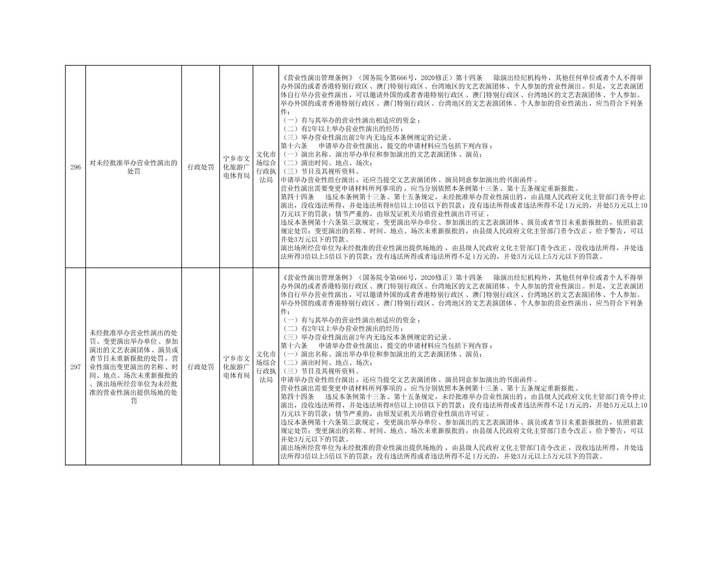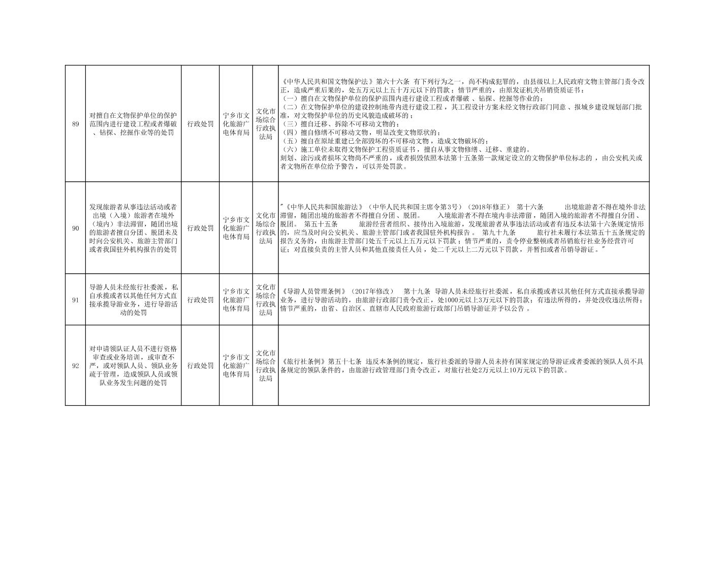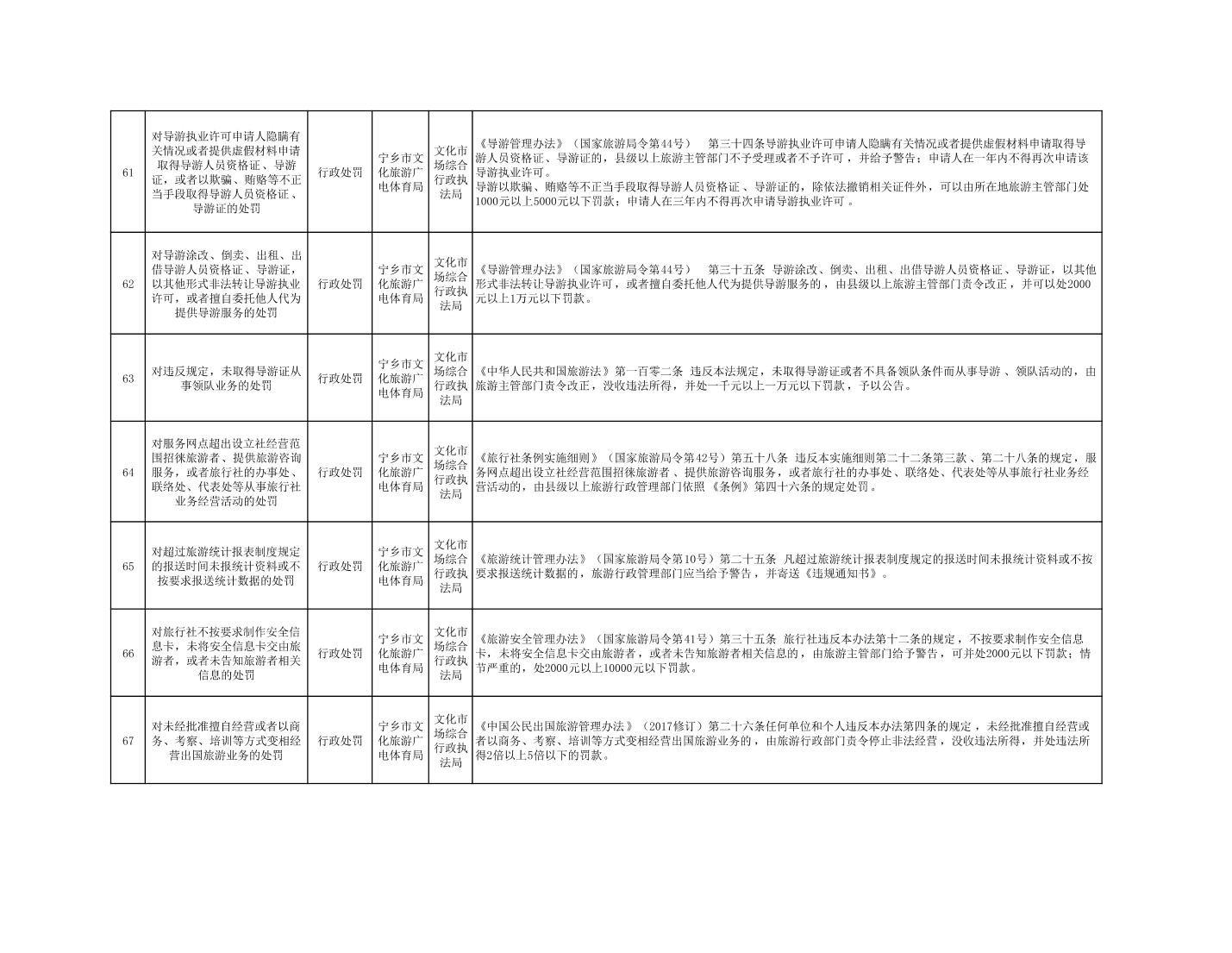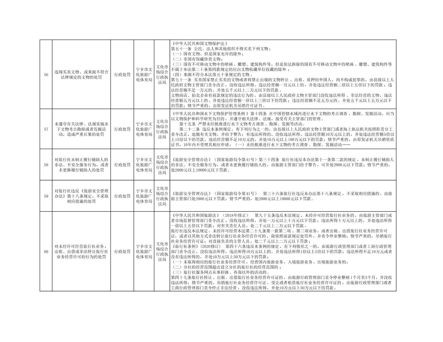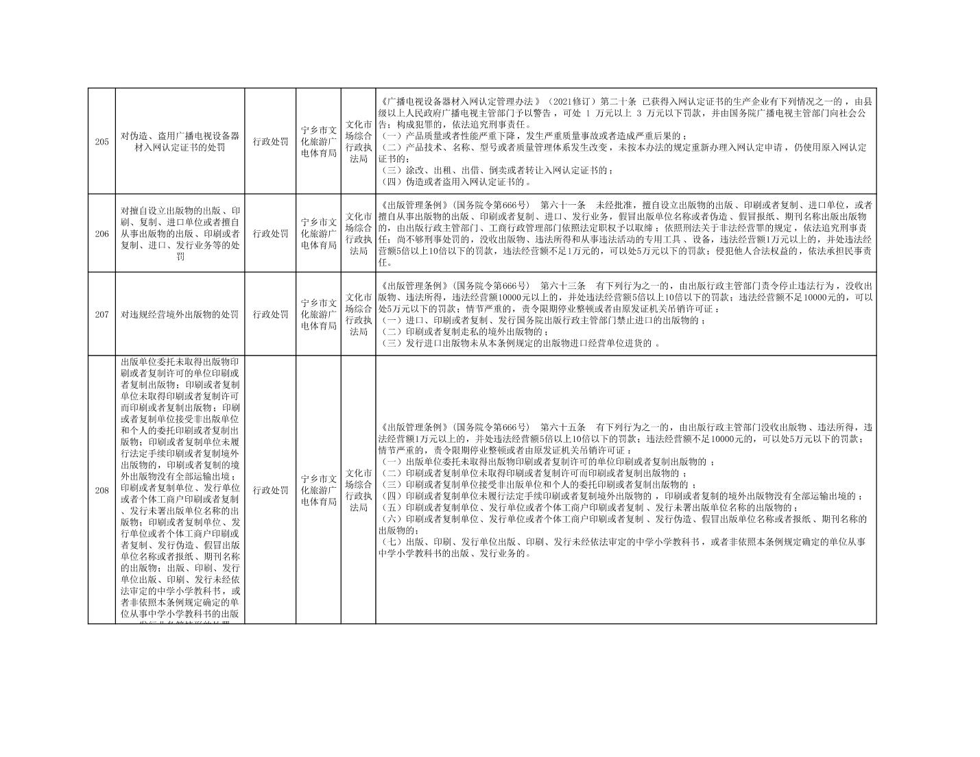寧鄉市文化旅游廣電體育局行政執法事項目錄