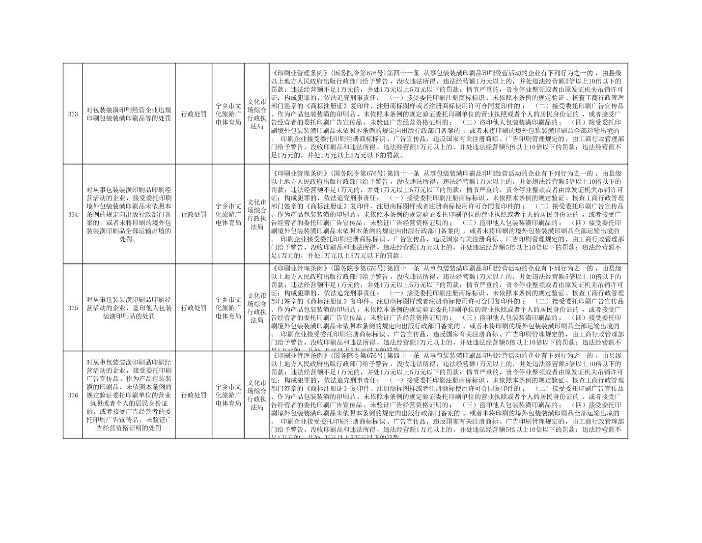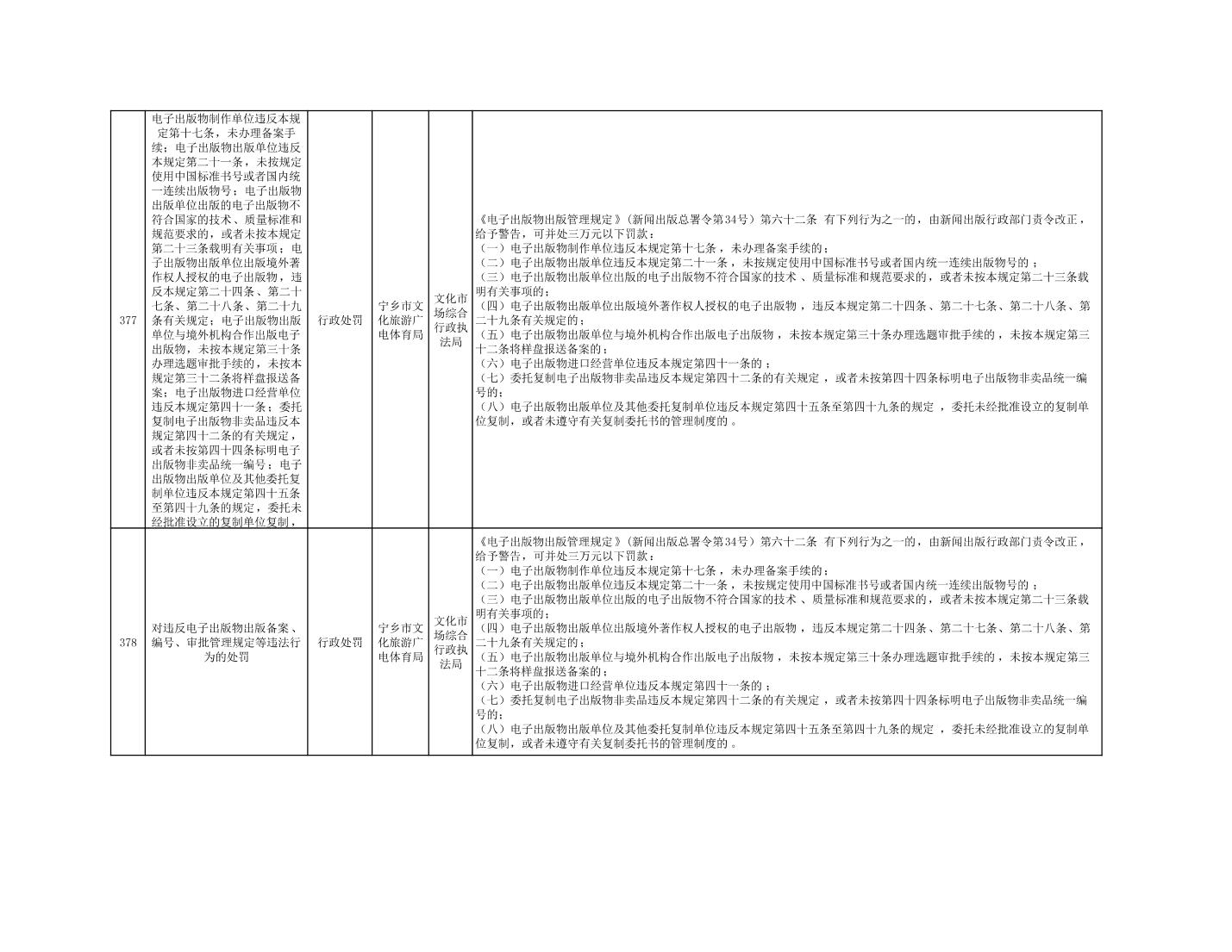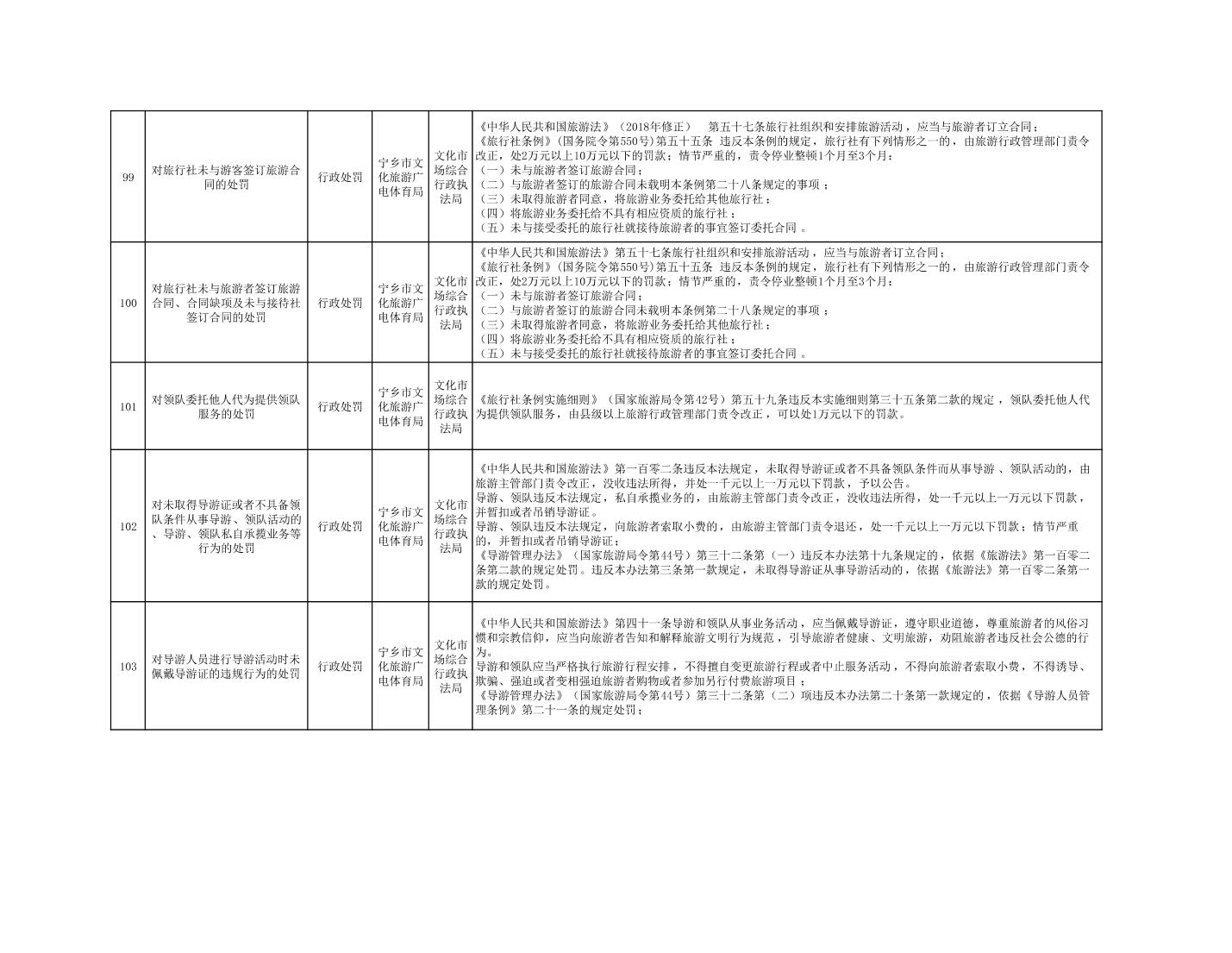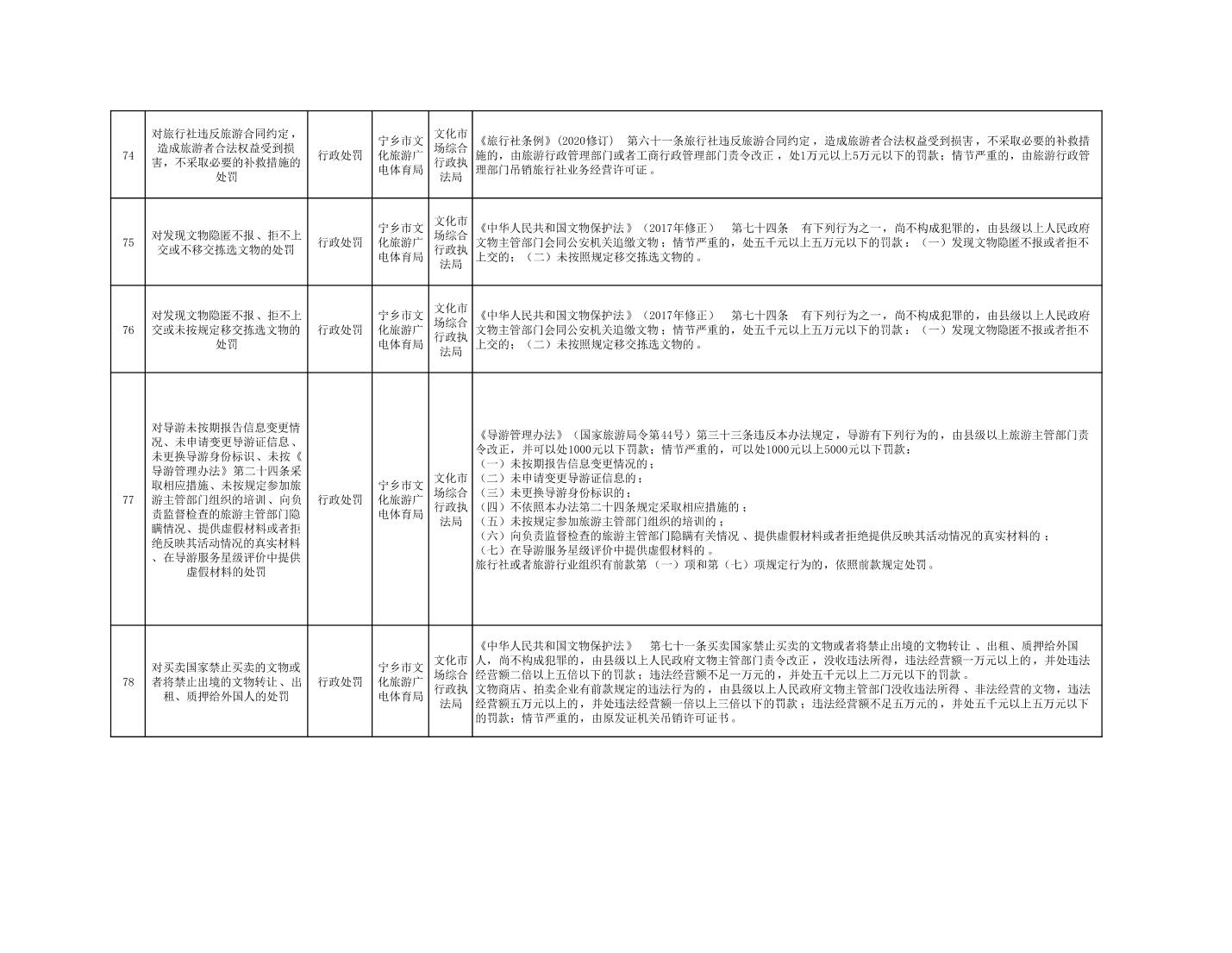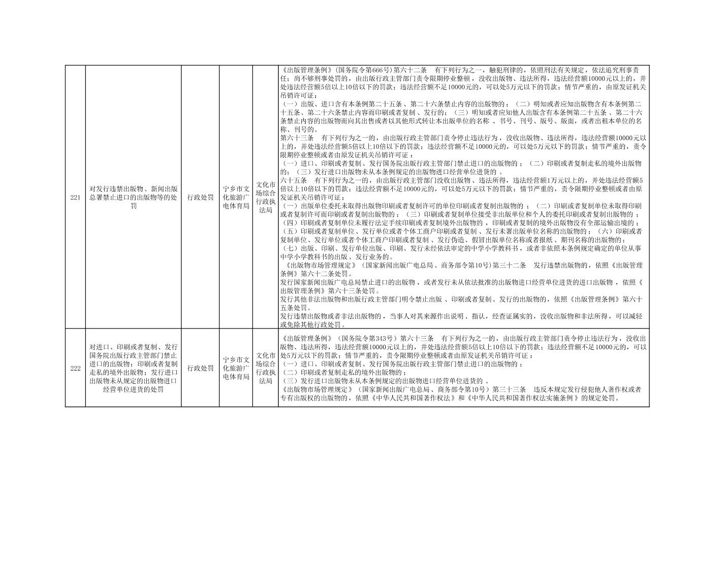 寧鄉市文化旅游廣電體育局行政執法事項目錄