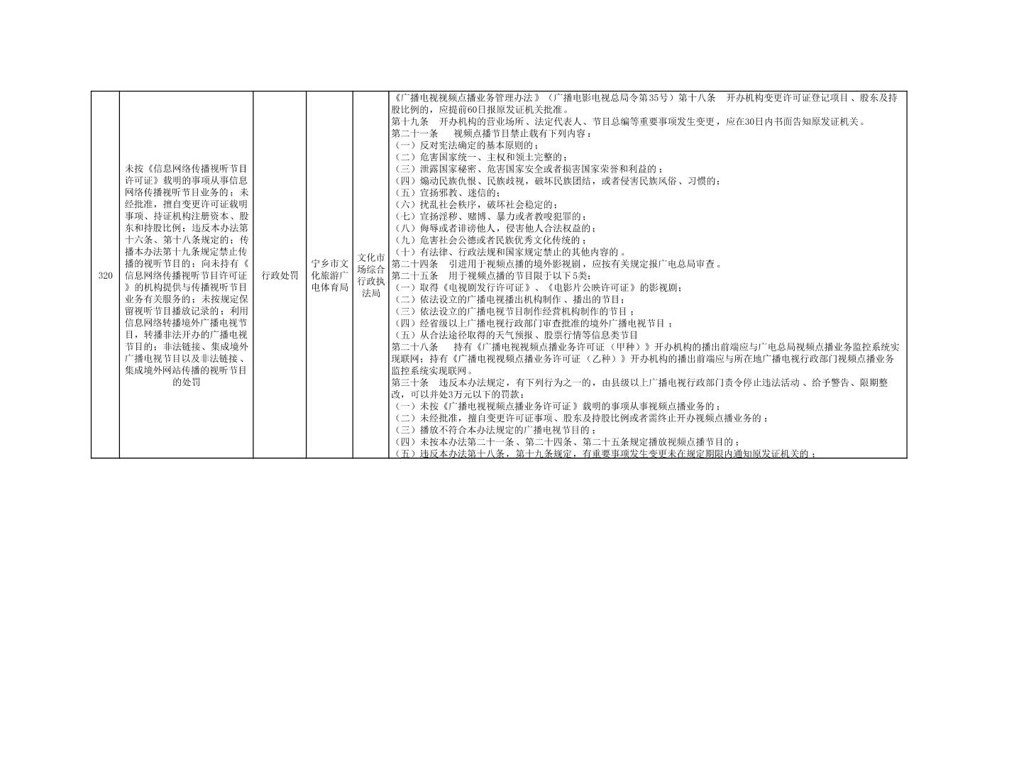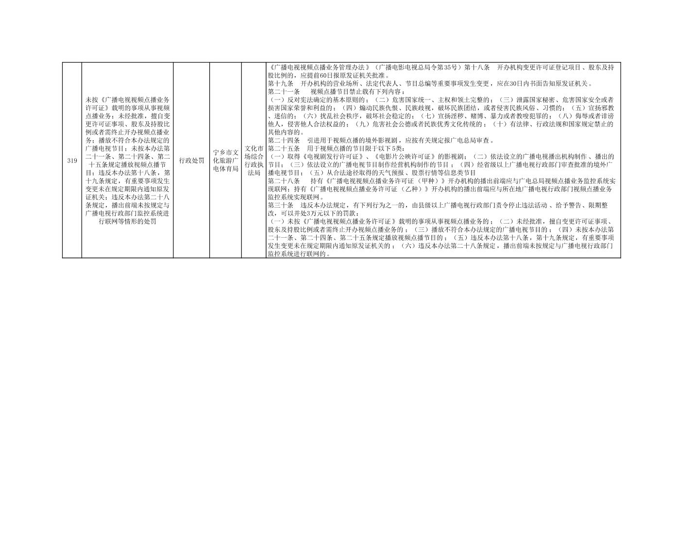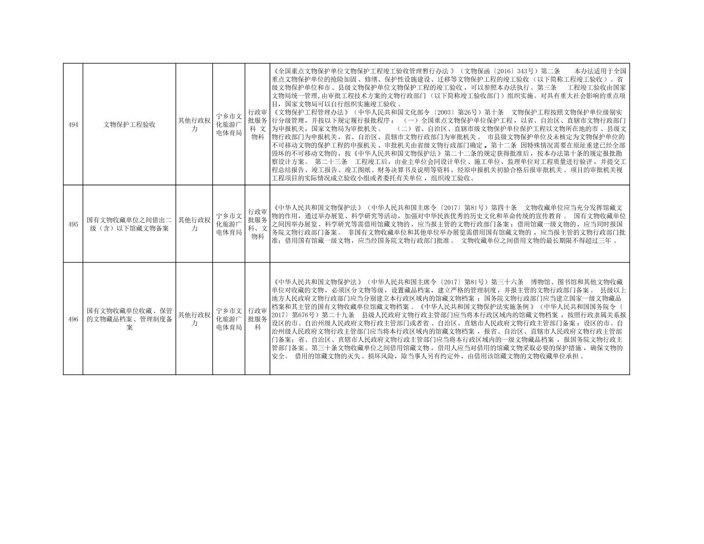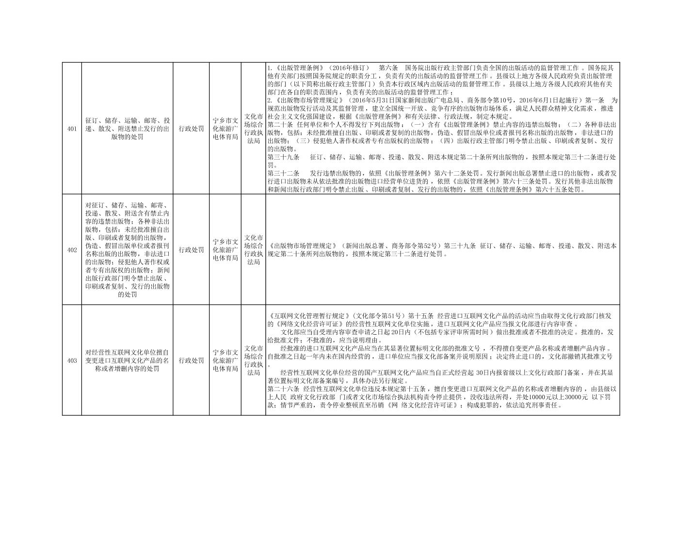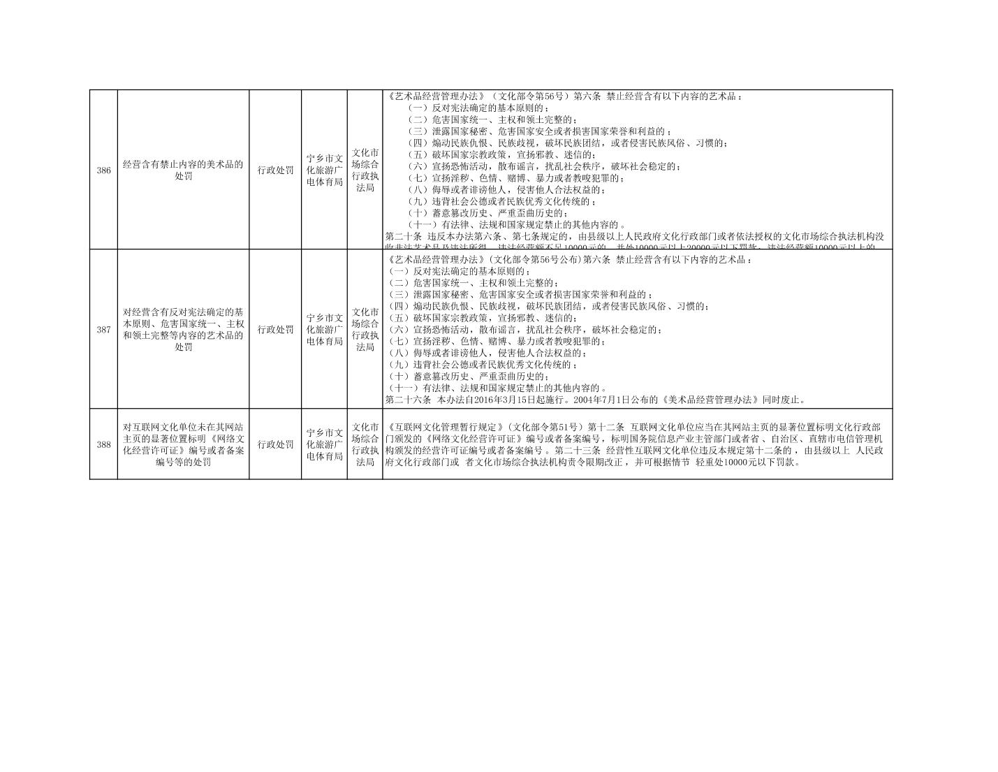 寧鄉市文化旅游廣電體育局行政執法事項目錄