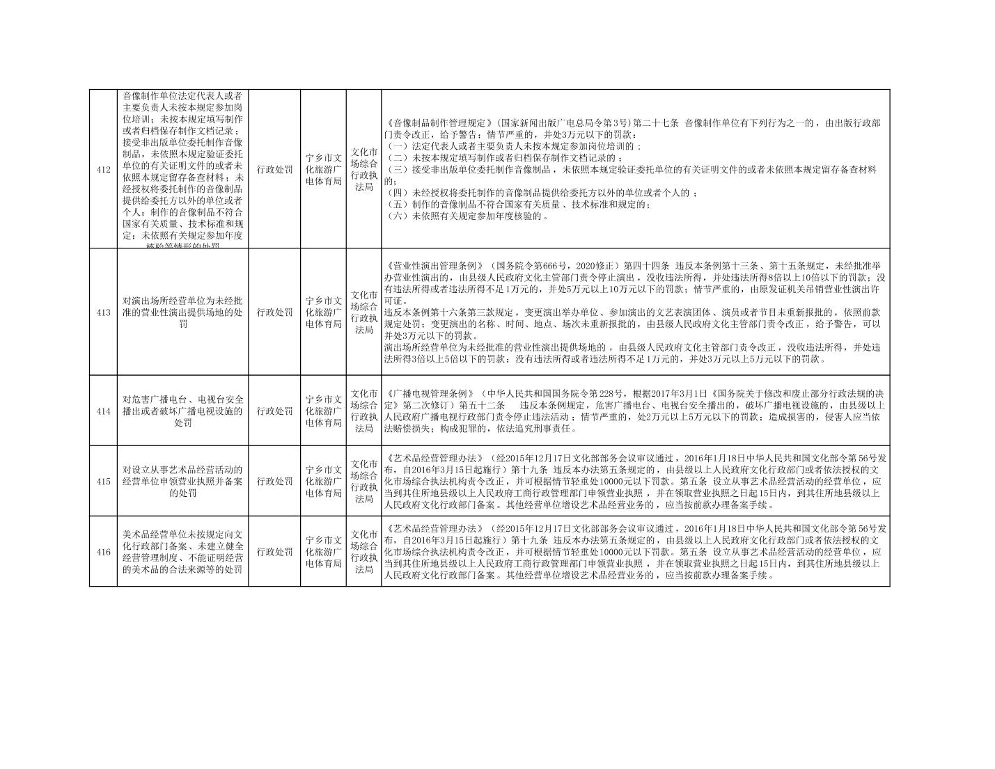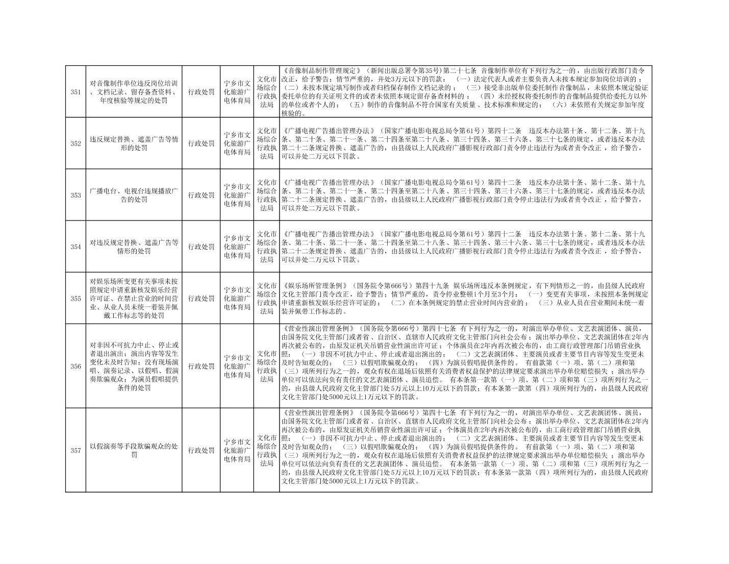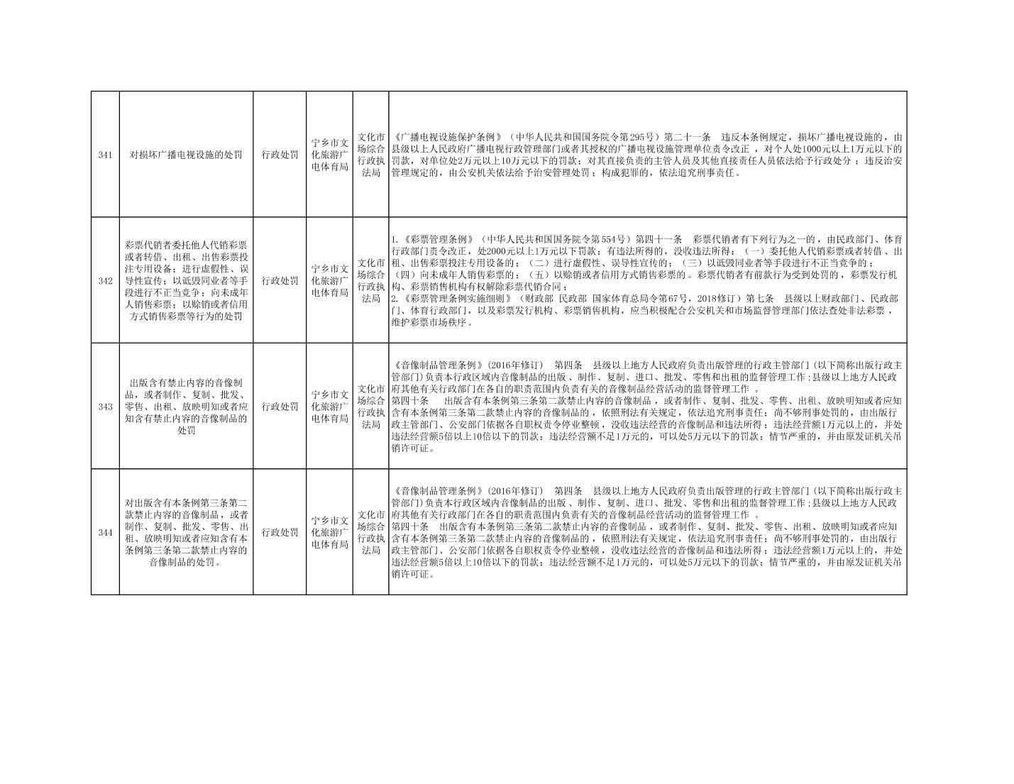 首頁 > 政務公開 > 部門信息公開目錄 > 政府工作部門 > 寧鄉市文化旅游廣電體育局 > 行政處罰決定