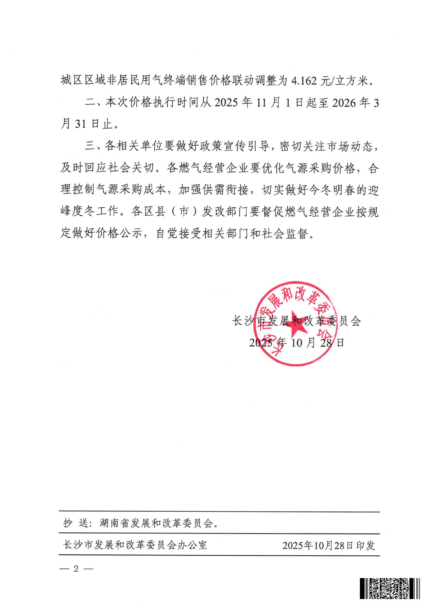 關于聯動調整非居民用氣終端銷售價格的通知