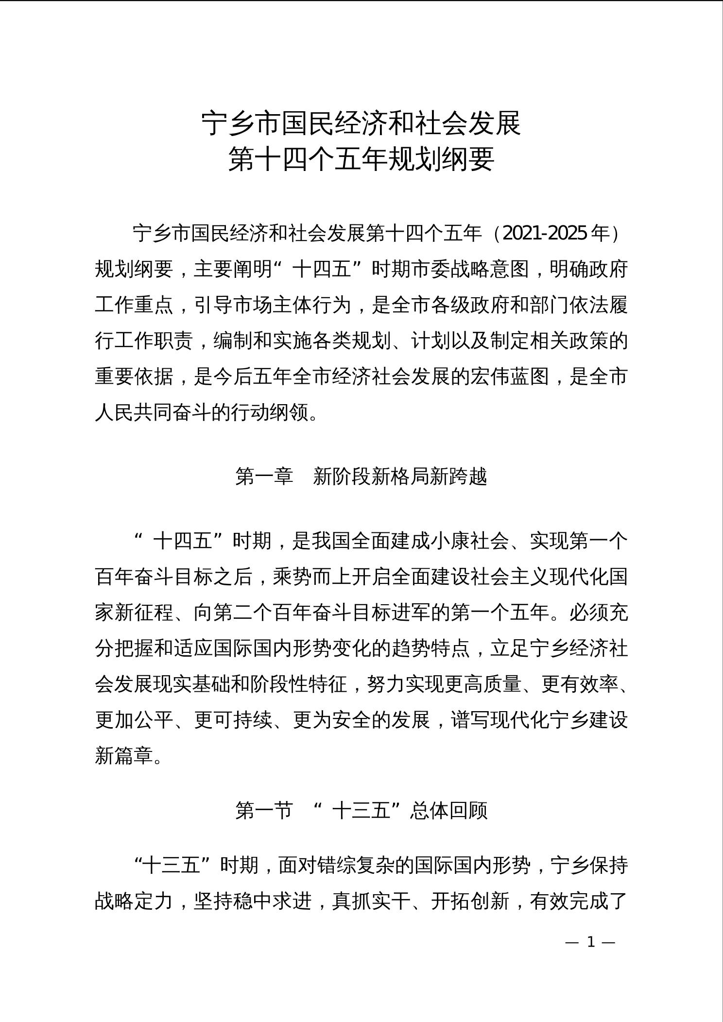 寧鄉市“十四五”規劃綱要(人大定稿)