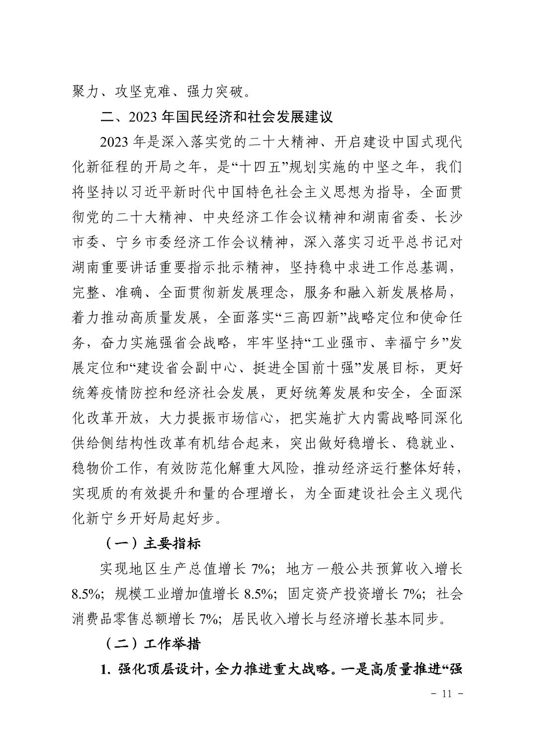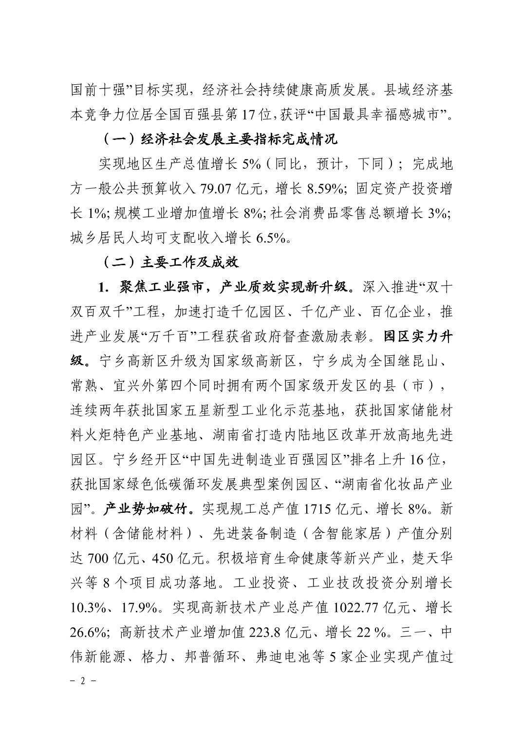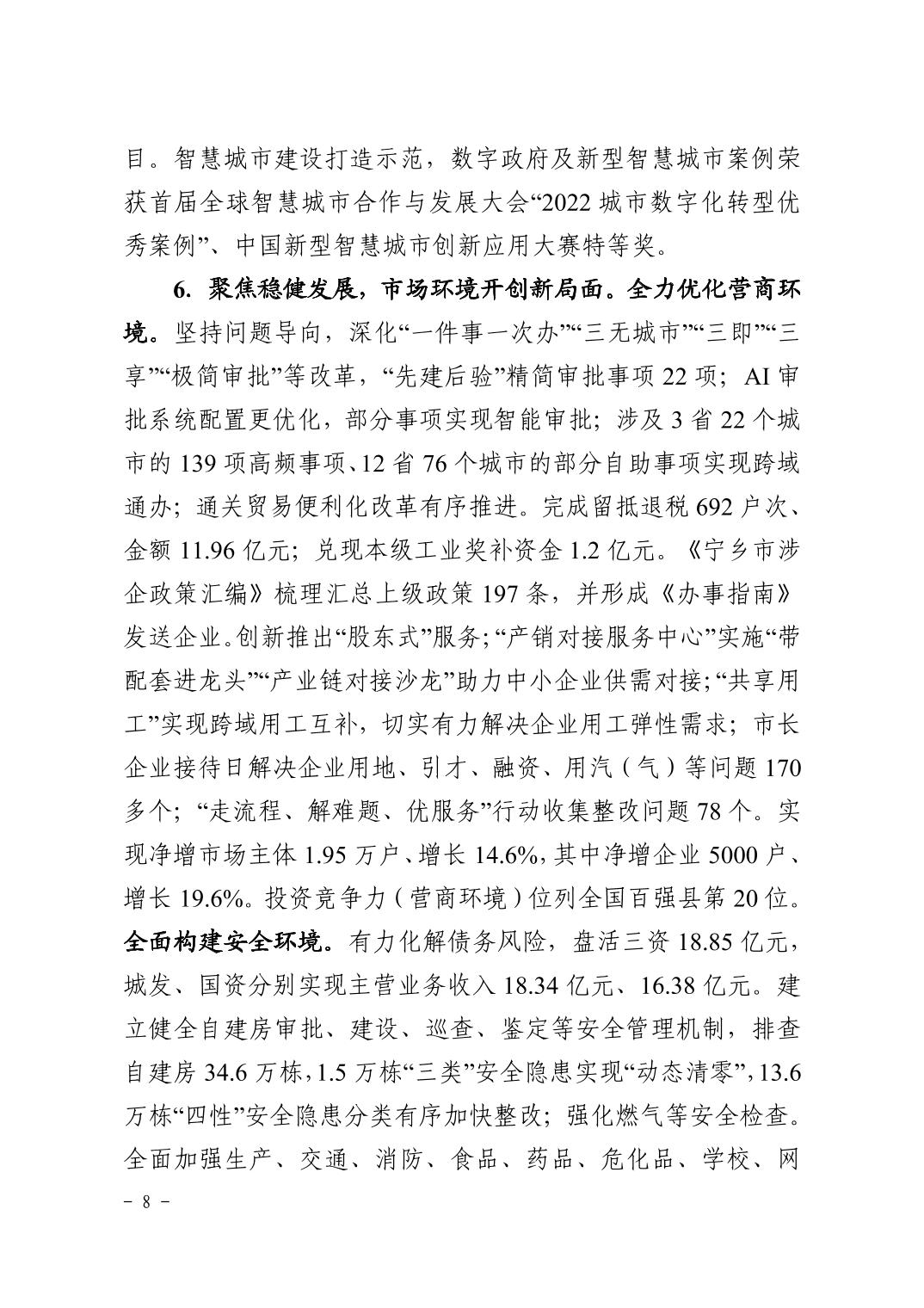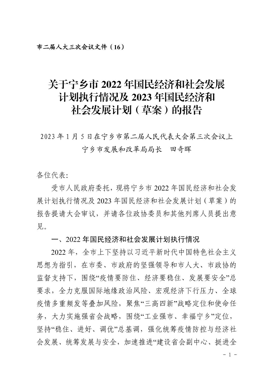 關于寧鄉市2022年國民經濟和社會發展計劃執行情況及2023年國民經濟和 社會發展計劃(草案)的報告