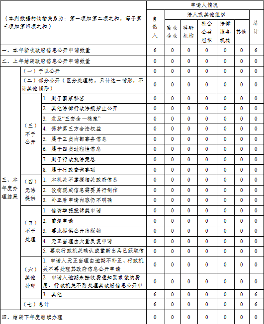 (二)依法申請(qǐng)公開(kāi)情況。2024年,我局共受理依申請(qǐng)公開(kāi)辦件6件,均在規(guī)定時(shí)間內(nèi)按要求辦結(jié)。2024年我局認(rèn)真按照規(guī)定公開(kāi)政府信息,未收取涉及政府信息申請(qǐng)的任何費(fèi)用。