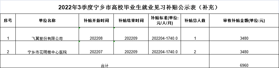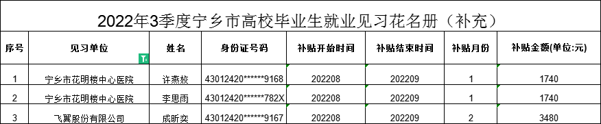 關于2022年3季度寧鄉市高校畢業生就業見習補貼(補充)情況的公示