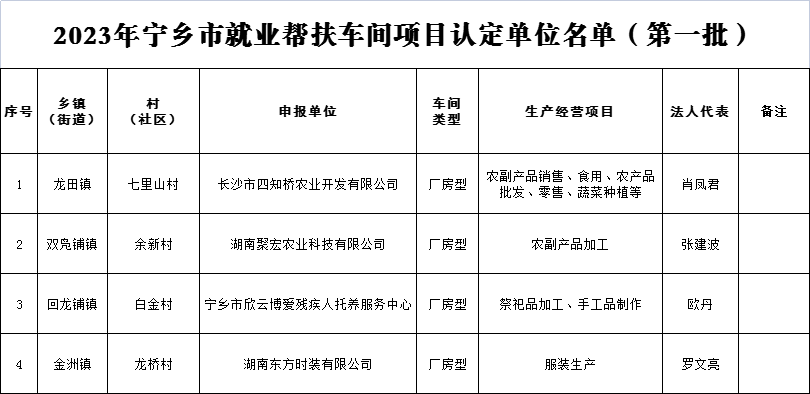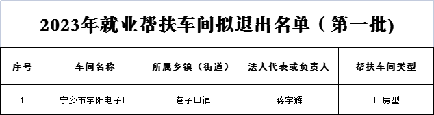 關(guān)于對(duì)2023年寧鄉(xiāng)市第一批就業(yè)幫扶車間項(xiàng)目認(rèn)定及退出幫扶車間名單的公示