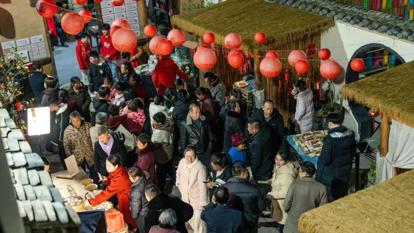 線下活動現場熱鬧非凡,四位年輕人組成的“非遺氣氛組”成為全場焦點,他們身著紅色寧鄉LOGO服飾,手持鑼鼓,以一聲清脆的鑼響拉開非遺“帶看游街”的序幕,伴隨著戲歌《寧鄉吟》的火爆旋律,手捧金元寶,提著紅燈籠,齊喊“寧鄉非遺”的號子,在三位帶貨主播的引導下,帶領市民們穿梭于非遺展區,近距離感受寧鄉非遺文化的獨特魅力;帥氣主播和幾位零零后歌手帶來的《稻香》等國風歌曲,更是讓屏幕前觀眾直呼“再來一首”;現場篝火宴、猜燈謎、DJ熱賣秀、國潮音樂吧、圍爐煮茶等活動吸引了附近村民參與,大家沉浸在歡樂祥和的節日氛圍中。