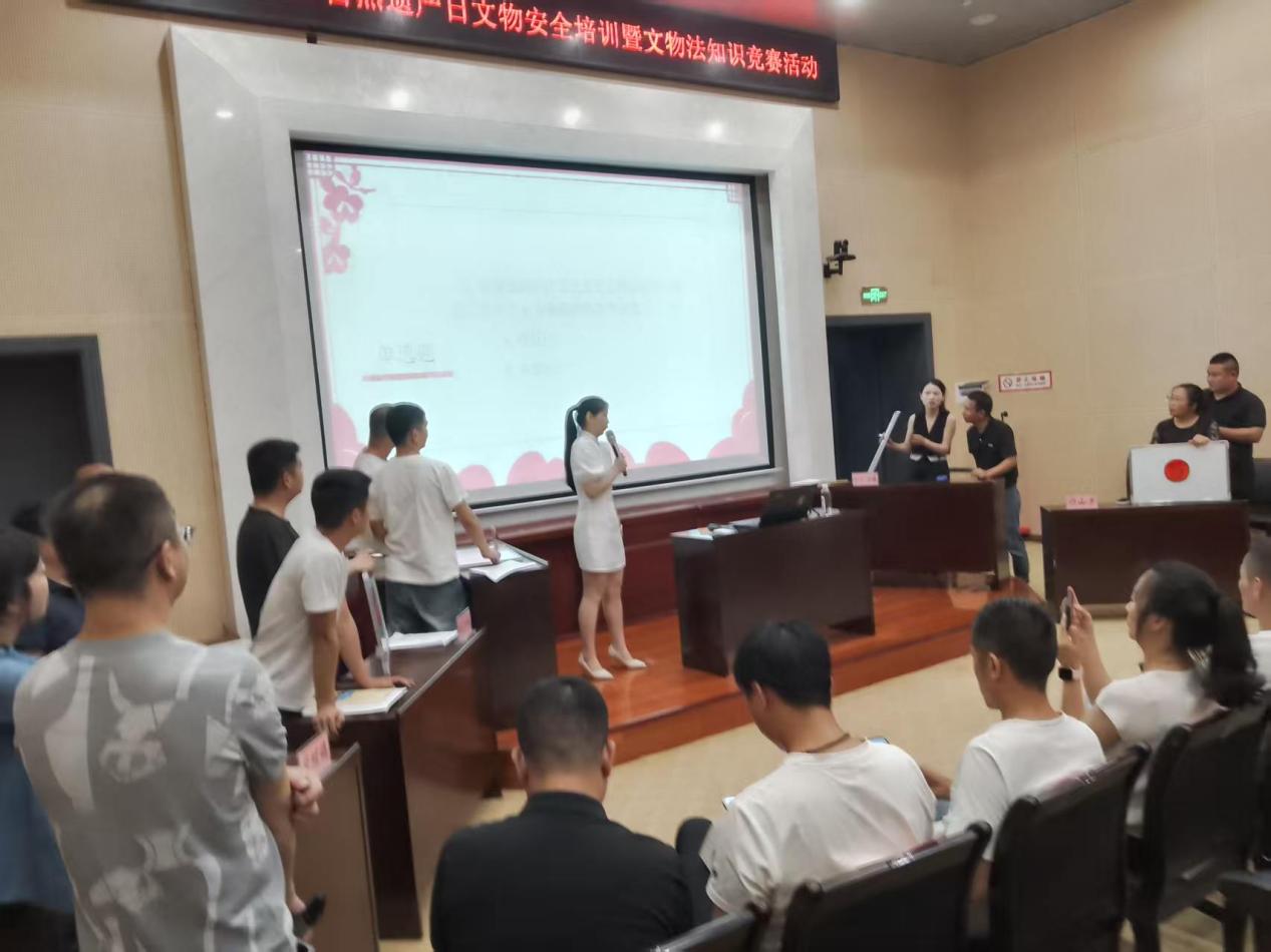 作為此次活動的亮點環節,“新文物法知識競答”將現場氣推向高潮。活動以鄉鎮為單位,組建6個參賽小組,每組由2名隊員展開激烈角逐。此外,現場還特別設置互動答題環節,吸引眾多參與者踴躍搶答。參賽者在答題過程中,對新文物保護法知識有了更為深入的理解與掌握,真正實現了“以競促學、以學促行”,有力推動了文物保護意識在基層的廣泛傳播與提升。