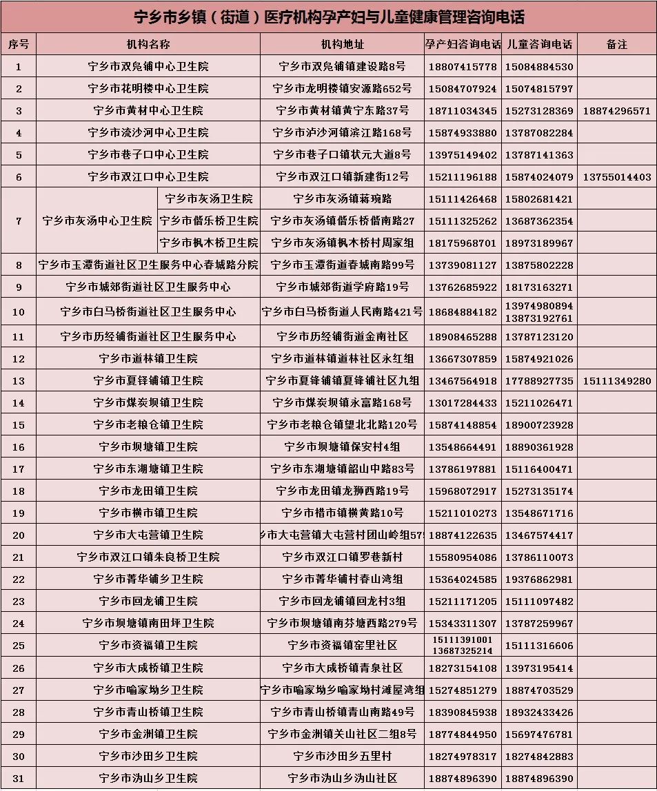 最新寧鄉市孕產婦和兒童健康服務咨詢熱線