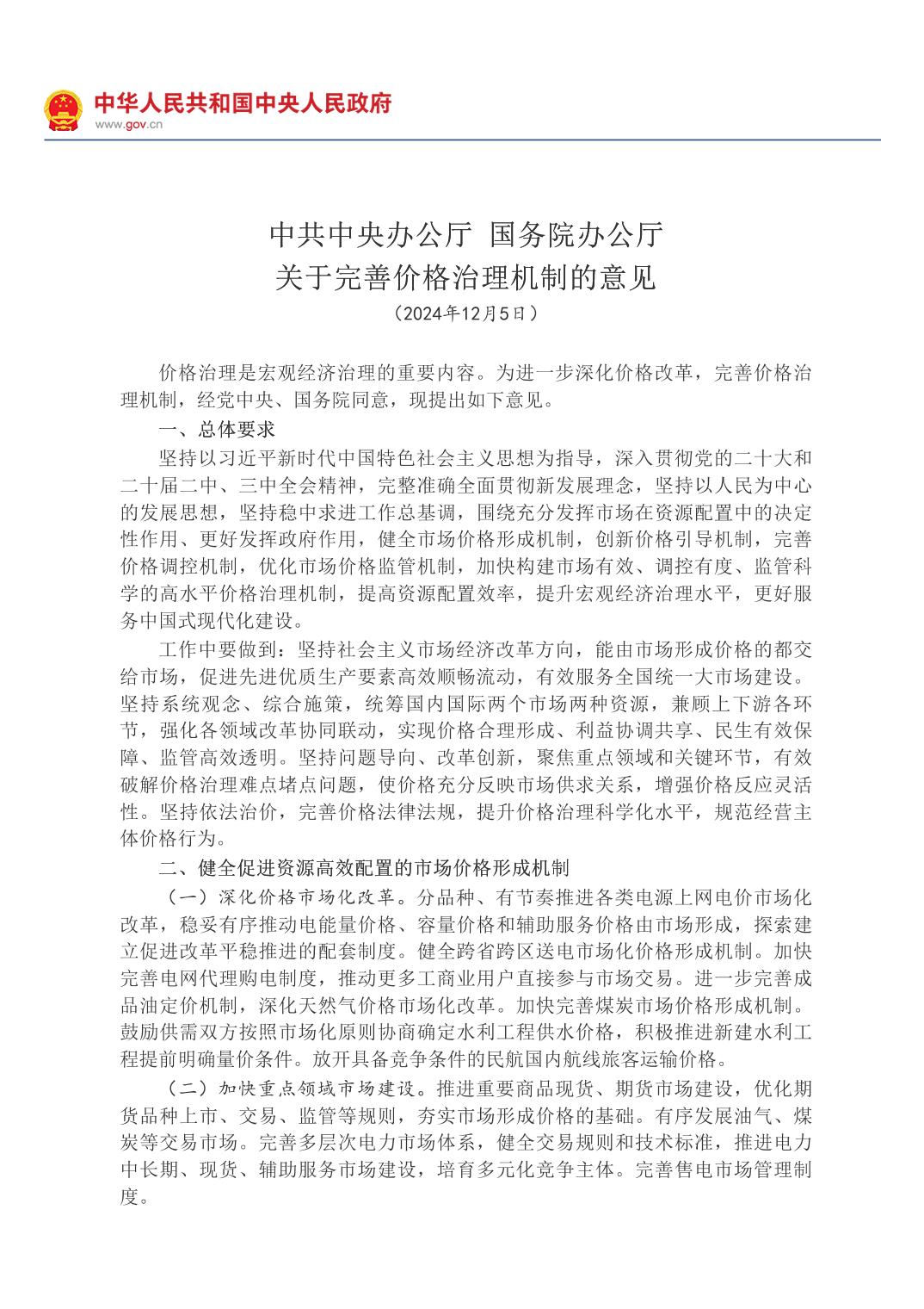 中共中央辦公廳 國(guó)務(wù)院辦公廳關(guān)于完善價(jià)格治理機(jī)制的意見(jiàn)