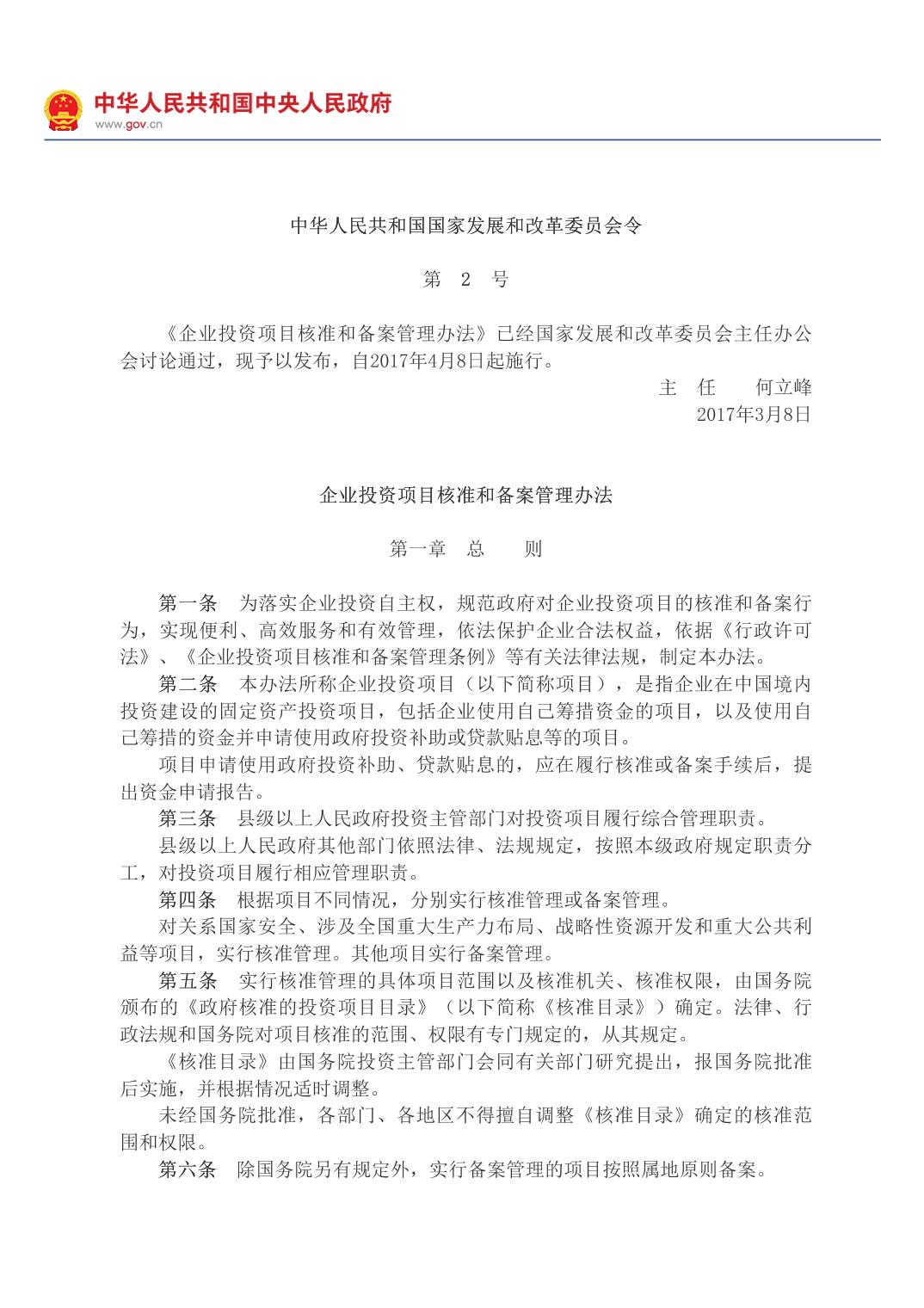 企業(yè)投資項(xiàng)目核準(zhǔn)和備案管理辦法