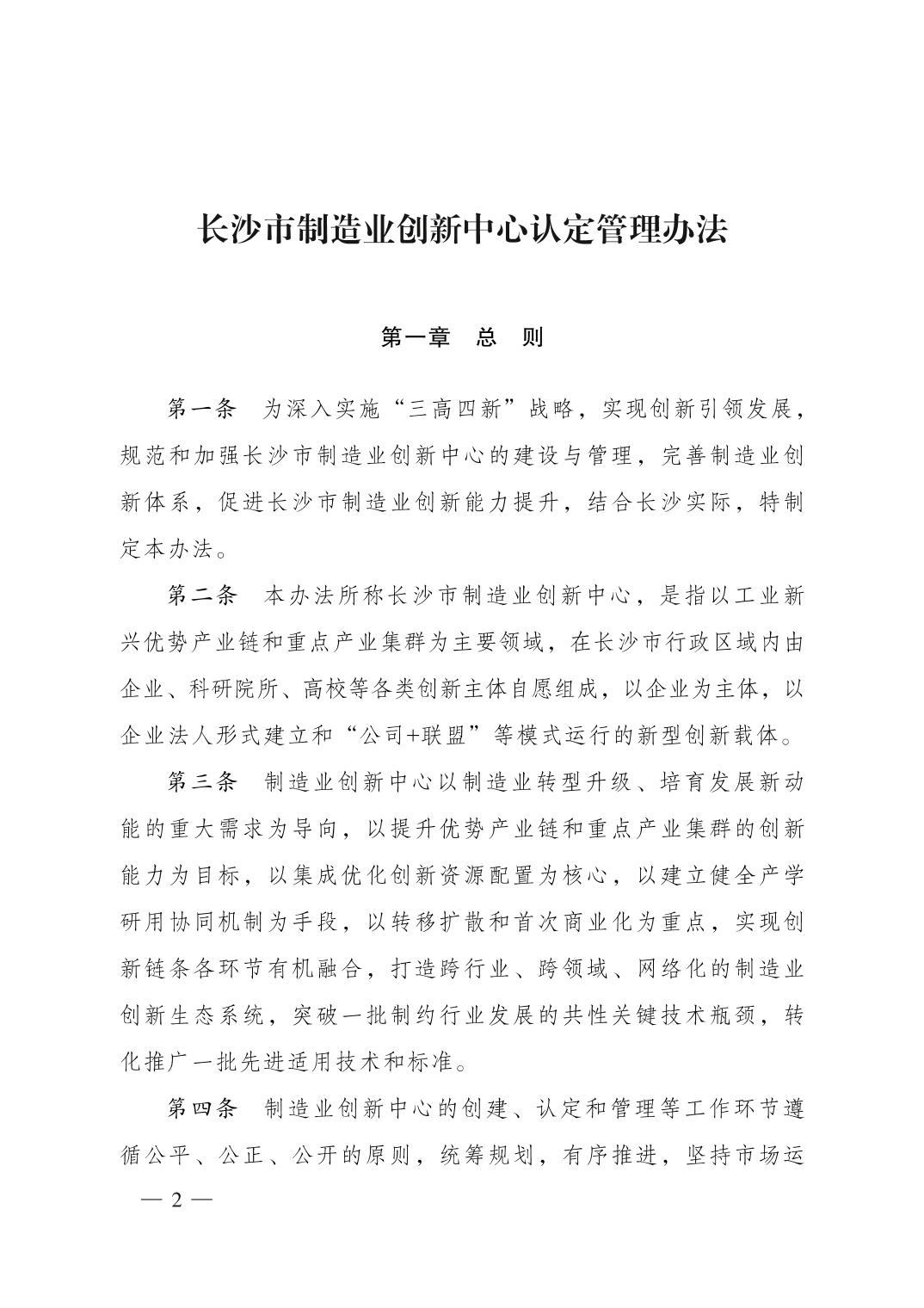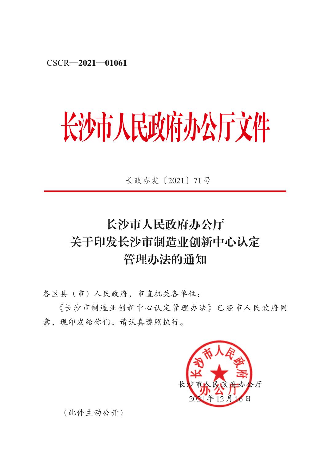關(guān)于印發(fā)長沙市制造業(yè)創(chuàng)新中心認(rèn)定管理辦法