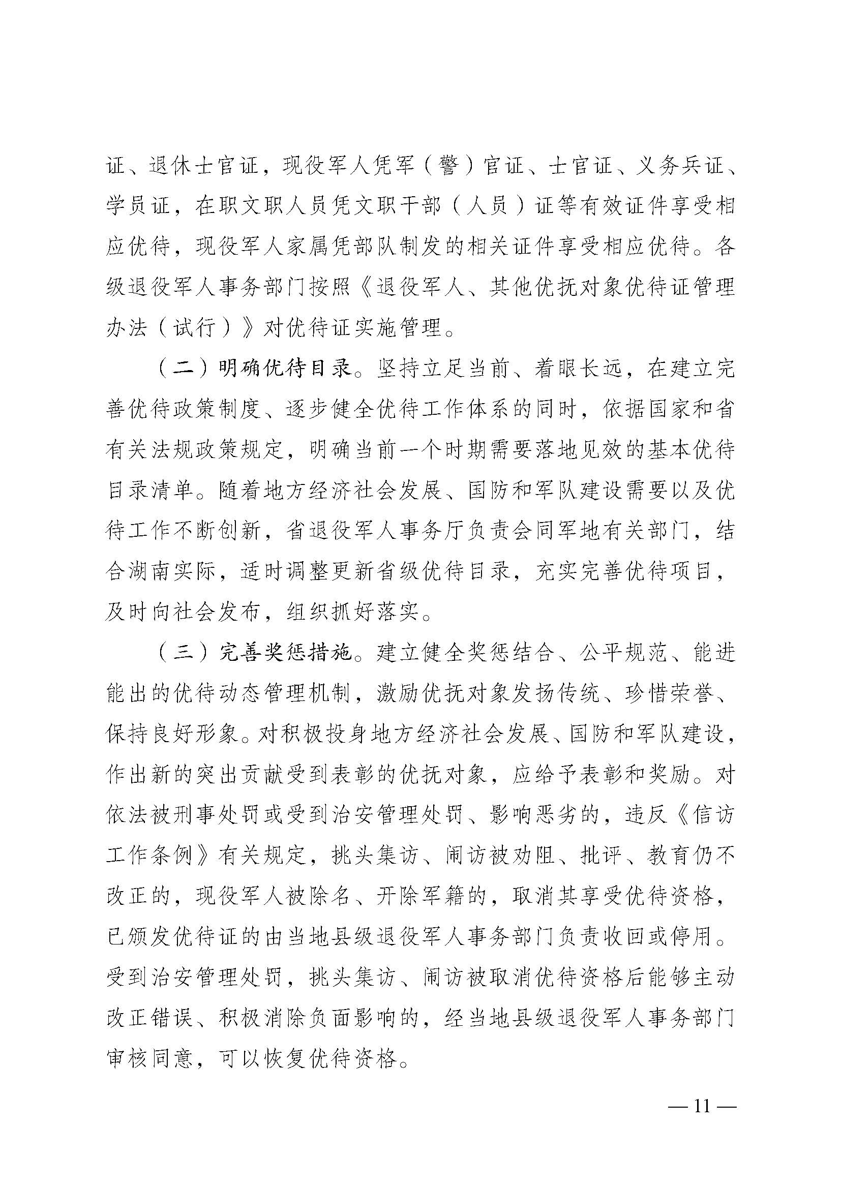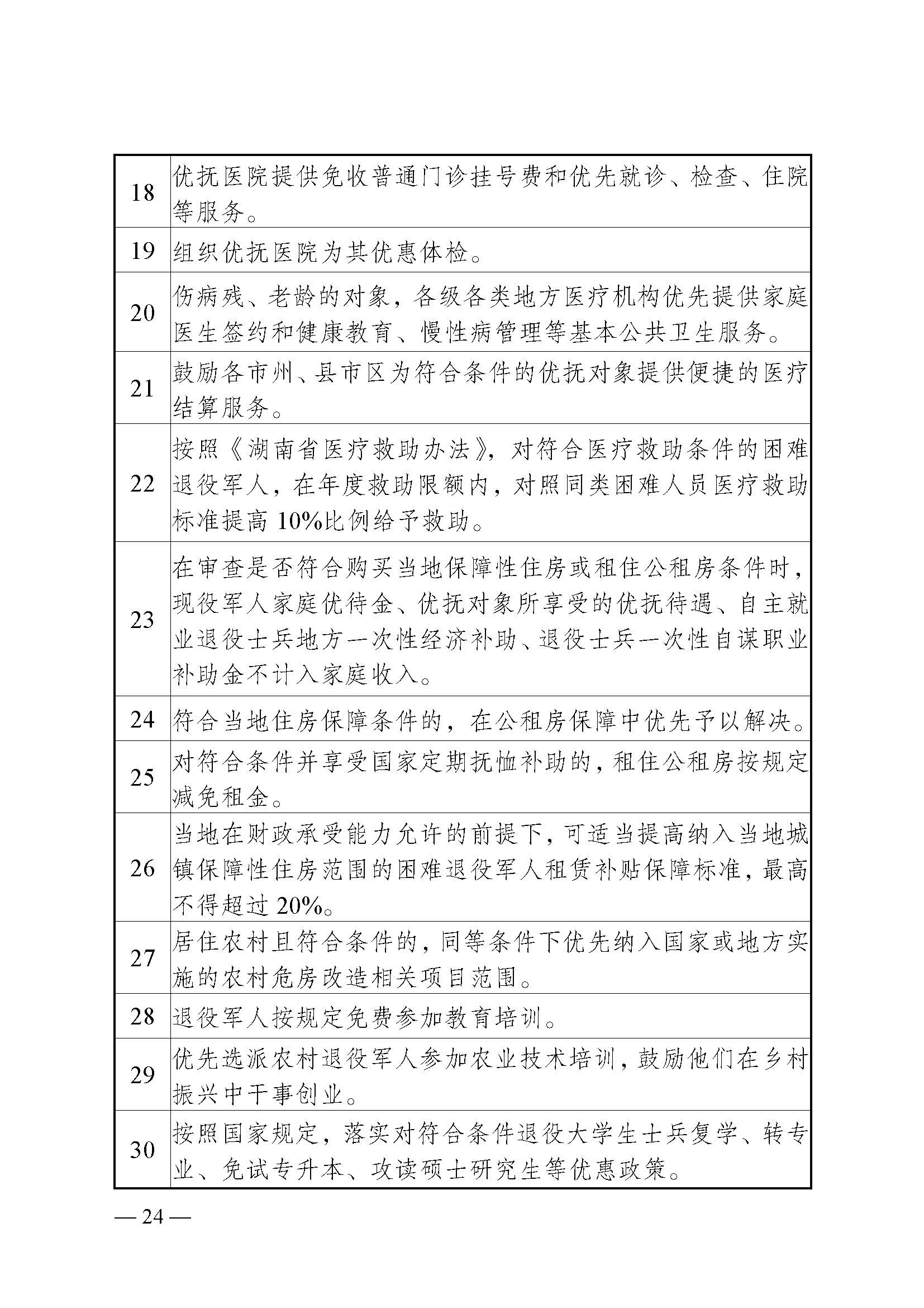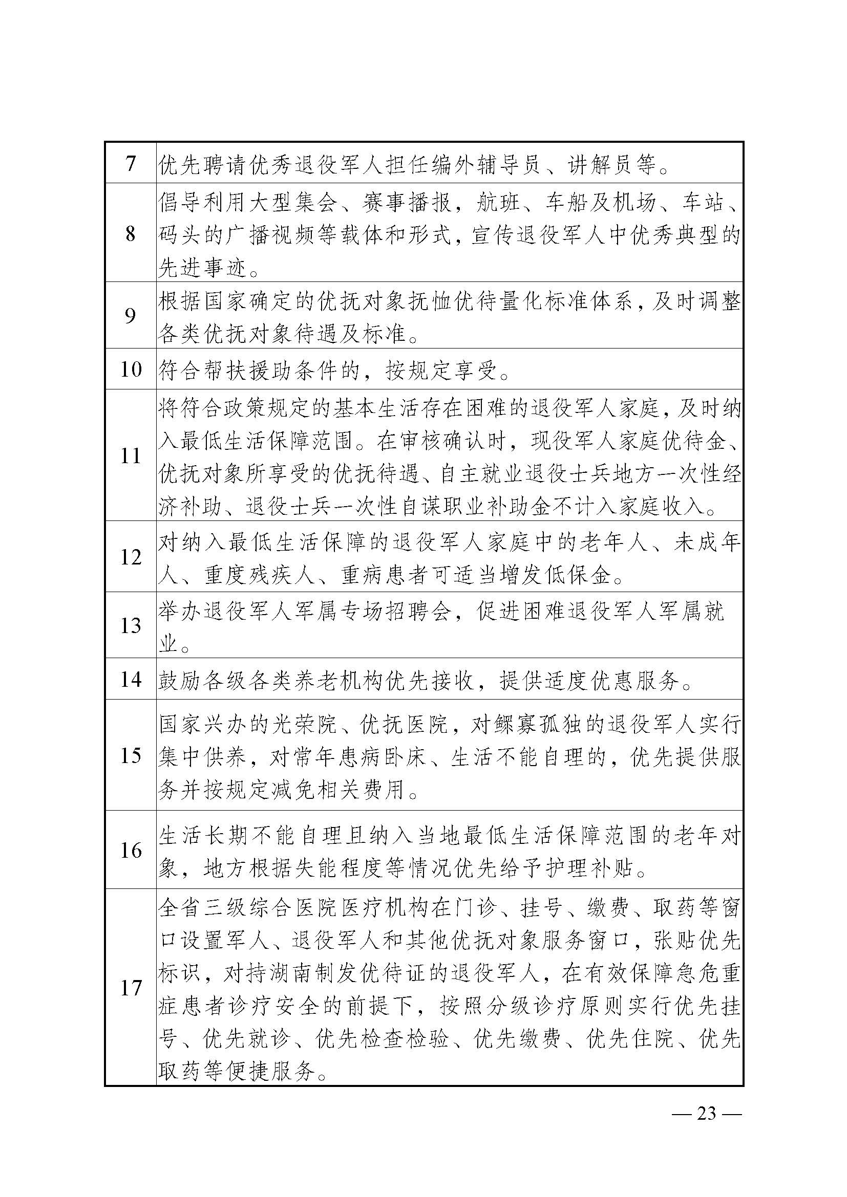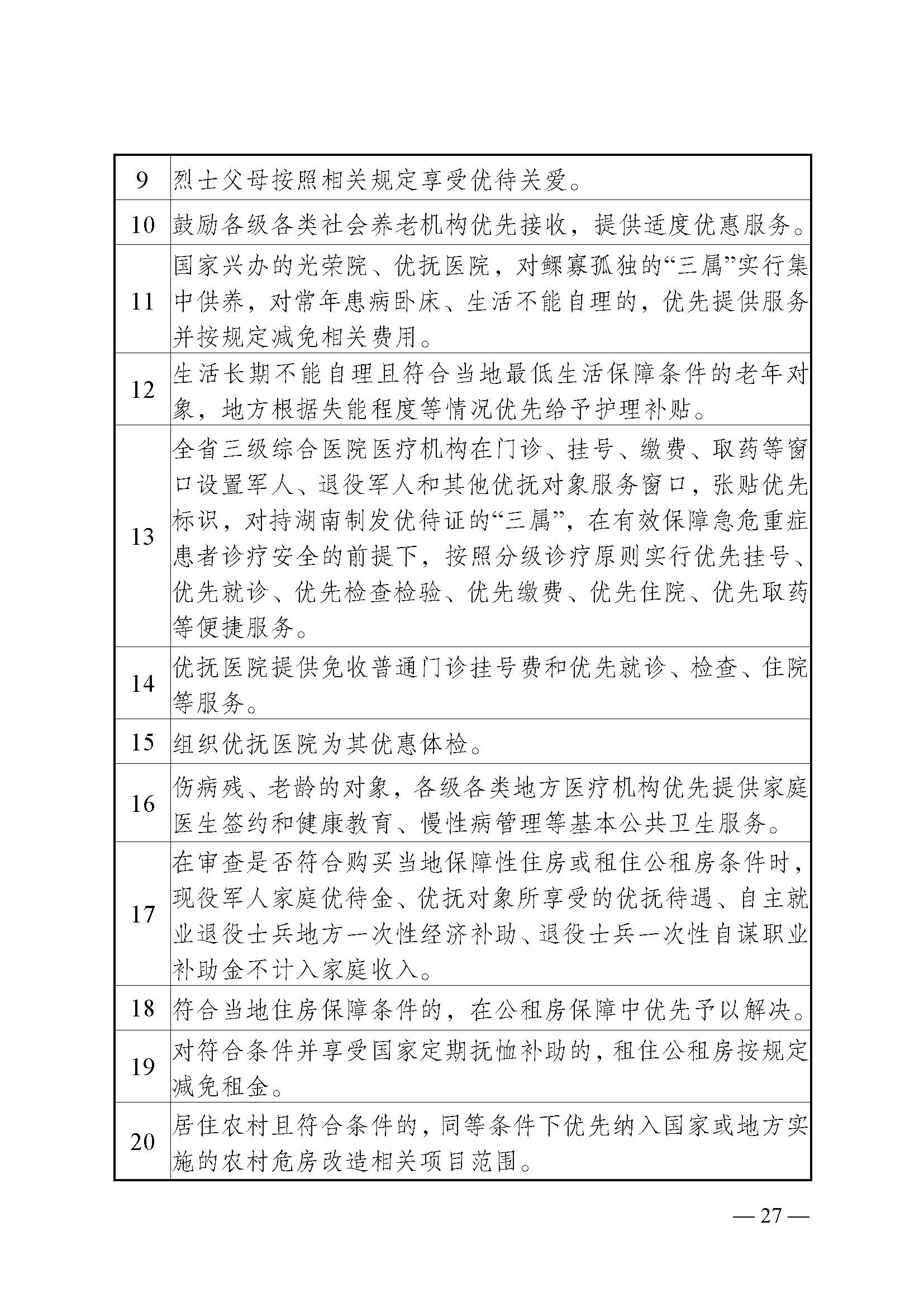 湖南省退役軍人事務廳等24部門關于印發《湖南省加強軍人軍屬、退役軍人和其他優撫對象優待工作的實施意見》的通知