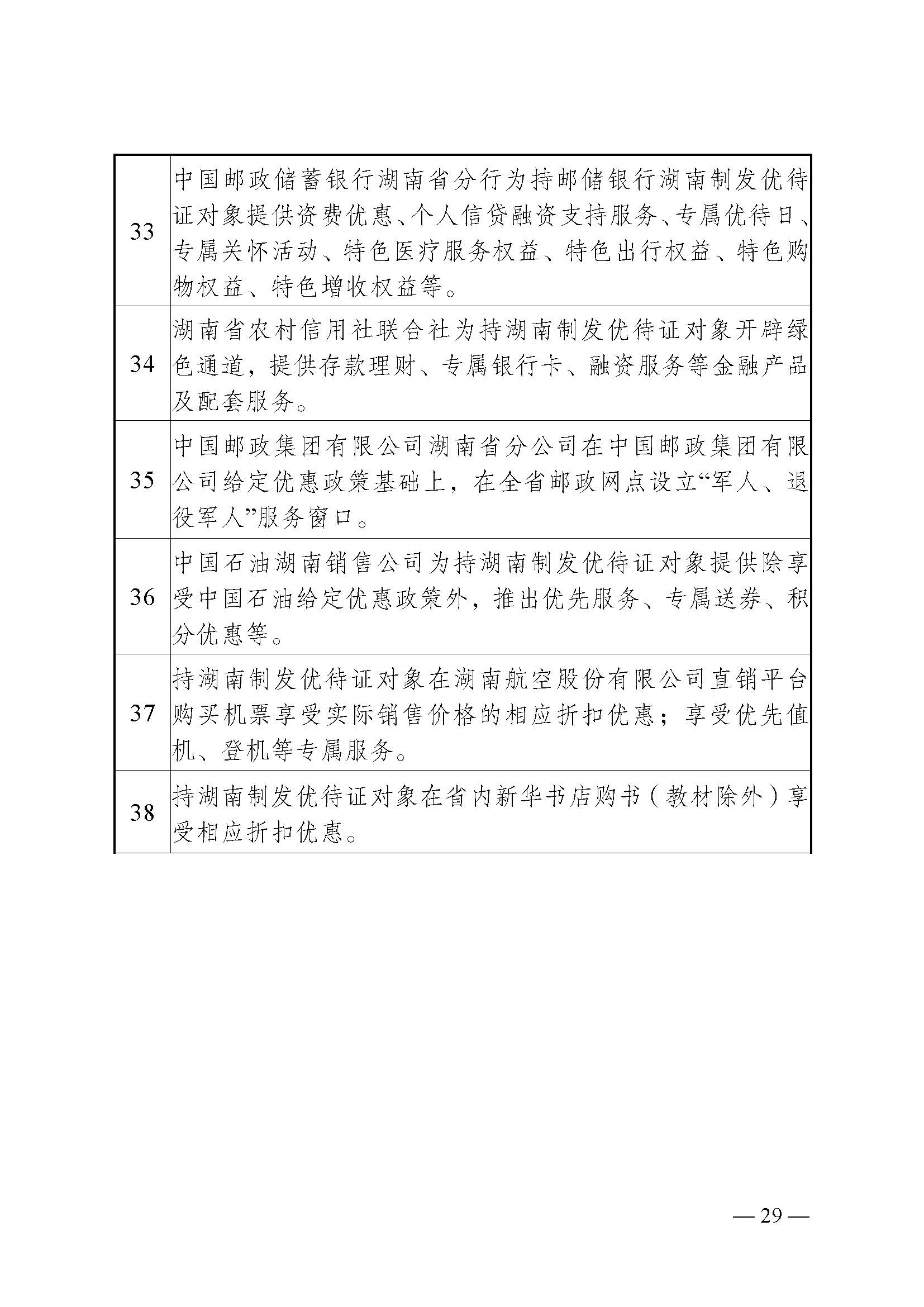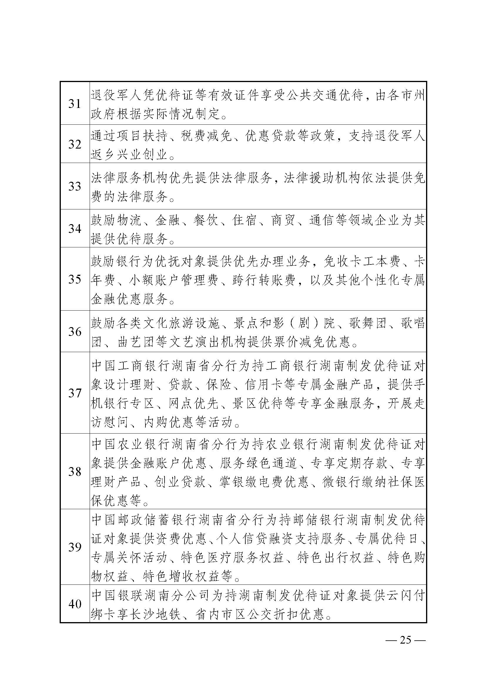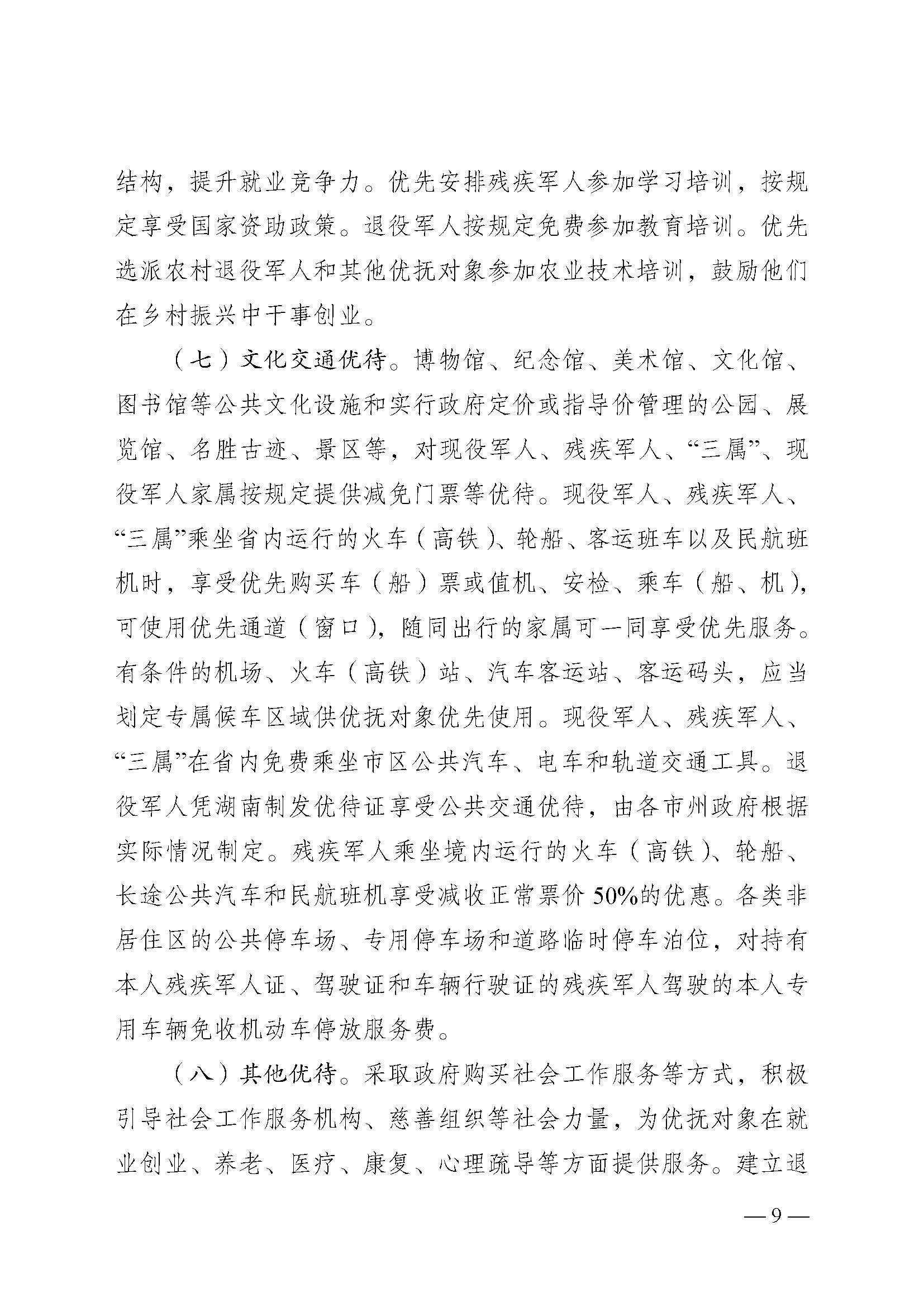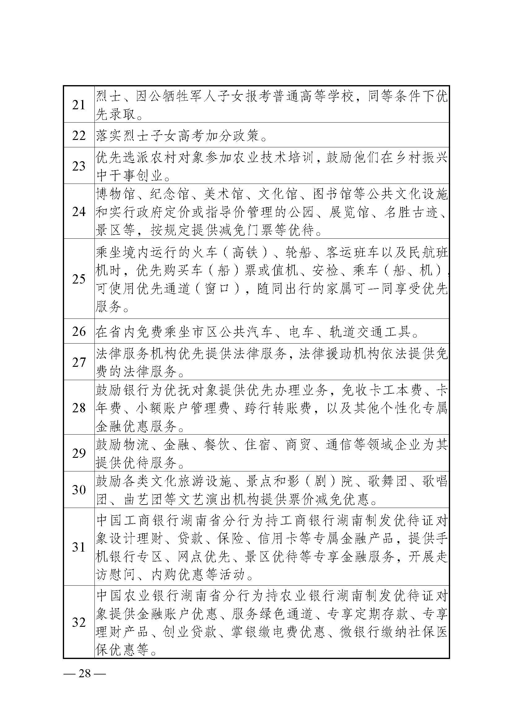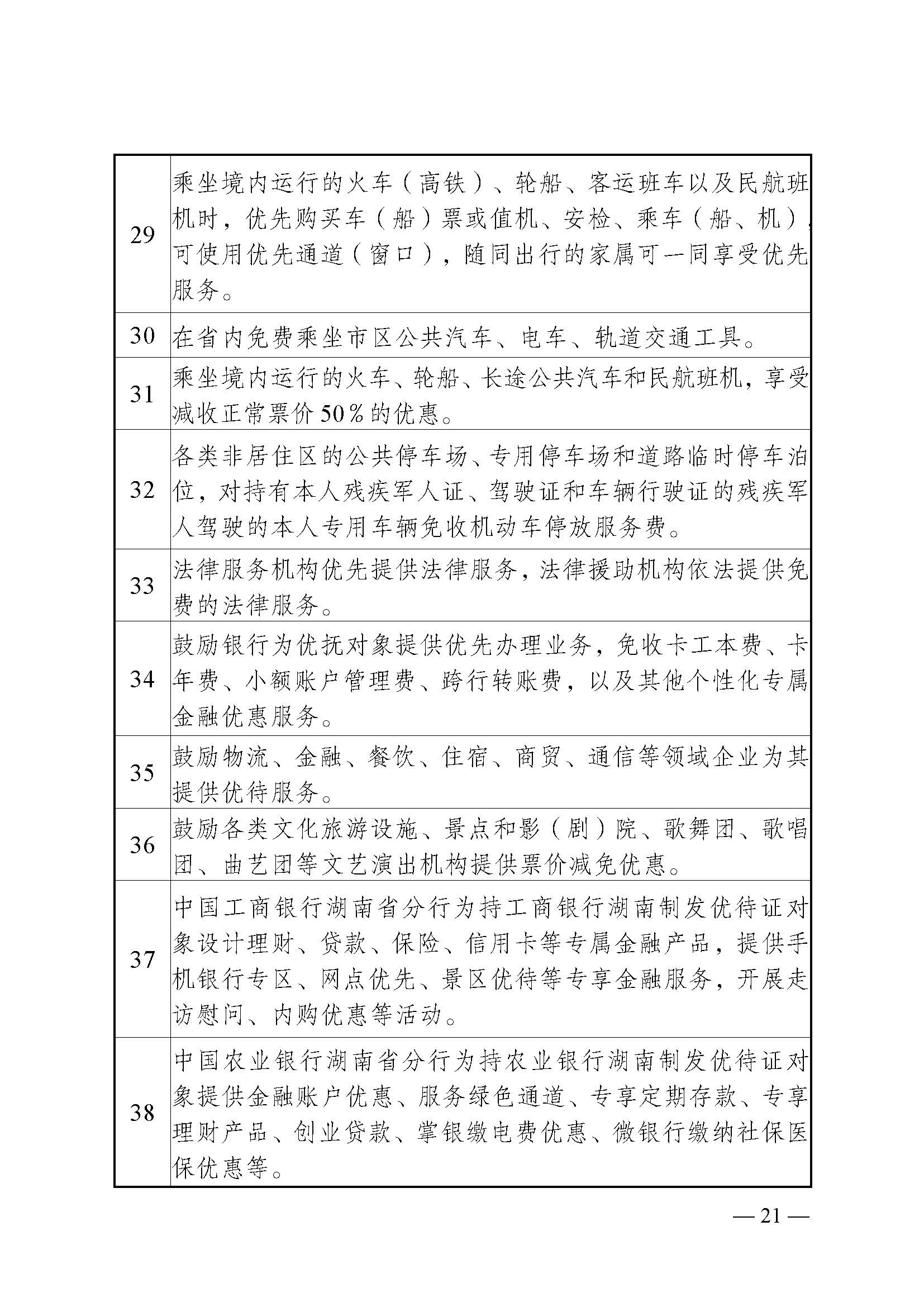 湖南省退役軍人事務廳等24部門關于印發《湖南省加強軍人軍屬、退役軍人和其他優撫對象優待工作的實施意見》的通知