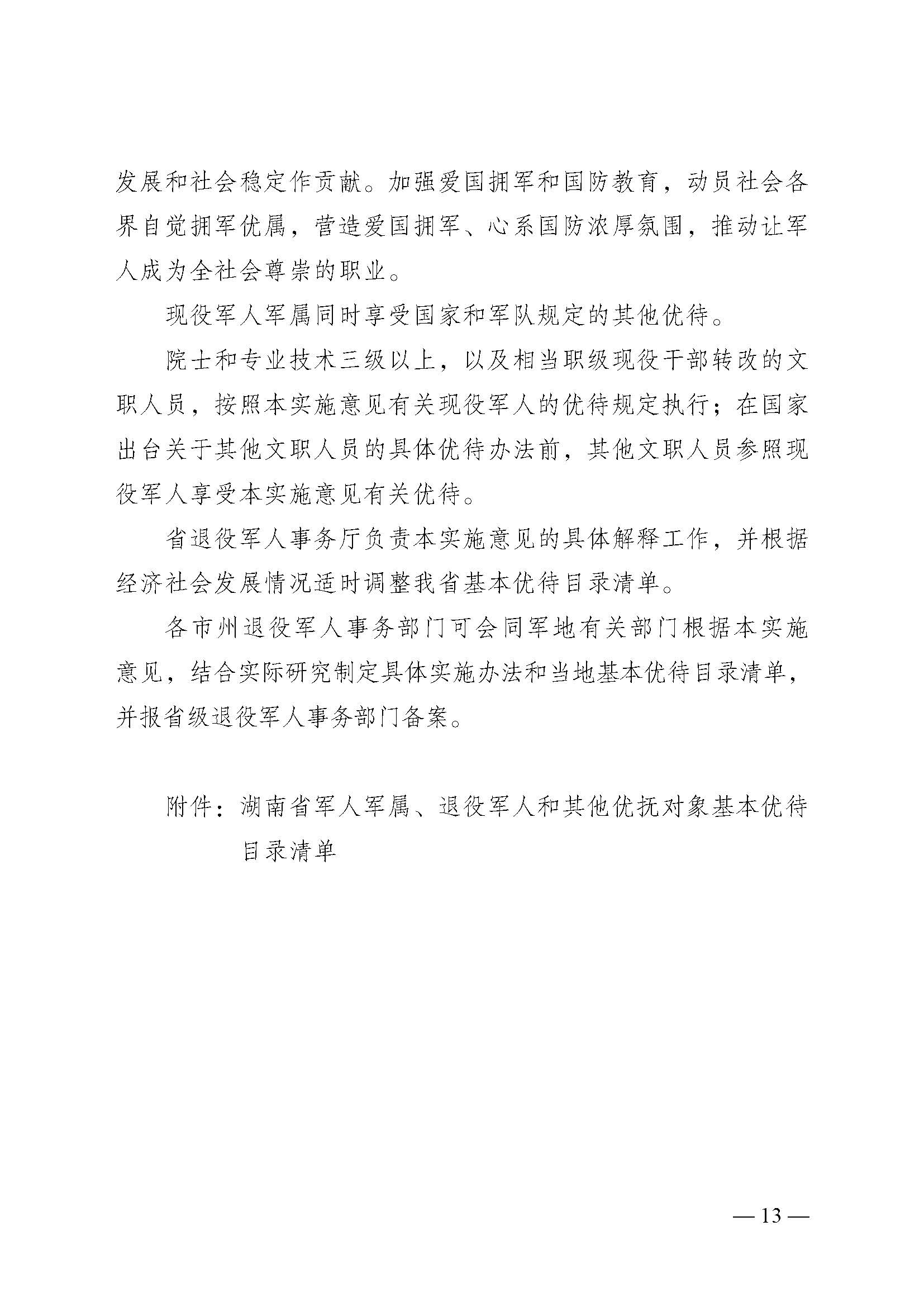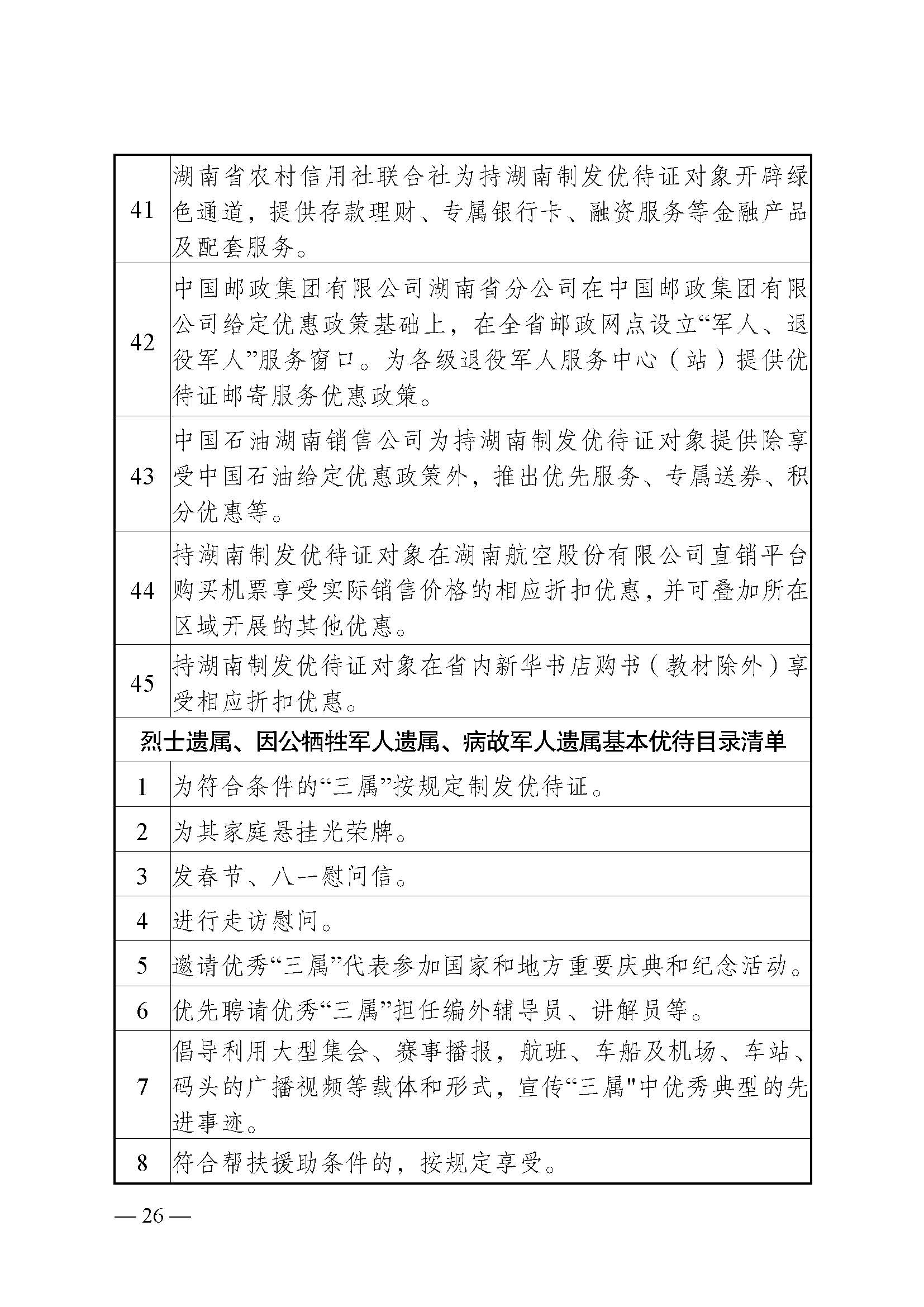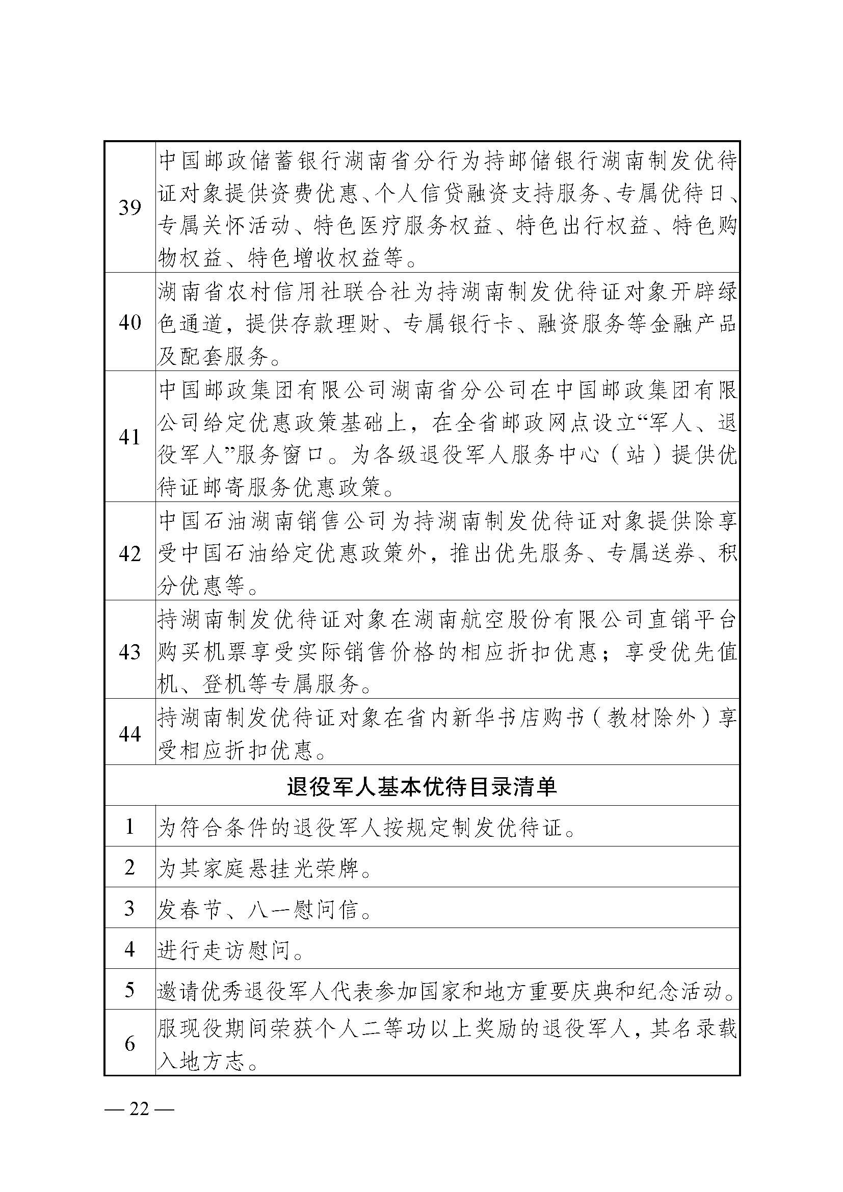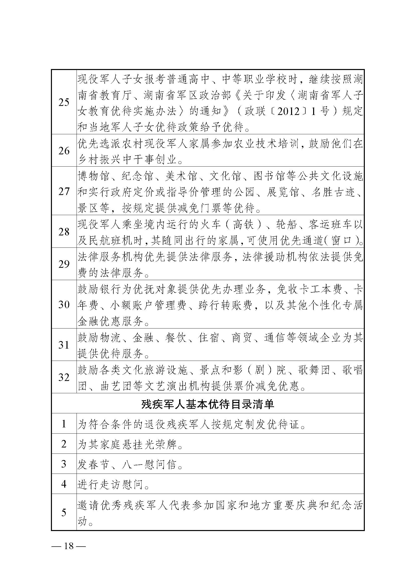 湖南省退役軍人事務廳等24部門關于印發《湖南省加強軍人軍屬、退役軍人和其他優撫對象優待工作的實施意見》的通知