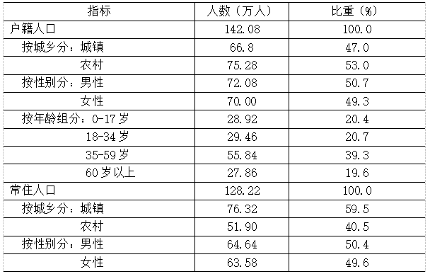 人口:年末全市總戶數45.51萬戶,戶籍總人口142.08萬人,比上年末減少1704人,人口密度為每平方公里489人,比上年末減少1人。戶籍人口中,人口性別比為103:100,人口出生率14.12‰,死亡率18.34‰,自然增長率為-4.22‰。年末常住總人口128.22萬人,比上年增加1.66萬人,增長1.3%。常住人口中,城鎮人口76.32萬人,城鎮化率59.5%,比上年提高3.5個百分點。