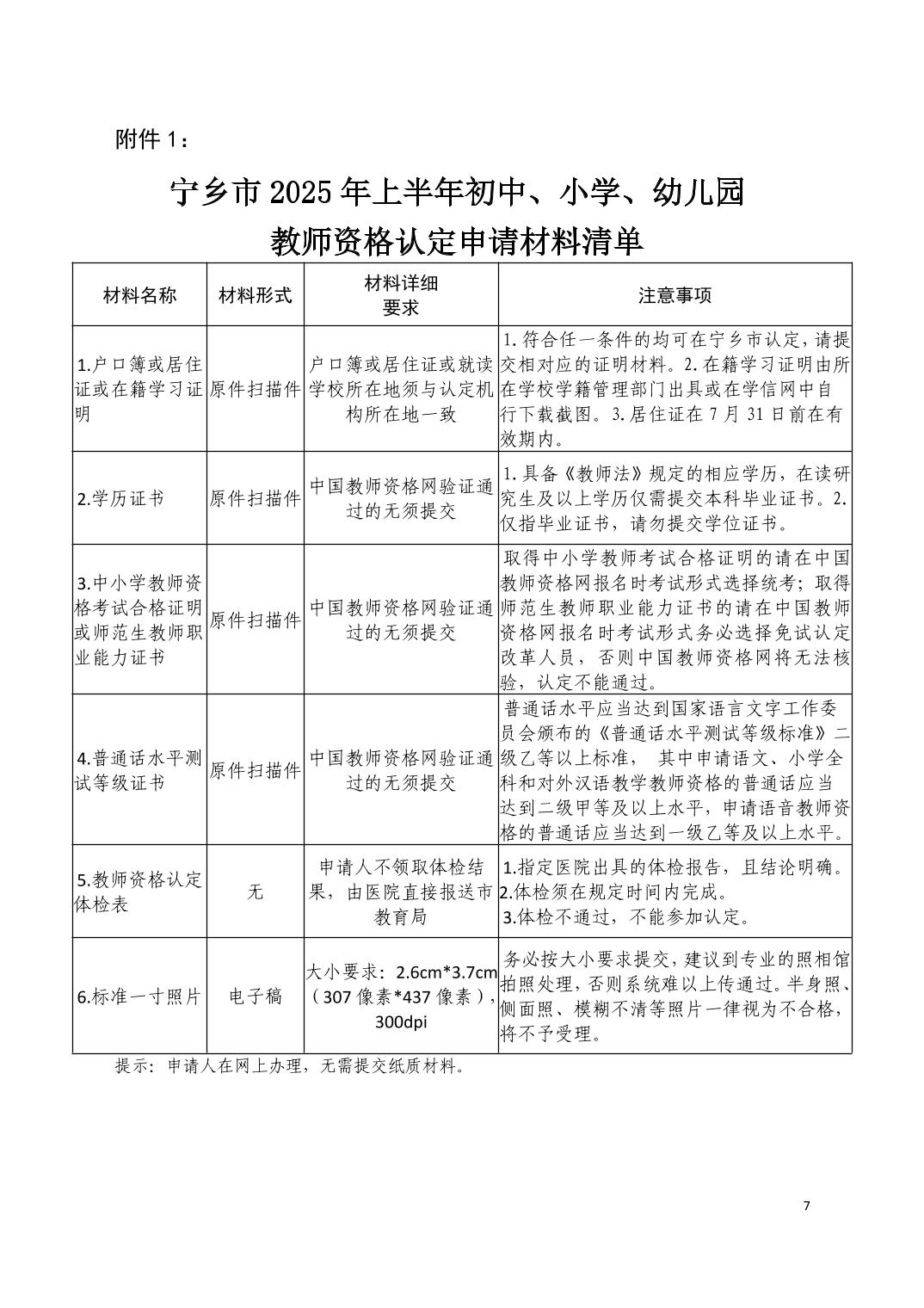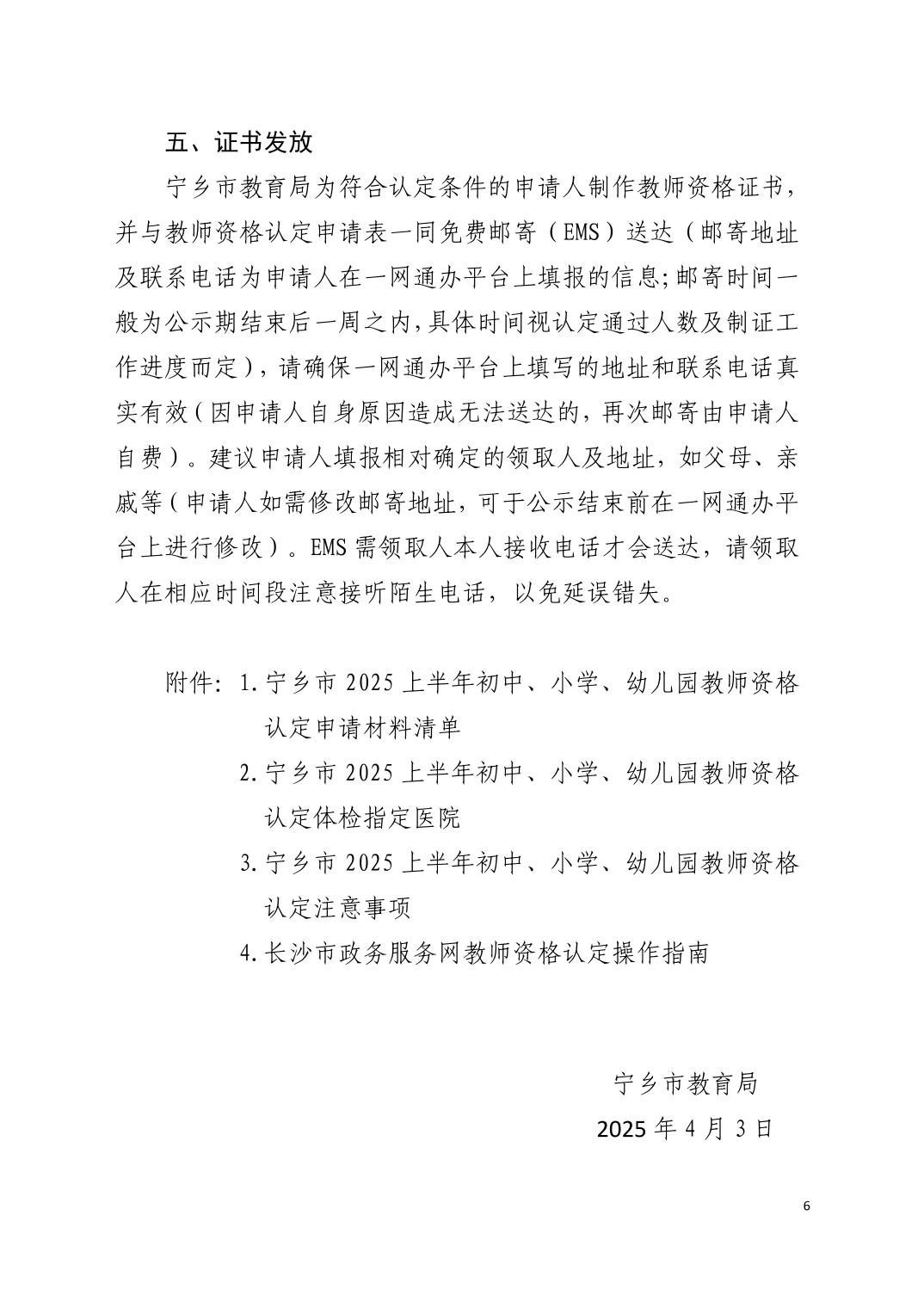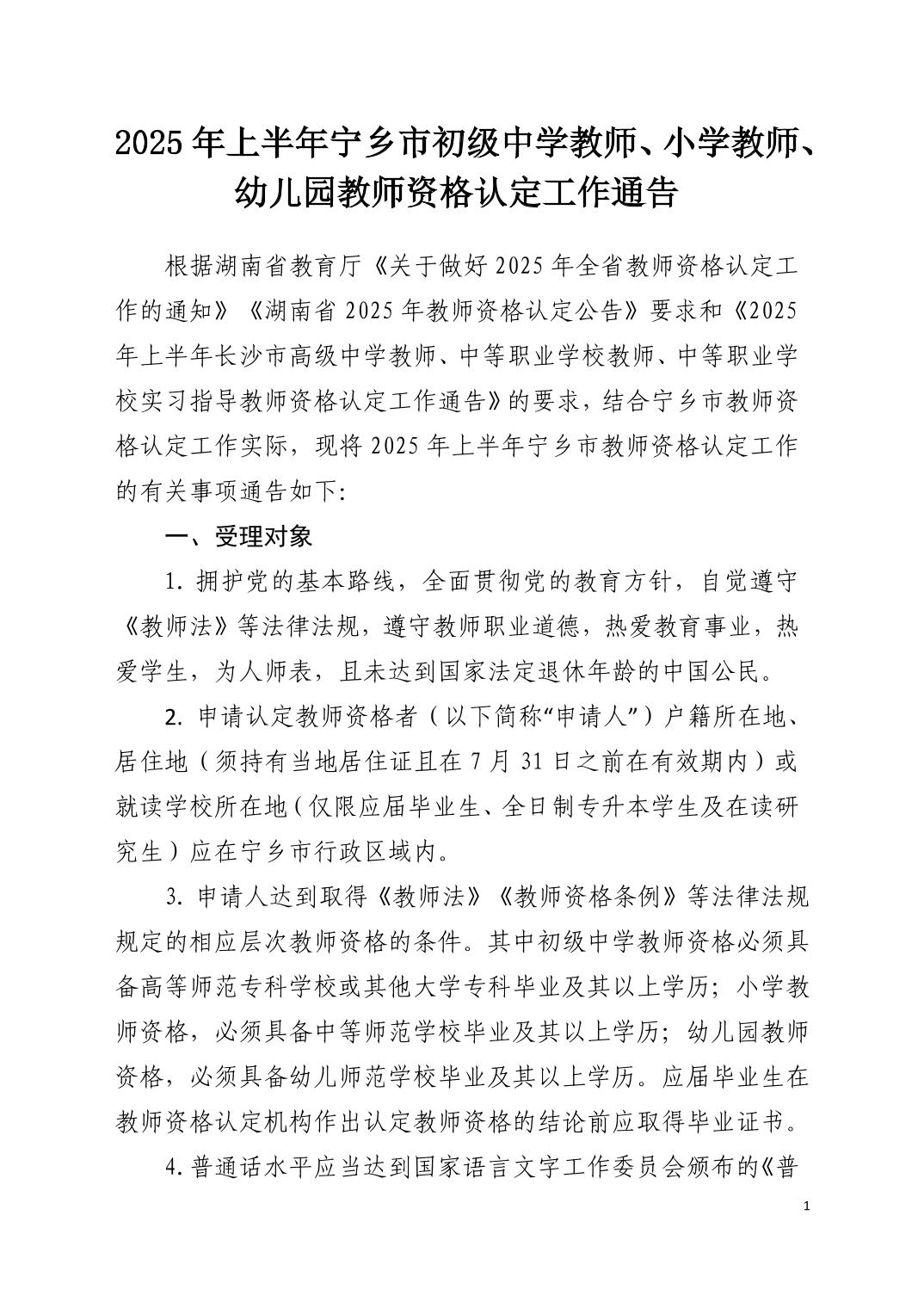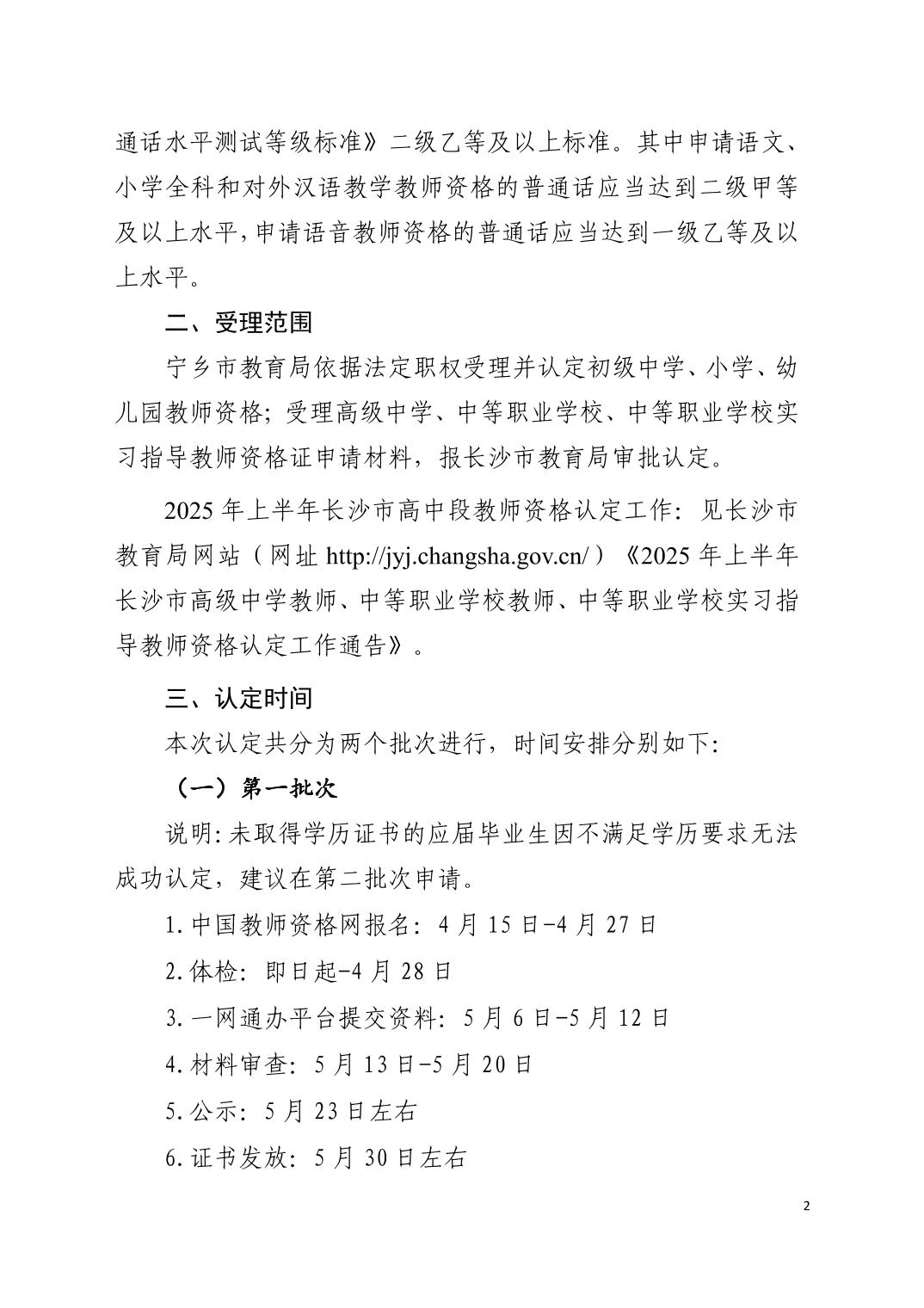 2025年上半年寧鄉市初級中學教師、小學教師、幼兒園教師資格認定工作通告